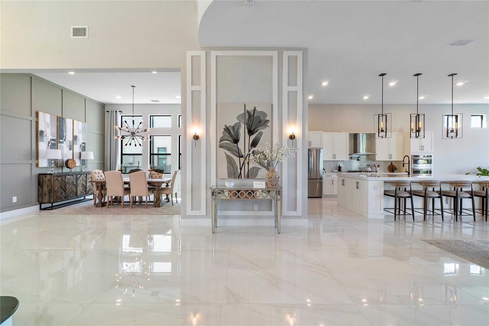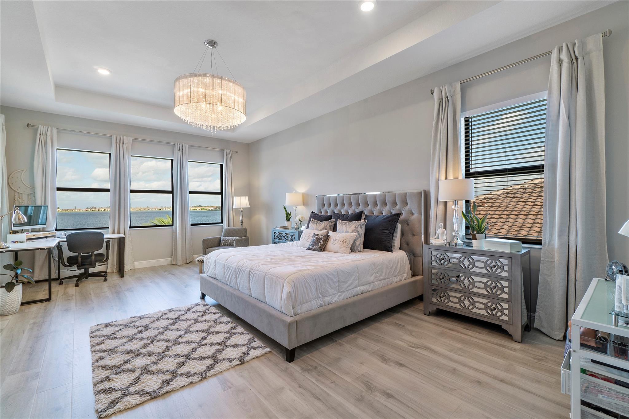 Gorgeous Luxury Waterfront Home with one of the longest lakeview in South Florida! 5 bedrooms, 6 bathrooms on Premium lot with 3 car Garage, and an oversized pool and SPA. Imported 48*48-inch large tiles throughout the downstairs, real wooden stairs and luxury laminate throughout the second floor. Stunning upgraded kitchen with gas stove, pot filler, and smart stainless-steel appliances. Big impact windows throughout the home with custom window treatments. Large living room with wainscoting and beautiful chandeliers. Large loft area perfect for the family. Second floor balcony and huge master bedroom with sitting area overlooking large lake. Smart features include outdoor recessed lights, smart thermostats, smart lighting, and smart security. A - rated Schools & Resort -Style Amenities!