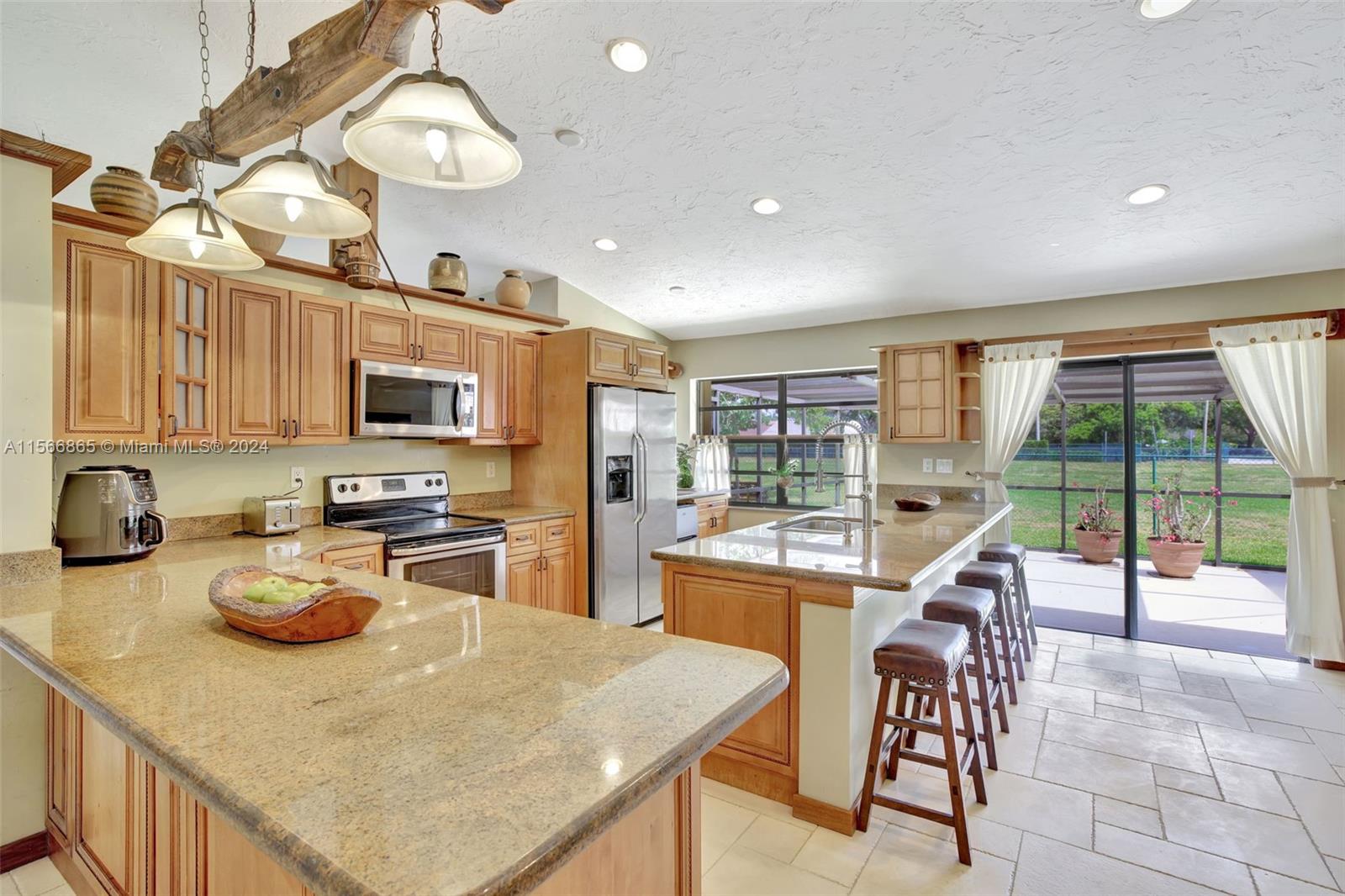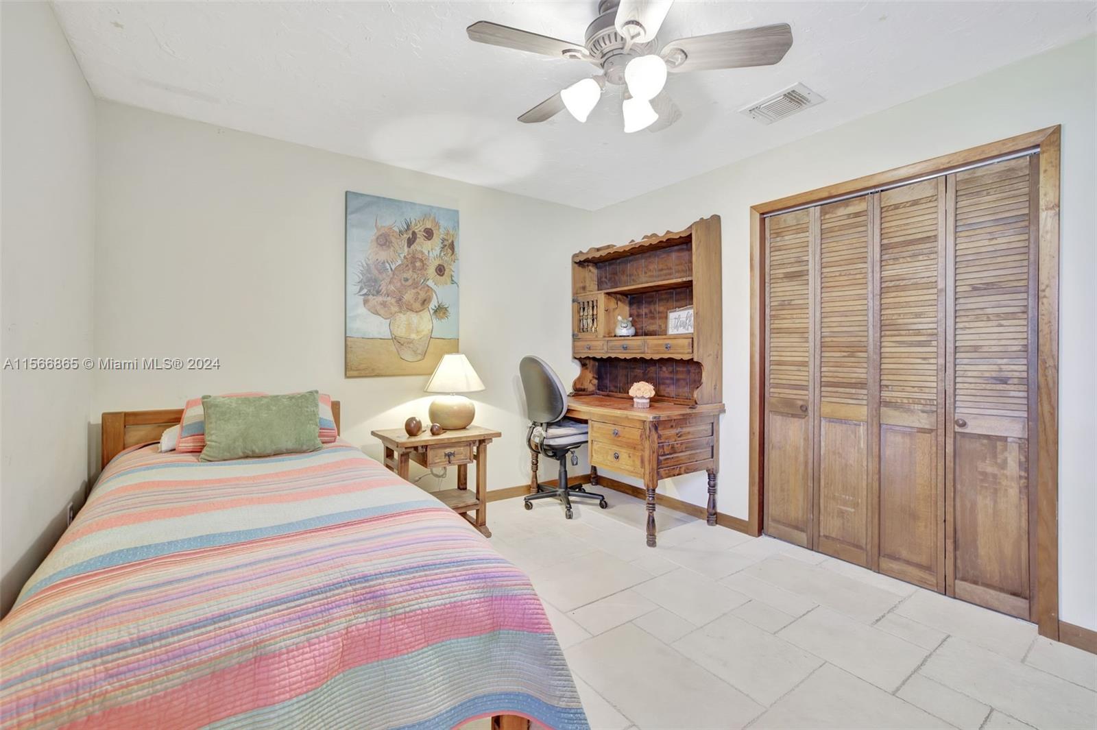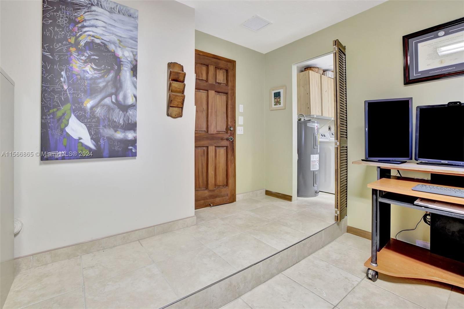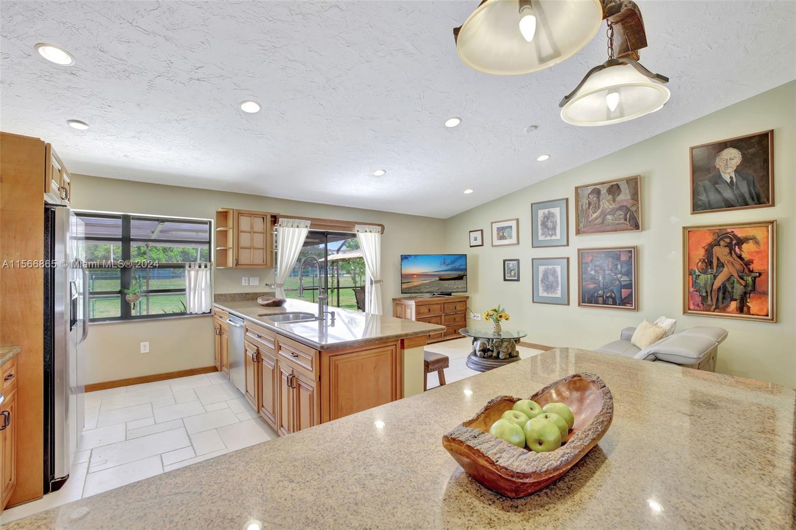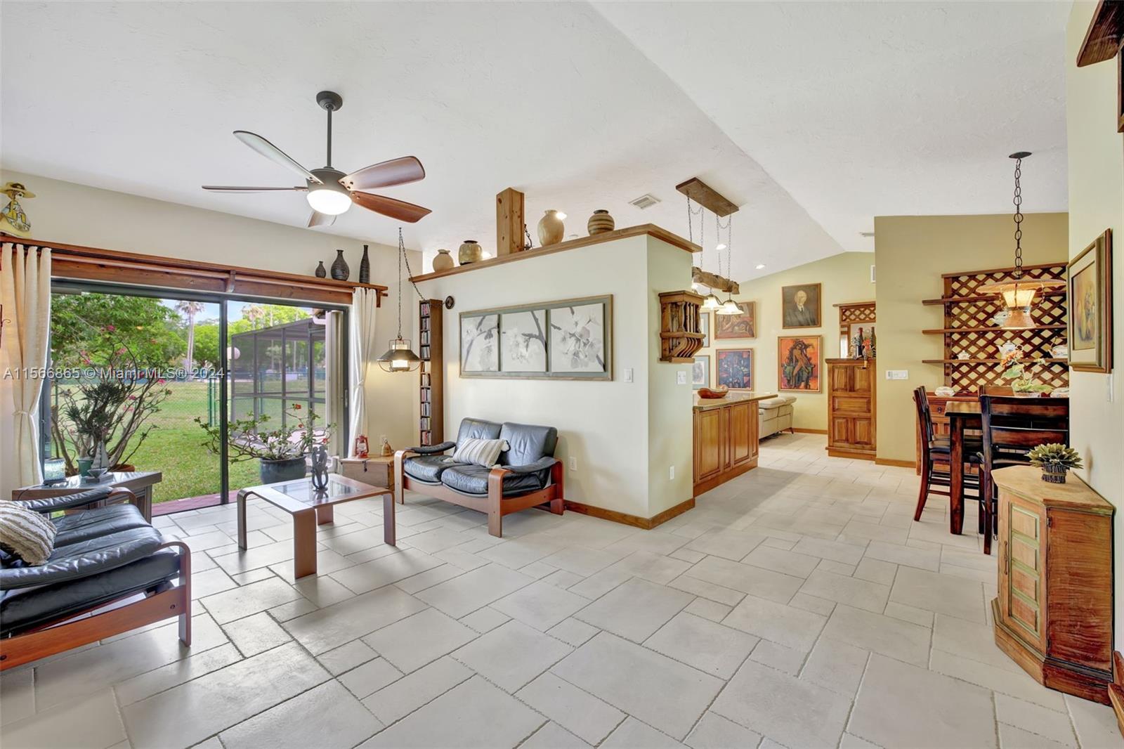 The complete package in the heart of Davie's sought-after Shenandoah Community! This comfortable 3-bedroom, 2-bath home + bonus room (garage converted) has tons of upgrades & elevated finishes. Custom wood built-ins, window & door casings, elegant real wood kitchen cabinets & granite counters & stainless appliances. A 2023 roof, full accordion shutters & gorgeous tile floors throughout & updated bathrooms. Outside, the spacious green yard offers a perfect setting for entertaining & plenty of room to add a pool, plus no neighbors behind. Ready for you to move in & enjoy the hundreds of miles of trails in Davie, Shenandoah Park Tennis, Basketball, Baseball & Football fields, picnic shelters, grill & 2 Playgrounds, plus A Rated Flamingo Elem, Indian Ridge Middle & A Rated Western High!