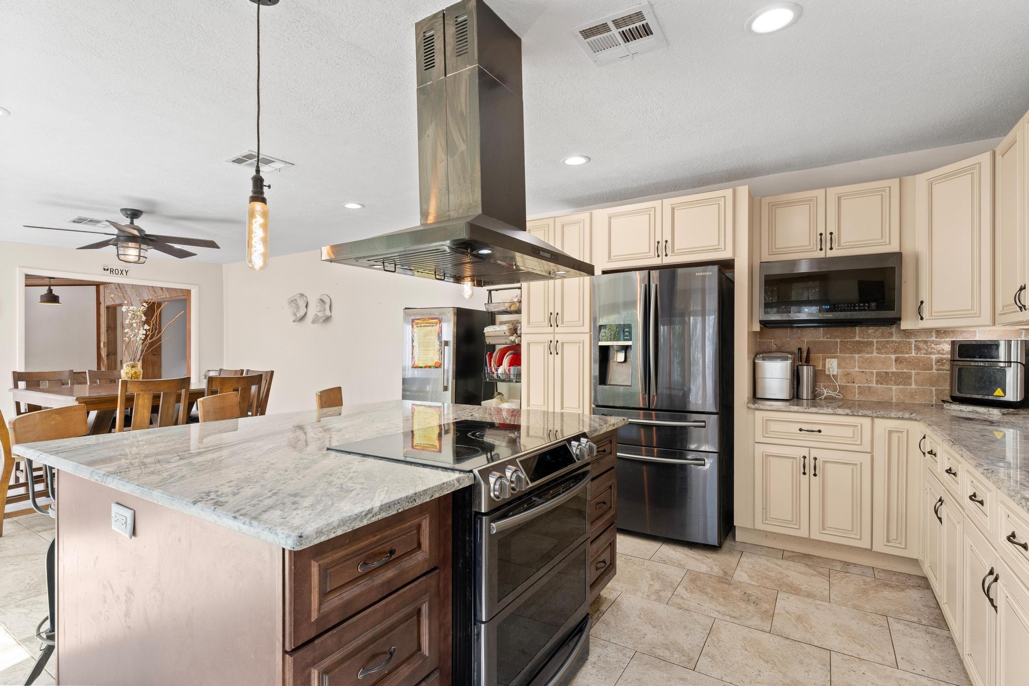 Discover this inviting 3-bedroom, 2-bathroom home filled with natural light streaming through numerous windows, enhancing the open living space. This home features an open kitchen concept with plenty of cabinet space, granite countertops, stainless-steel appliances, and a beautiful kitchen island. The ample sized primary bedroom offers a walk-in closet and a luxurious ensuite bathroom featuring a walk-in shower with a stylish Roman top. Unwind in the welcoming sunroom and indulge in outdoor gatherings on the fenced patio. Plus, take advantage of the detached efficiency for added living flexibility. Don't miss out on this opportunity!