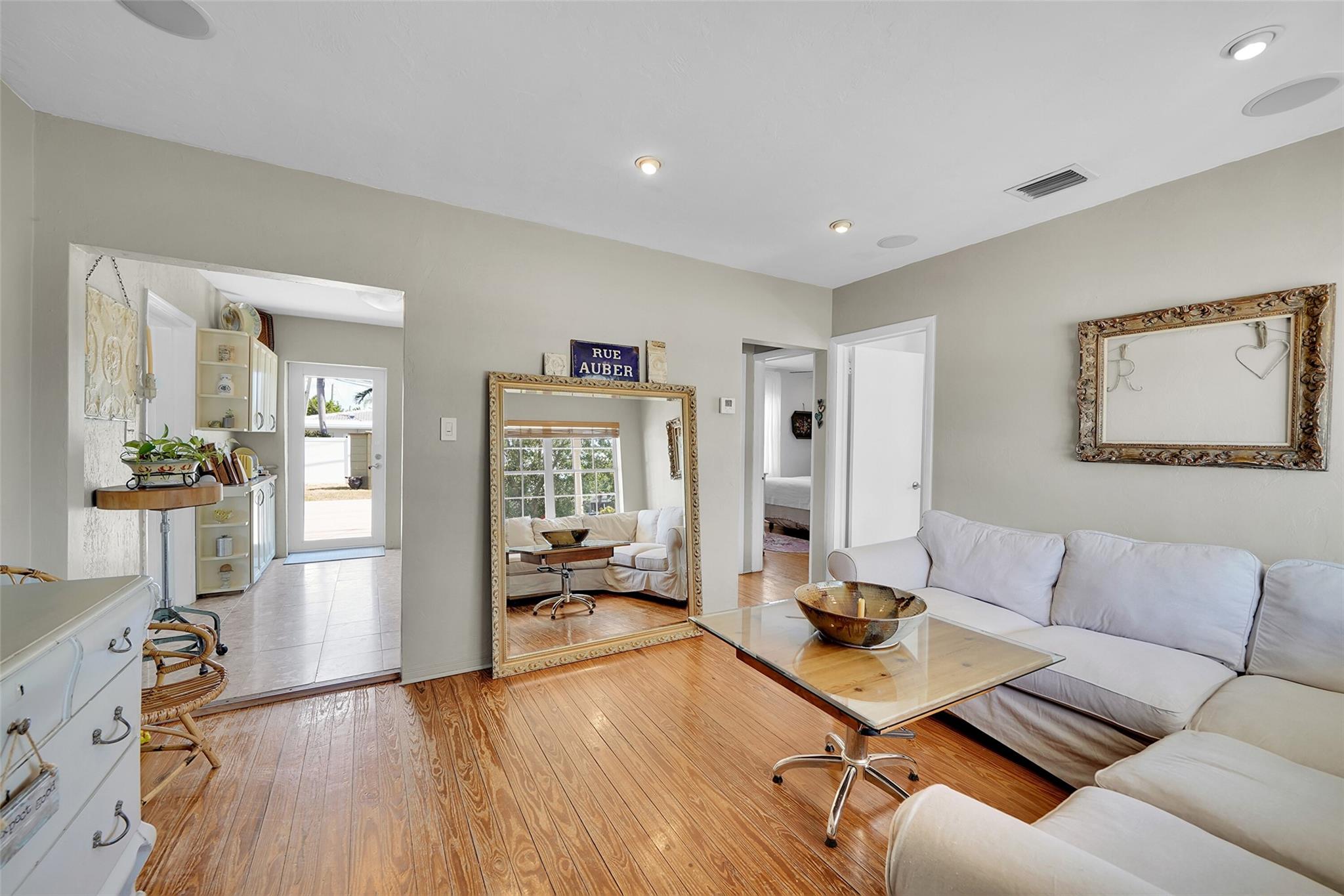 NEW ROOF!!* Nestled in the heart of North Andrews Gardens is this 2bed/1bath charmer with timeless appeal. Original Dade County Pine floors add character to this meticulously maintained home. The kitchen, illuminated by natural light, opens to an expansive deck and large fenced-in yard that has plenty of room for a pool! Enjoy the convenience of natural city gas for the range, hot water heater, and outdoor BBQ. The living room has a surround sound system that will convey at closing. The home is elevated CBS construction (on crawl space foundation) setting it nicely above street level. Welcome to a place where comfort and classic style converge. *New Roof on order to be installed within a month. Warranty will transfer.