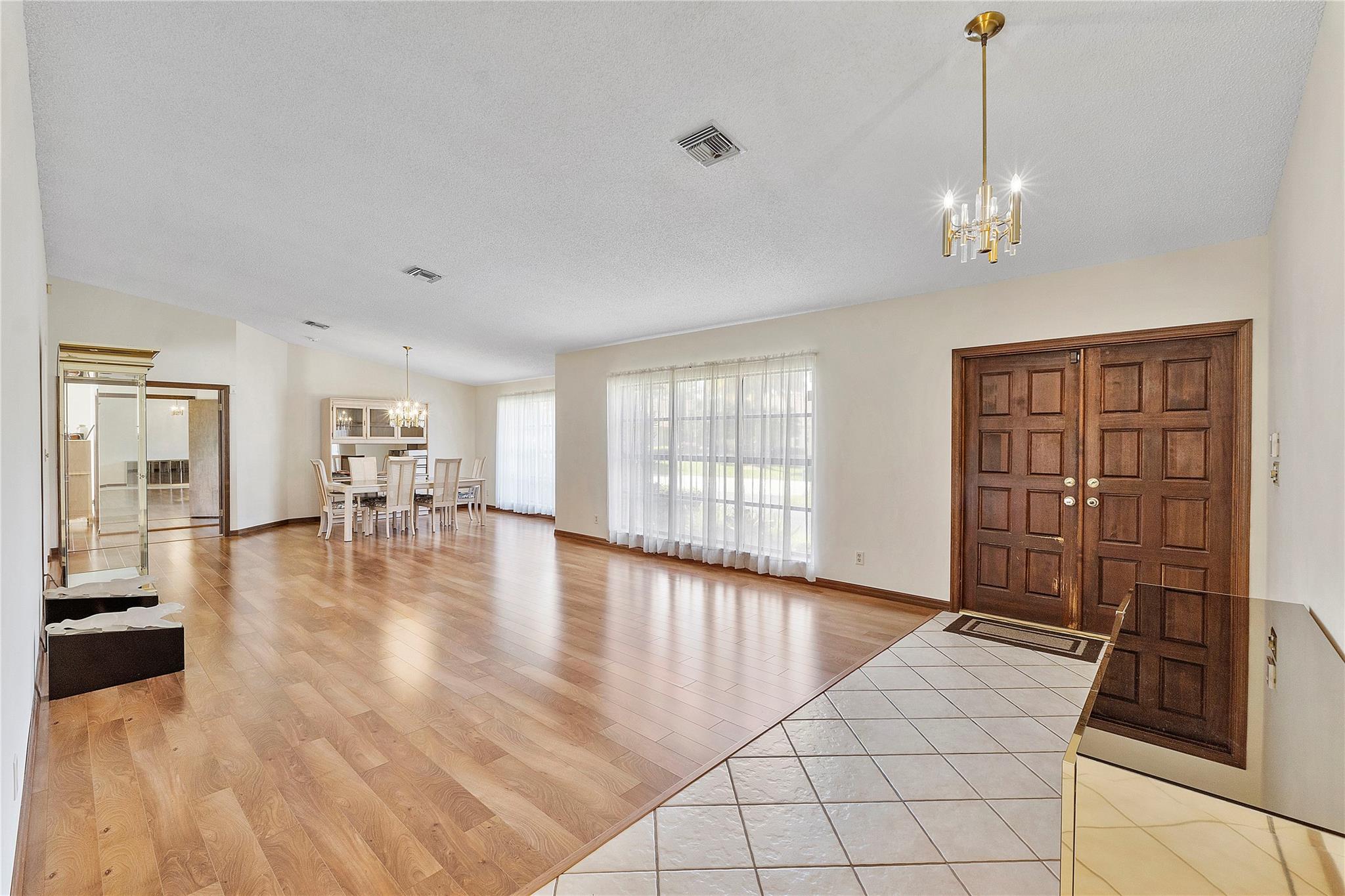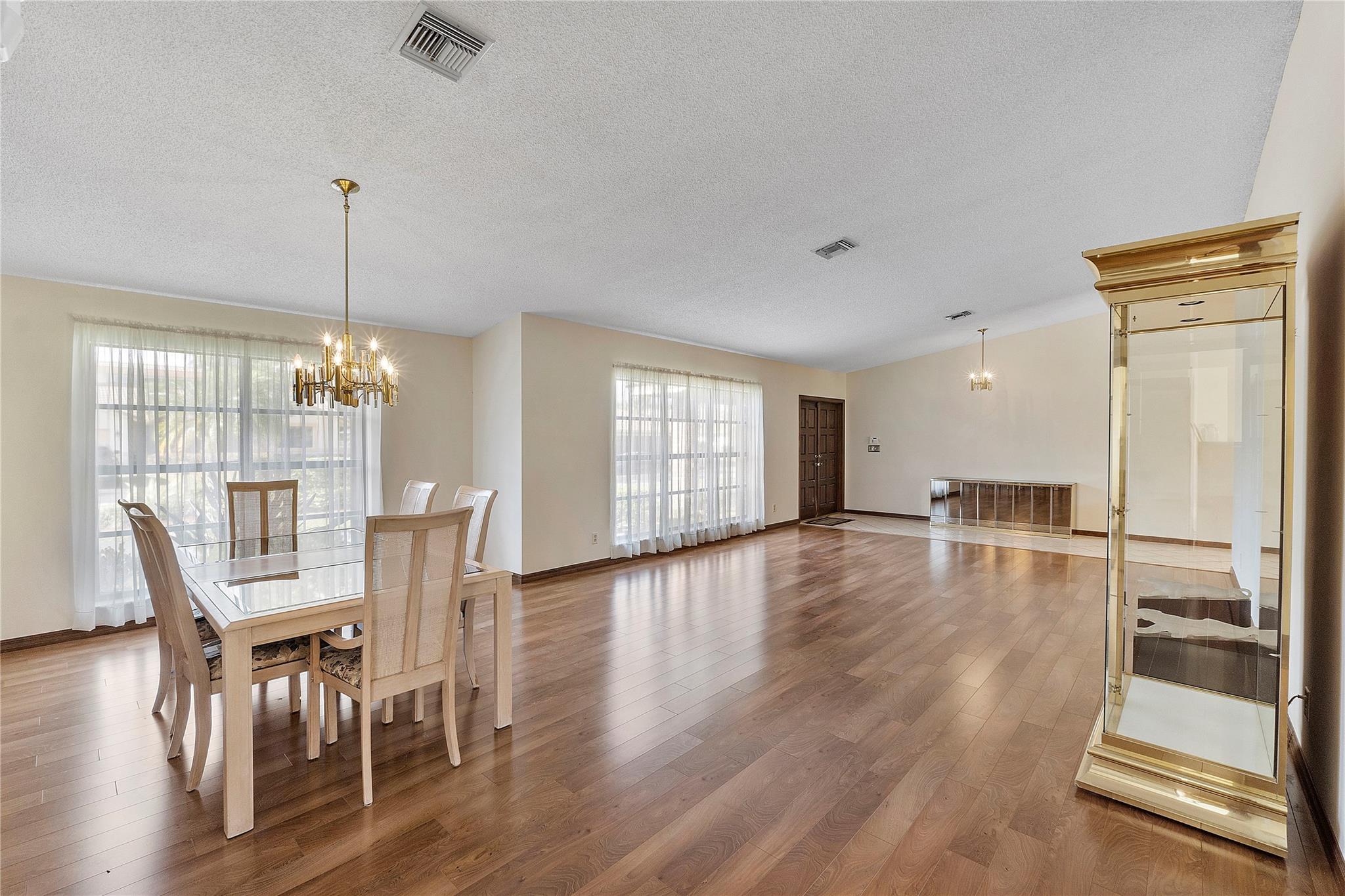Well maintained 4 bedroom 3 bathroom pool home in Pine Ridge on a large waterfront lot. Perfect for large families w/ over 3000 living sq ft. The home features accordian shutters throughout. Great curb appeal w/ lush landscaping. Large open eat in kitchen facing family room. Oversized dining & living room. Big primary bedroom features a huge walk-in closet & slider overlooking pool area. Primary bathroom has step in shower, separate tub & double vanity. Large guest bedrooms. One guest bedroom can be used as another primary bedroom with direct access to the cabana bathroom with double vanity. Big laundry room with lots of storage & sink. Huge circular driveway with plenty of parking. Terrific floor plan with loads of potential. Great location, close to highway, restaurants and shopping!
