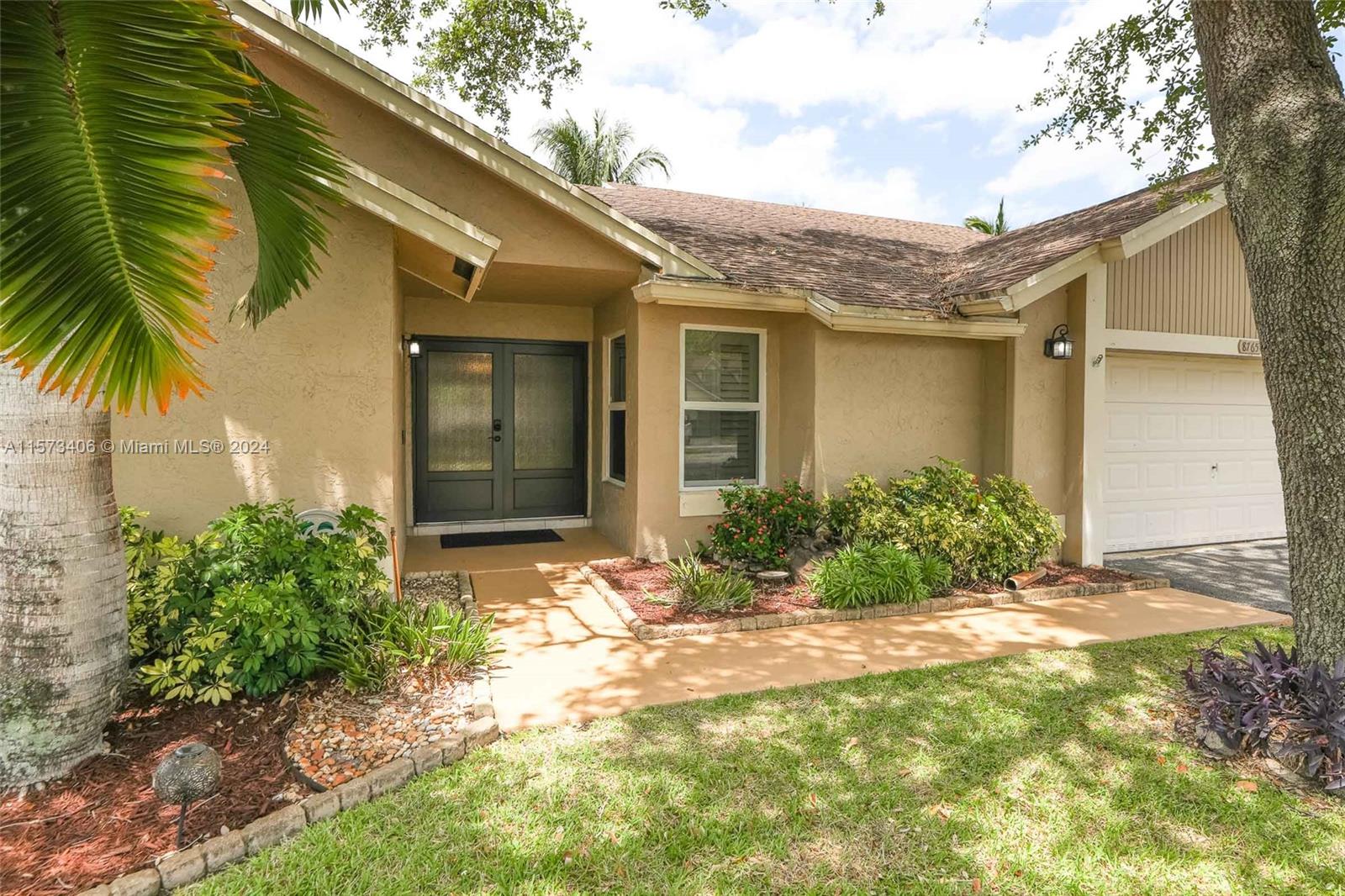 Welcome home to this charming 3 bedroom, 2 bathroom residence in Cooper City! Boasting an upgraded, white kitchen featuring granite countertops, stainless steel appliances and coffee bar. Other features include a modern primary bathroom, sleek blinds, bamboo floors and plantation shutters as well as built-ins. You'll find peace of mind with the *hurricane impact windows and doors installed in 2020*, along with a 2020 air conditioner. The yard is spacious and private with room for a pool and also has a mango tree. The garage was converted into a 4th bedroom and can easily be reversed for those who prefer a full garage. Your kids will love being walking distance to the park, middle school and highschool. Enjoy the Cooper City A rated school district. Bonus...NO HOA!