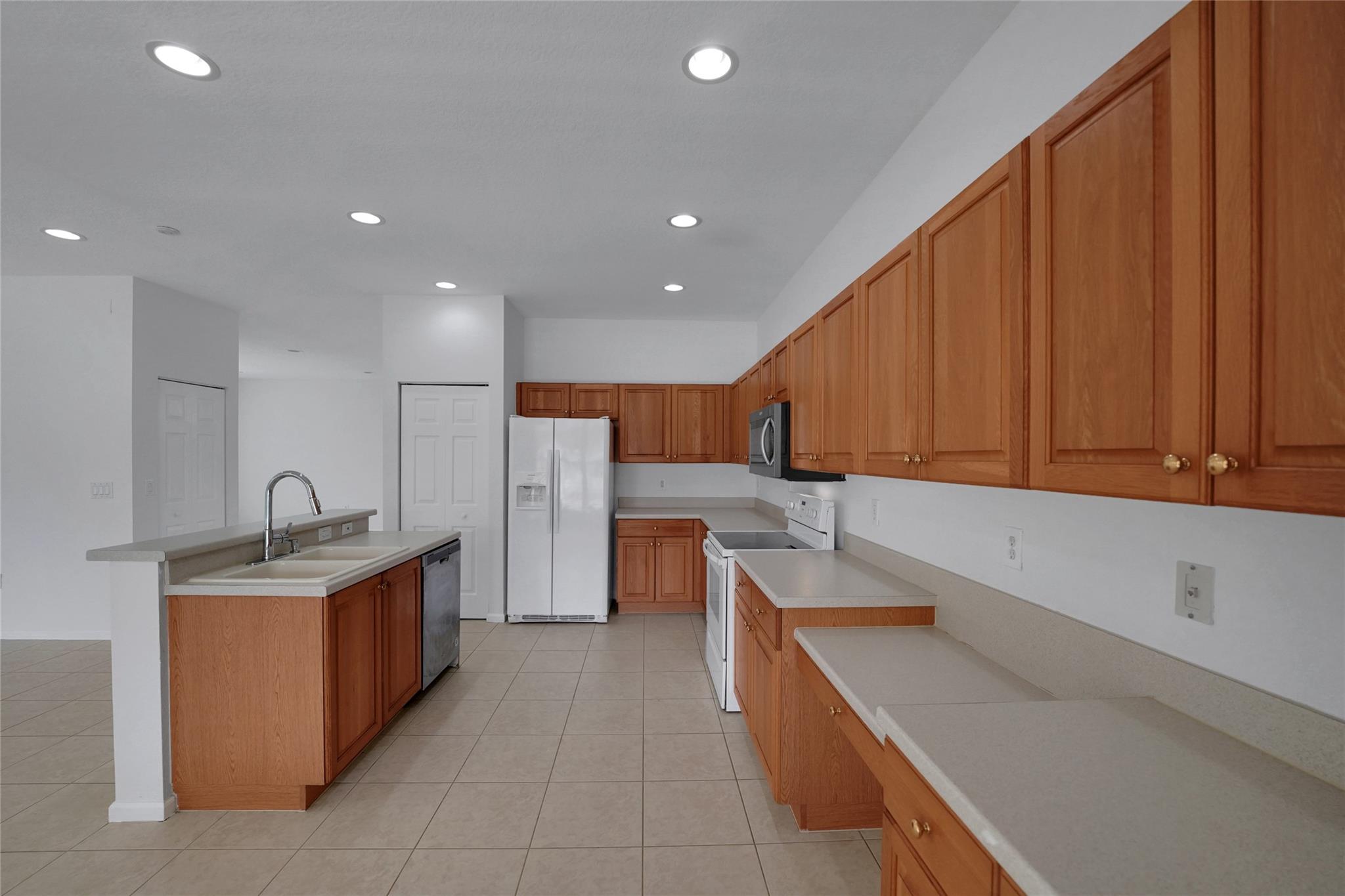 Welcome to your beautiful waterfront 5 Bed / 3 Bath home located inside the private and guard-gated community of Silver Isles. This spectacular two-story home boasts a generous layout with high-volume ceilings, tile floors, eat-in kitchen, a center island, plus a separate breakfast area with water views and a brand new 2023 roof. The home offers a spacious master bedroom, 3 additional bedrooms and a laundry room upstairs. 1 full bedroom and full bathroom at ground level. Best of all, this fully-fenced home has a big backyard with direct lakefront views. Community amenities include a clubhouse, resort-style pool area, playgrounds, picnic area, 24-hour security, and a gym!