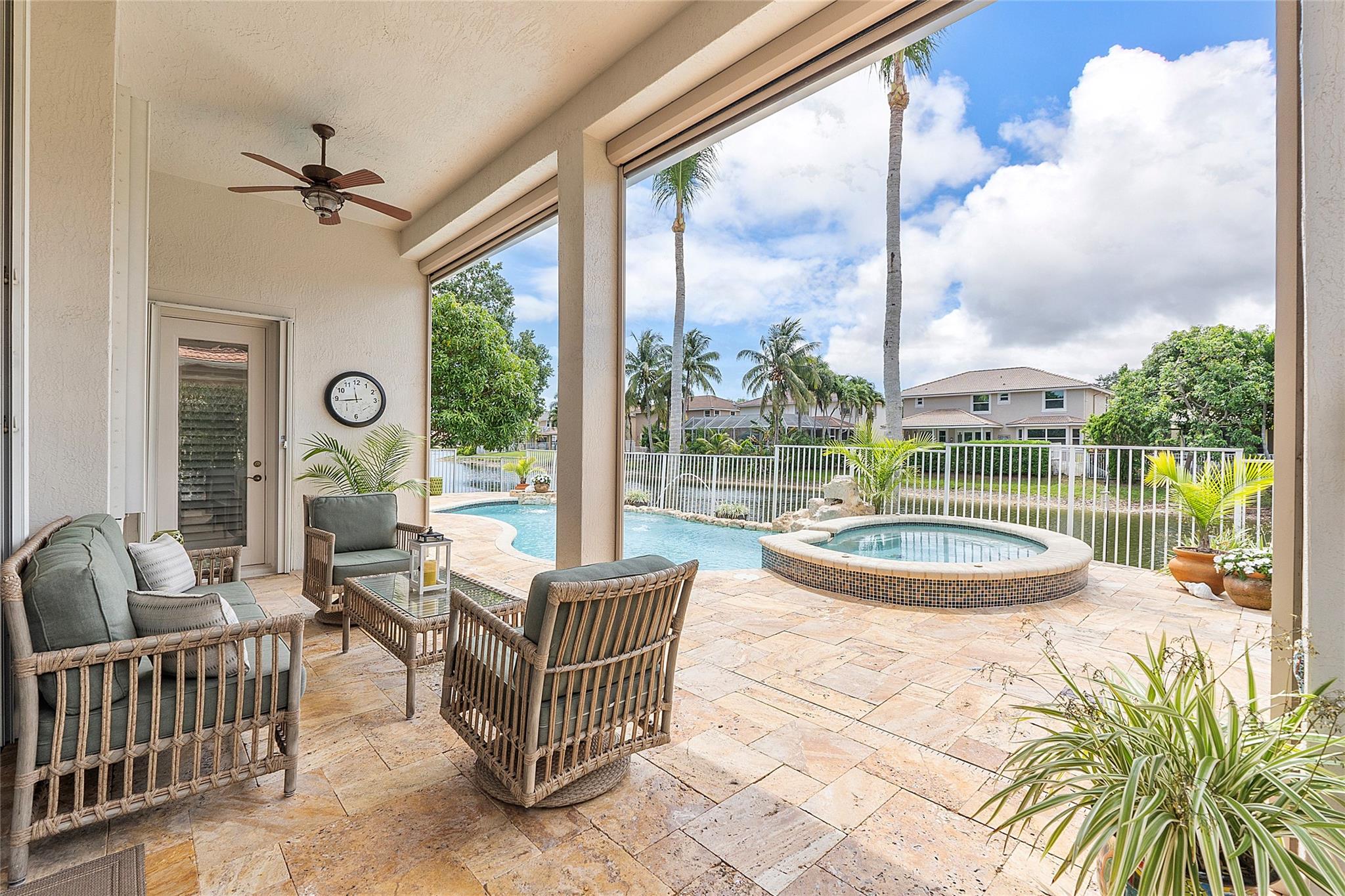 Location !!! Location !!! Location !!! This Home is Absolutely Gorgeous and Has Many Upgrades Including a Triple Split Floor Plan, Upgraded Kitchen With Beautiful Granite Countertops and Newer Appliances, Upgraded Bathrooms, Custom Built-Ins In Each Closet, Tall Ceilings that Give an Open Feel, Newer Water Heater, New Paint Interior and Exterior, Plantation Shutters Throughout and more. Exterior Features Include: Accordion Shutters, Automatic High End Remote Controlled Screens for an Enclosed Patio and Extra Privacy. The Amazing Fountains Out Back Give You the Ambiance You Need While Relaxing and Enjoying the Waterfront Views. Pool Recently Resurfaced, New Pool Heater and Hot Tub to Enjoy. Amenities Include Community Pool, Clubhouse, Fitness Center and Gated with 24 Hour Security Guard.