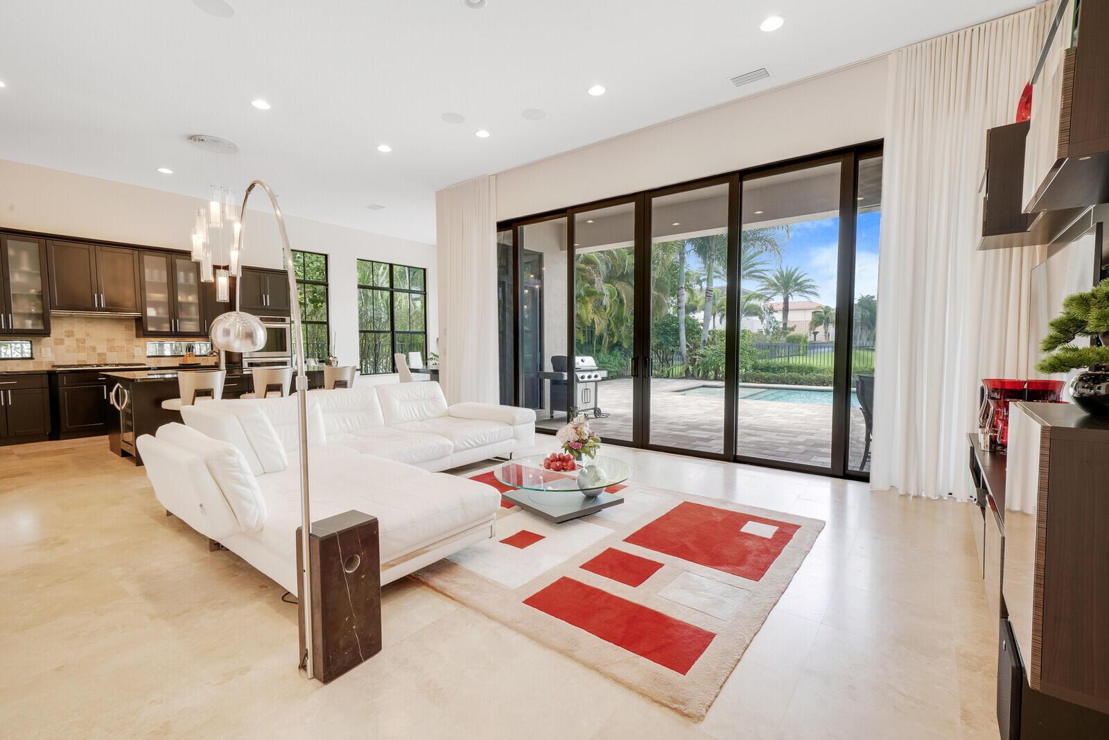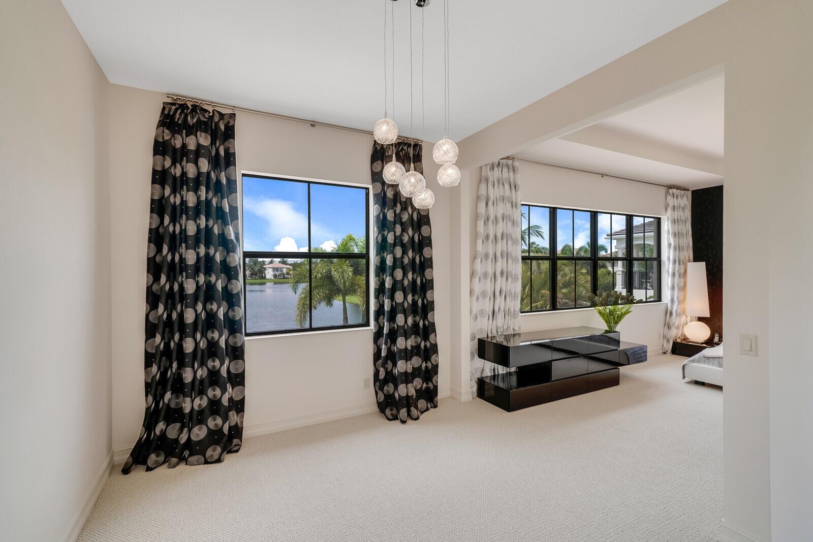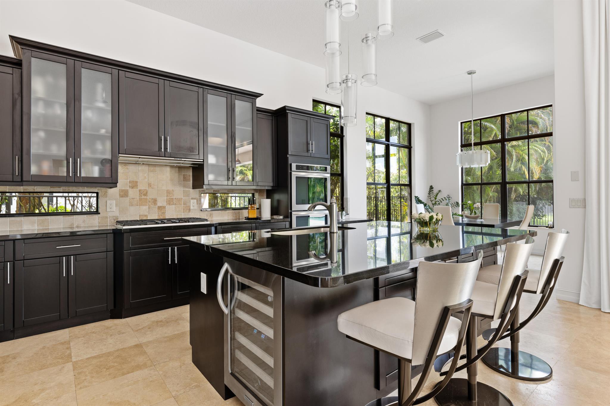 Relax while enjoying the captivating long lake view in this modern and serene estate on a generous .21-acre lot in The Oaks at Boca Raton. With 5 bedrooms and 4.1 bathrooms, this residence has plenty of space for your family and guests. The first floor encompasses a spacious living area, flexible library/den, and a gourmet kitchen with a lovely breakfast nook. Entertain with grace in the elegant formal dining room, while a guest room, full cabana bath, powder room, & a convenient laundry room/mudroom enhance daily living. The kitchen has sleek solid black granite countertops, a sizable island & high end stainless steel appliances including a double oven, natural gas stove, microwave, refrigerator/freezer, dishwasher & wine refrigerator. Enjoy meals in the picturesque breakfast area.
