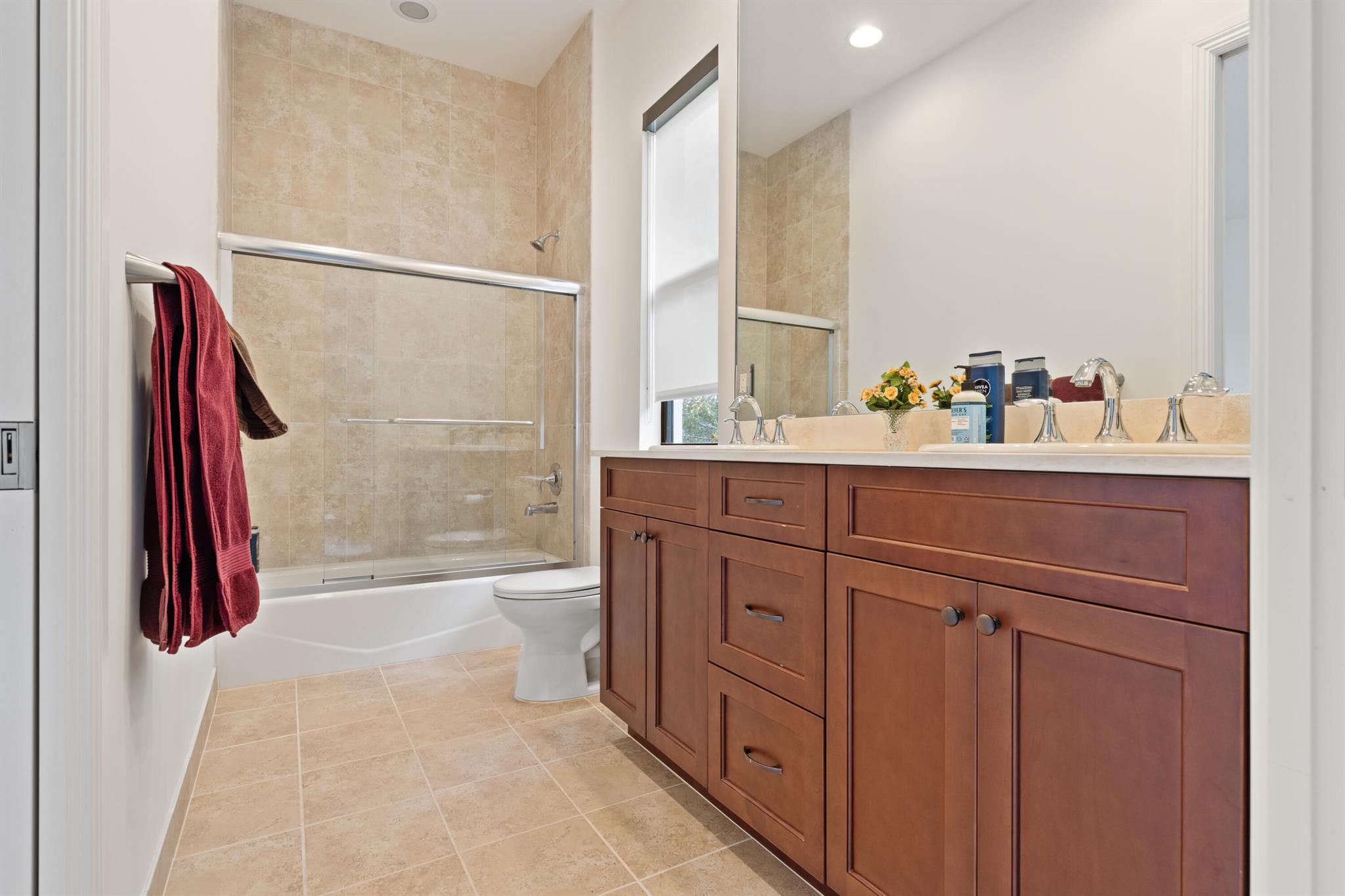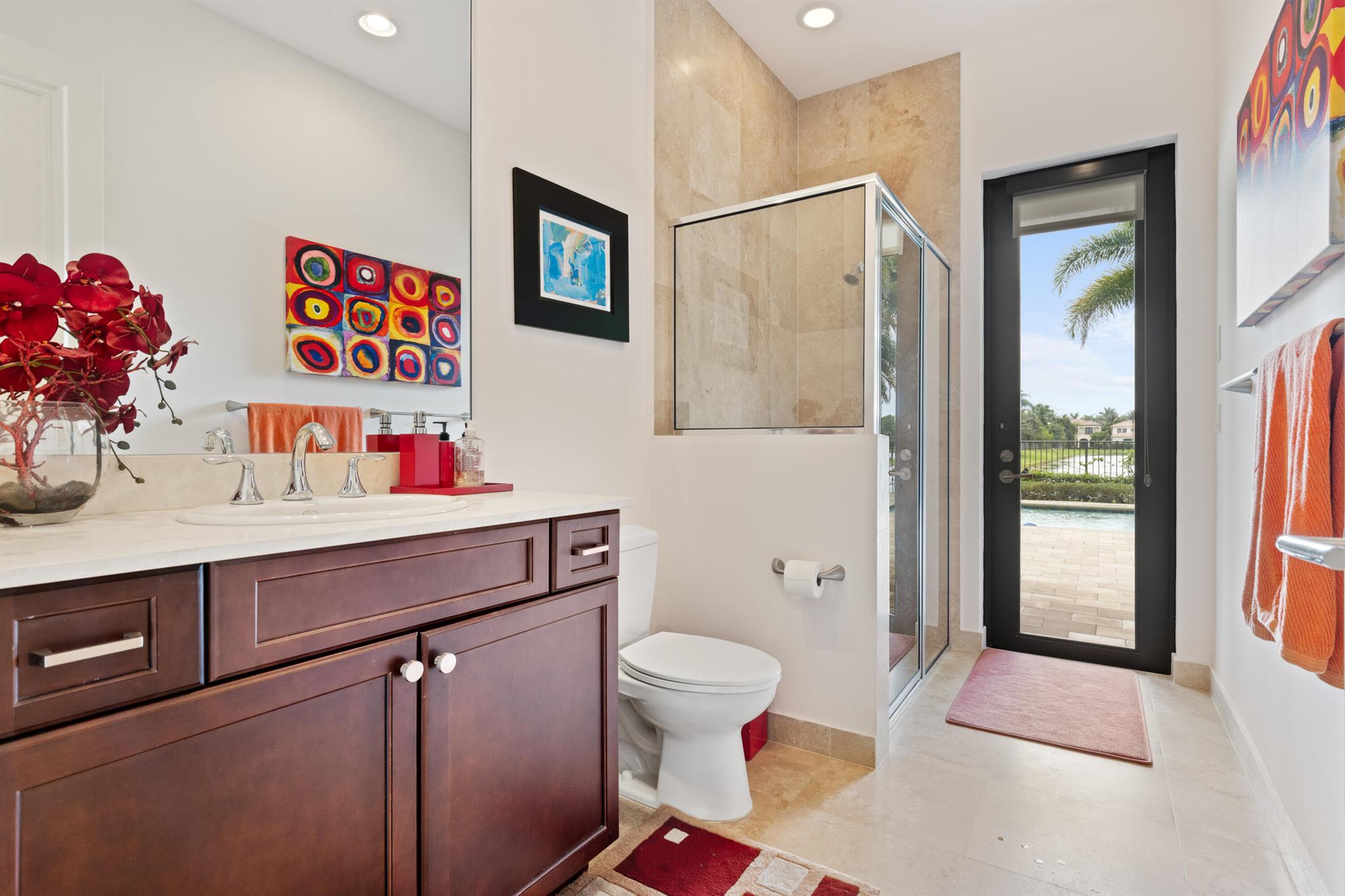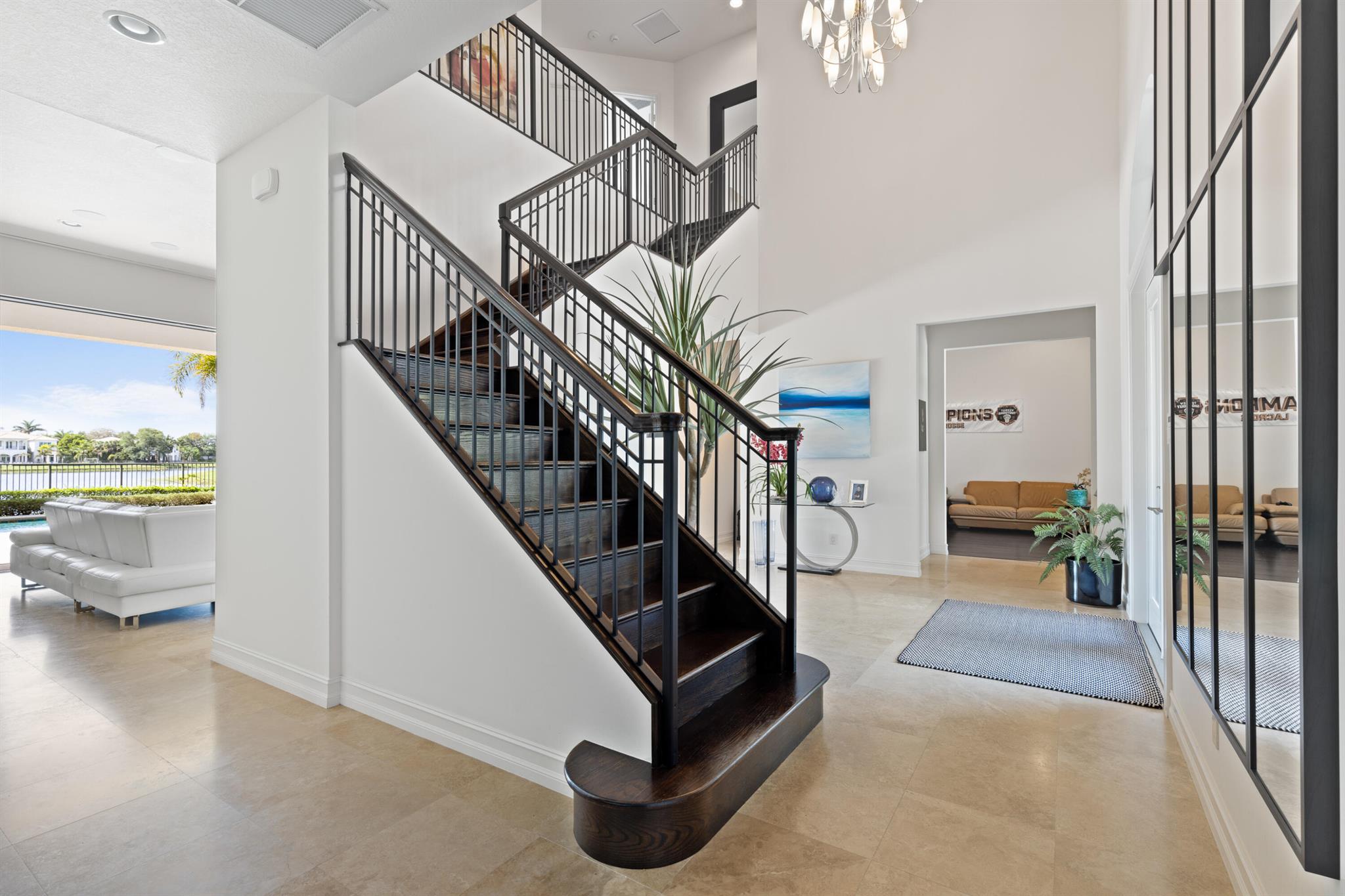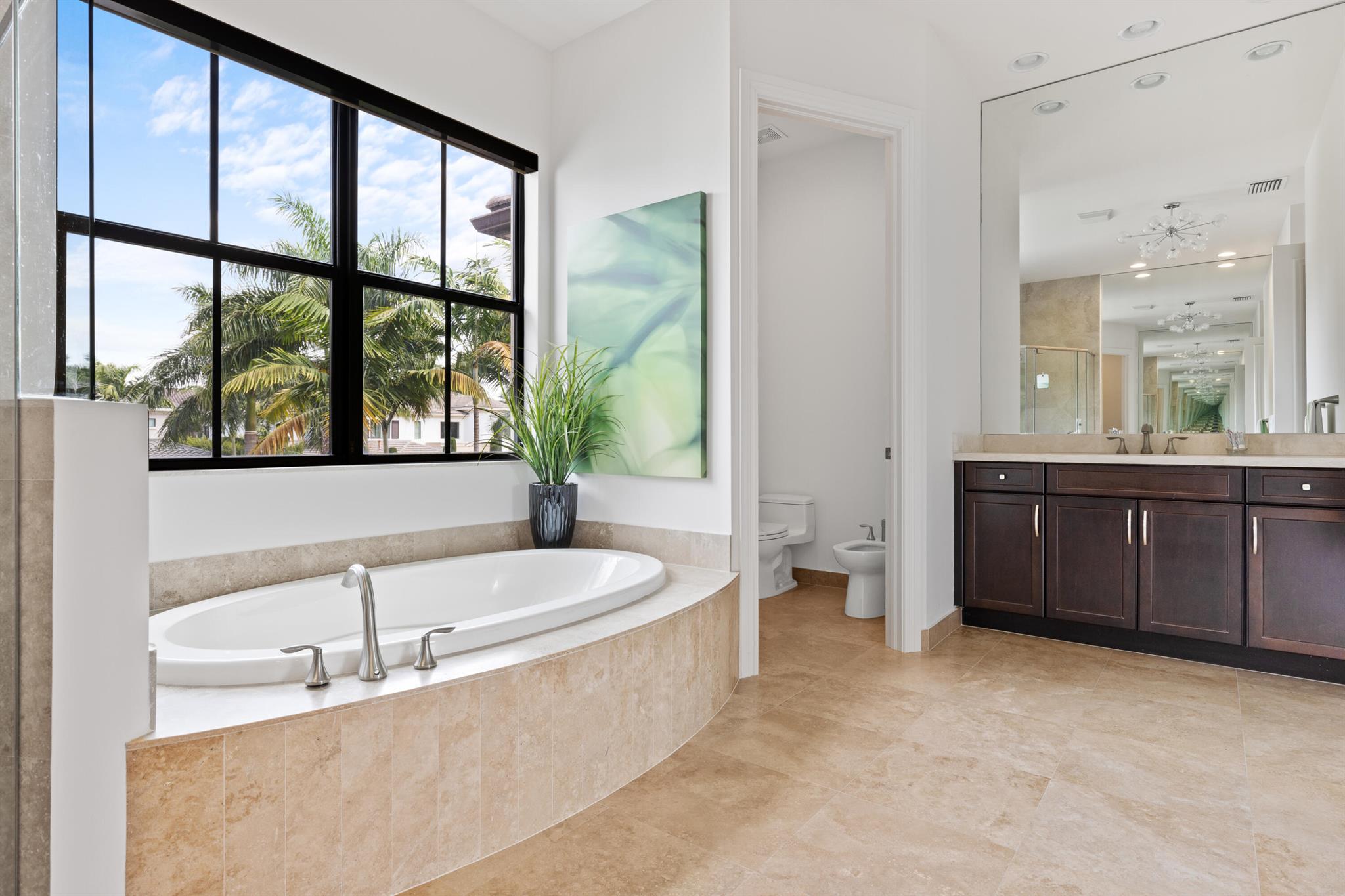 Relax while enjoying the captivating long lake view in this modern and serene estate on a generous .21-acre lot in The Oaks at Boca Raton. With 5 bedrooms and 4.1 bathrooms, this residence has plenty of space for your family and guests. The first floor encompasses a spacious living area, flexible library/den, and a gourmet kitchen with a lovely breakfast nook. Entertain with grace in the elegant formal dining room, while a guest room, full cabana bath, powder room, & a convenient laundry room/mudroom enhance daily living. The kitchen has sleek solid black granite countertops, a sizable island & high end stainless steel appliances including a double oven, natural gas stove, microwave, refrigerator/freezer, dishwasher & wine refrigerator. Enjoy meals in the picturesque breakfast area.