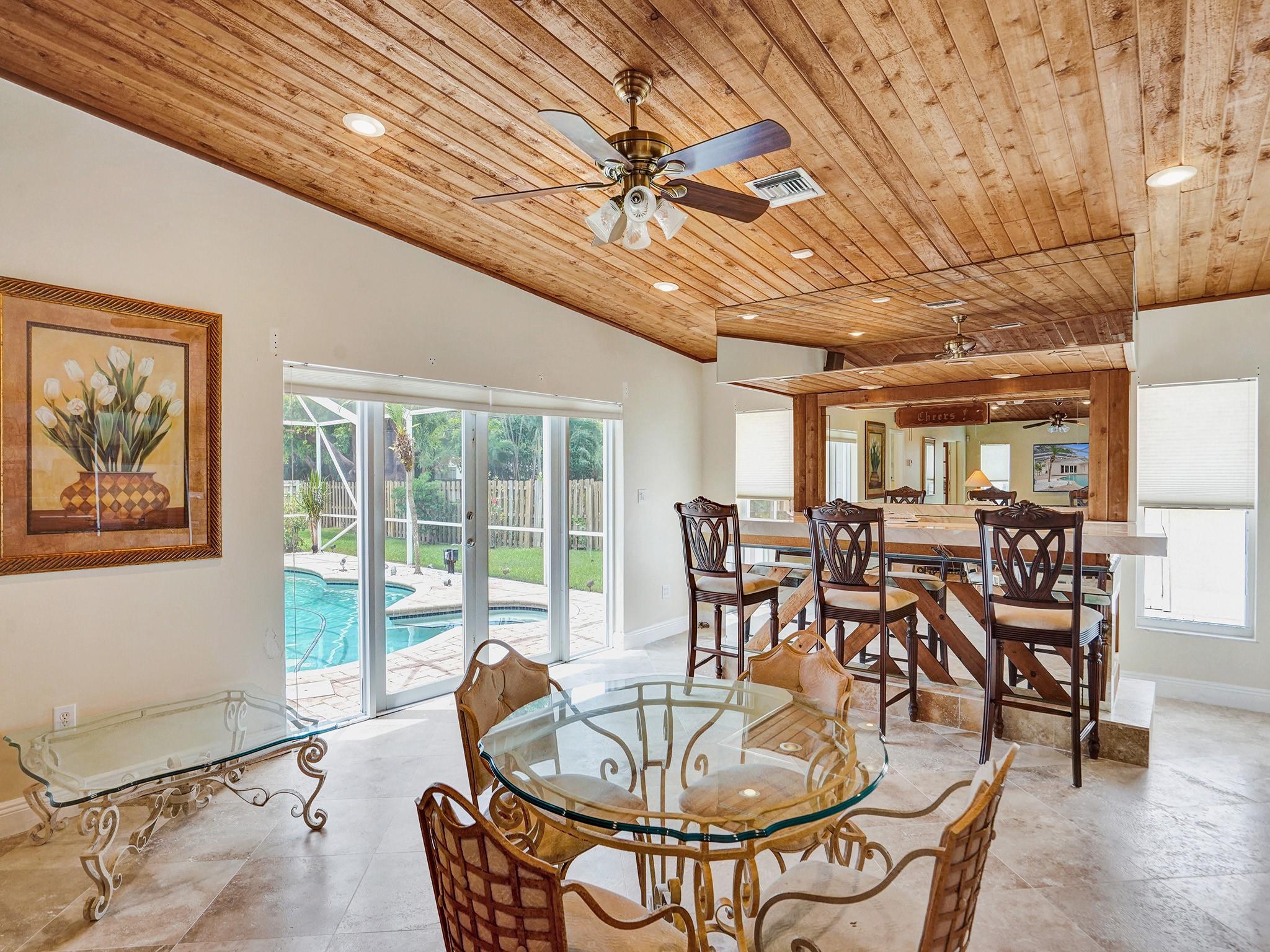 Here's the features - Large family room with fire place, Large eat in kitchen,3 full bath, custom cabinets, Large Patio, enclosed pool, Newer two separate A/C, New sprinkler system, alarm system, wet bar in the family room with a beautiful cedar ceiling , double driveway, outside Hurricane generats.r. the garage has custom storage cabinets for all the little things for the house needs.... the owner is very motivated and this beautiful house is prised to be sold to you.