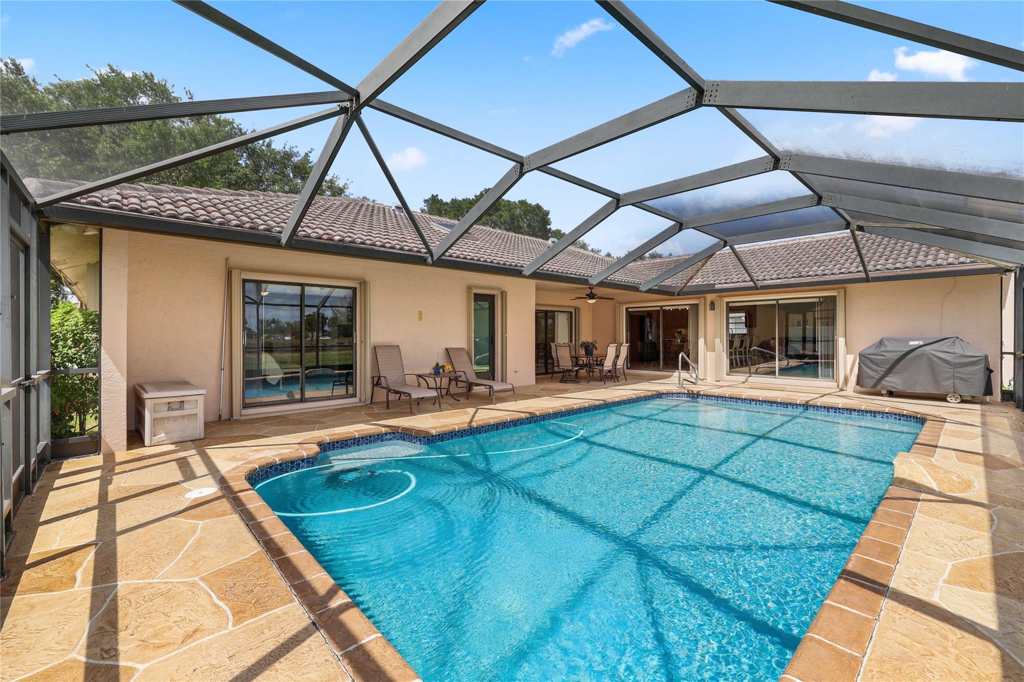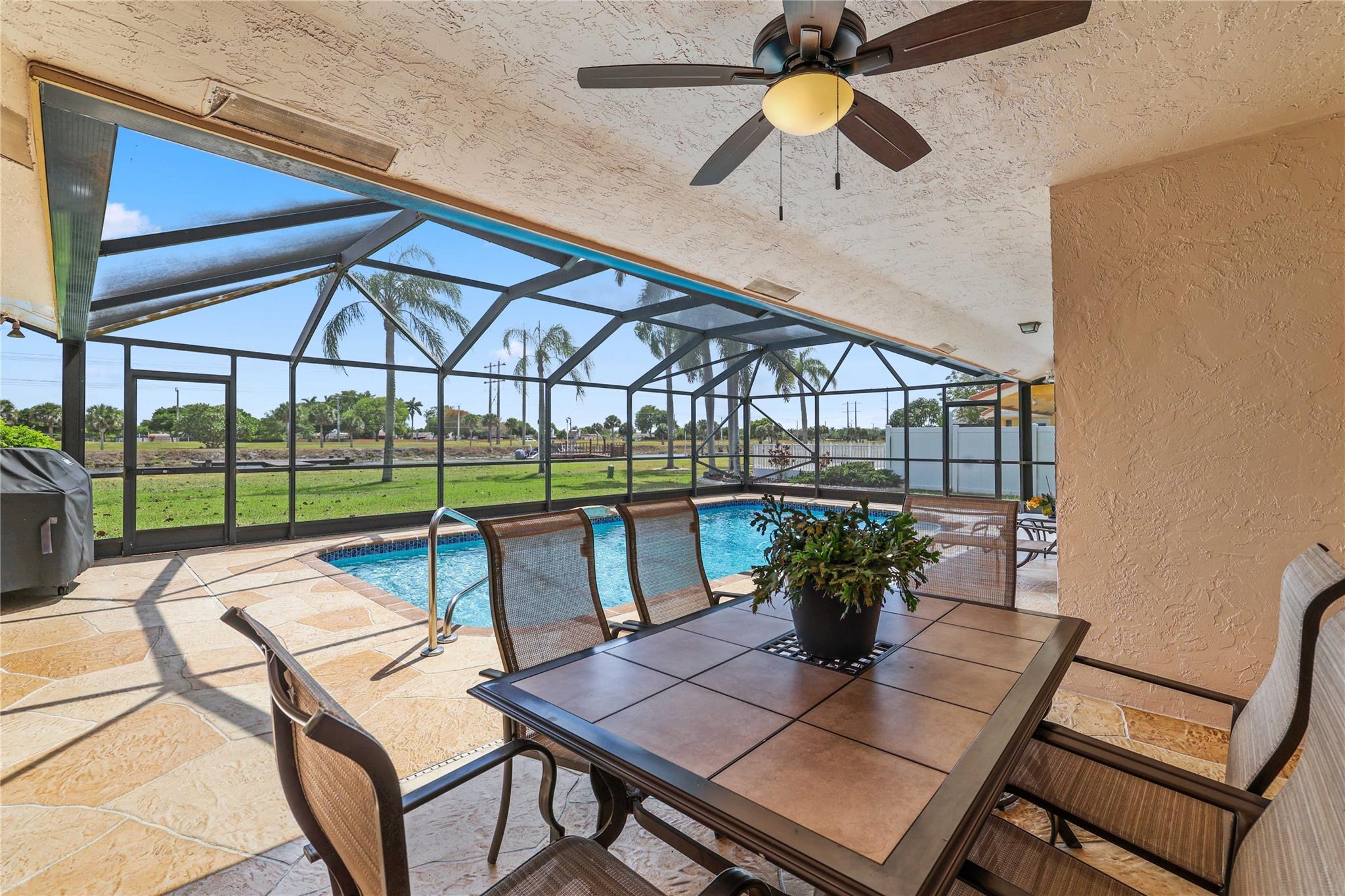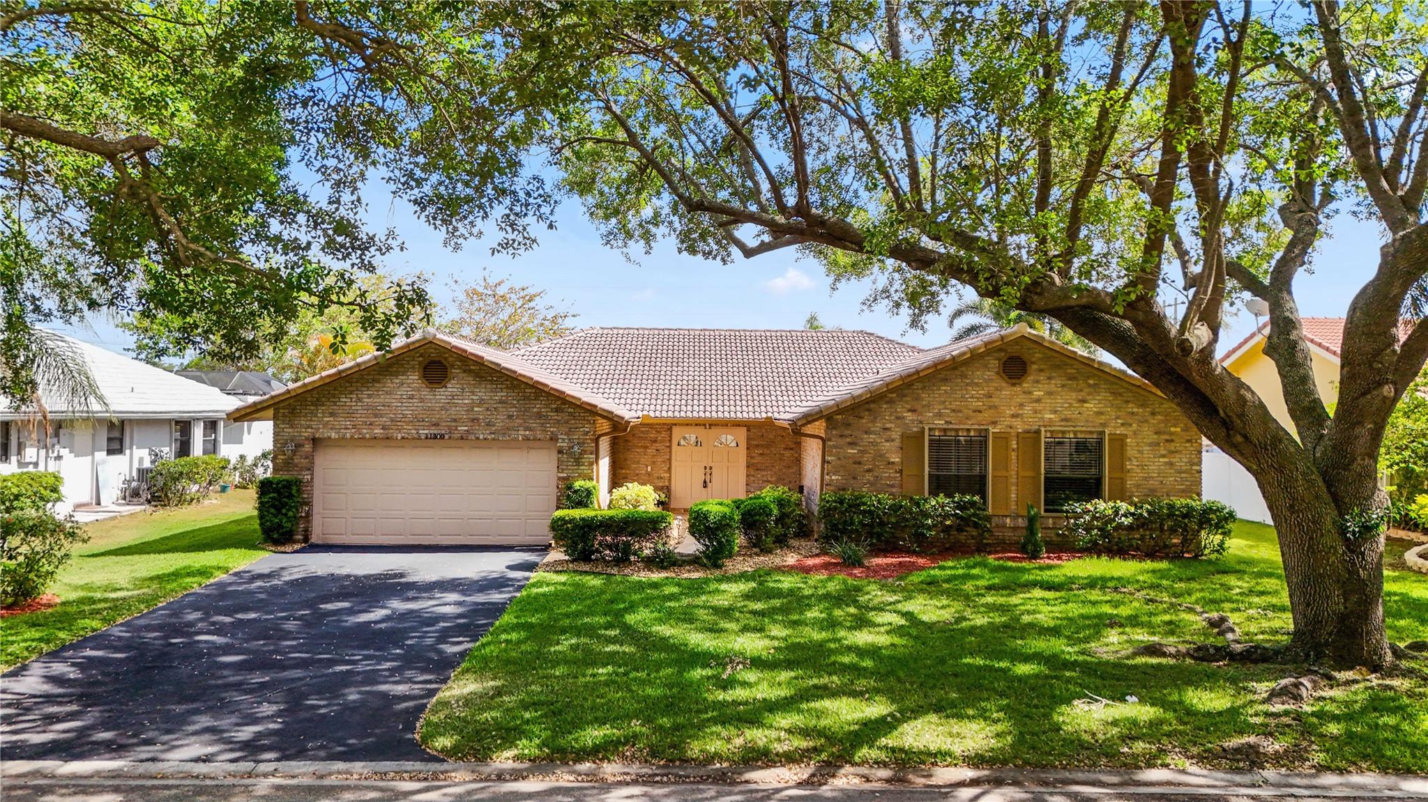 The only home in Coral Springs on the C14 canal! Fully updated featuring vaulted ceilings, wood-look tile floors throughout the living areas, & carpet in the bedrooms. Kitchen updated w/ cherry wood cabinets & newer appliances. All 3 bathrooms are completely remodeled! Master bathroom features separate tub, shower, dual sink vanity, & XL walk-in closet w/ built ins. Amazing views of the huge lot, screened in pool, & C14 canal from every main living area. Tons of room for the family or pets to roam in the oversized back yard w/ no rear neighbors. Private boat dock can be upgraded with boat lift for small boats if you'd like. Updated electrical panels, Water heater 2015. AC 2021. Homes like this don't last long, schedule your showing today!