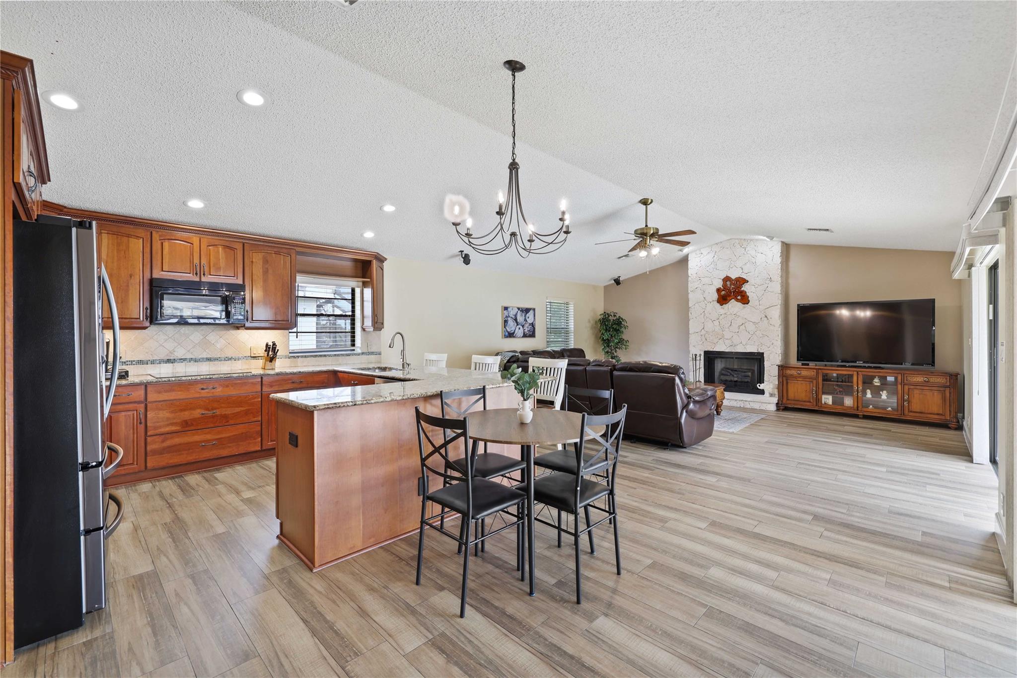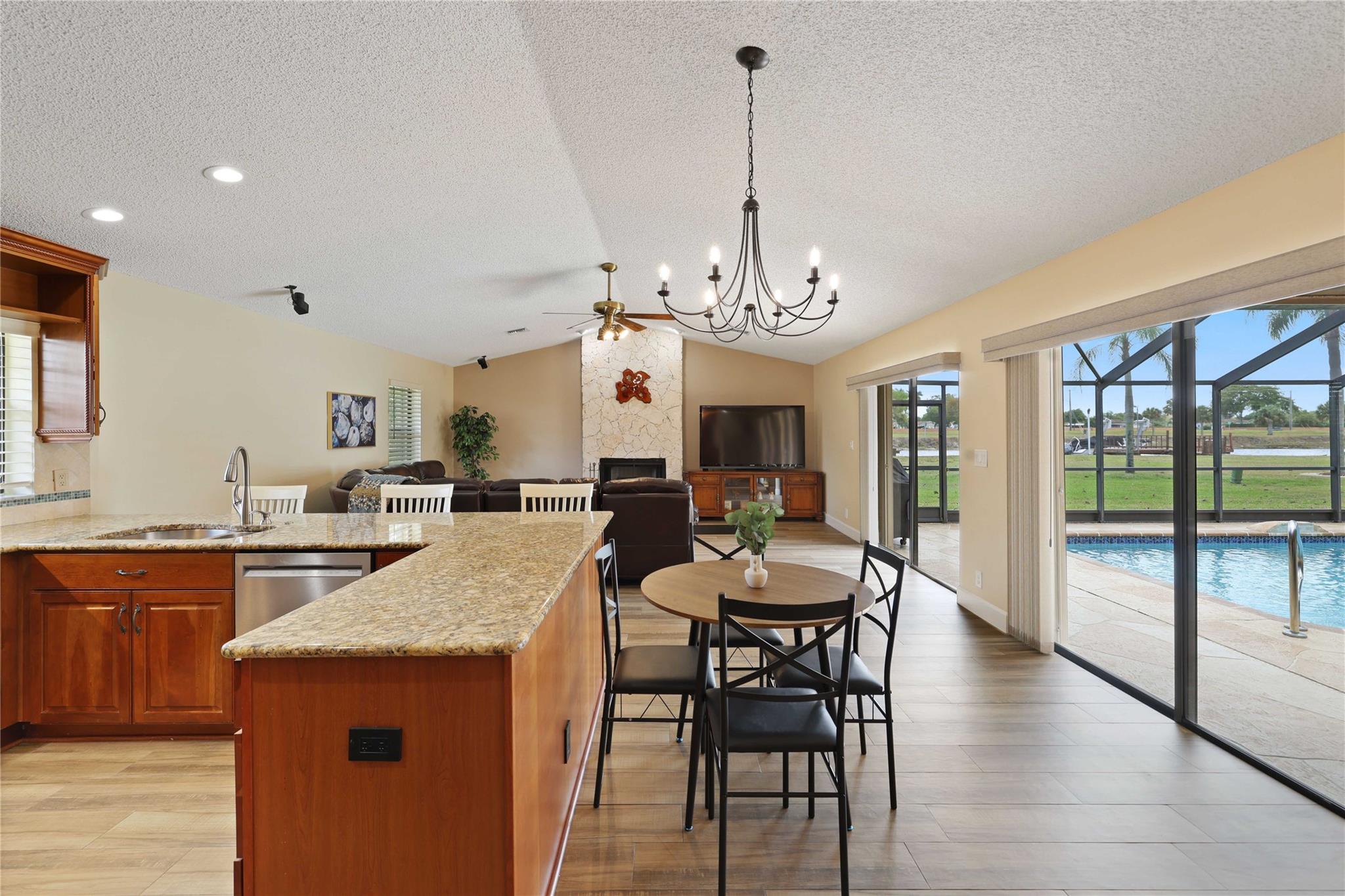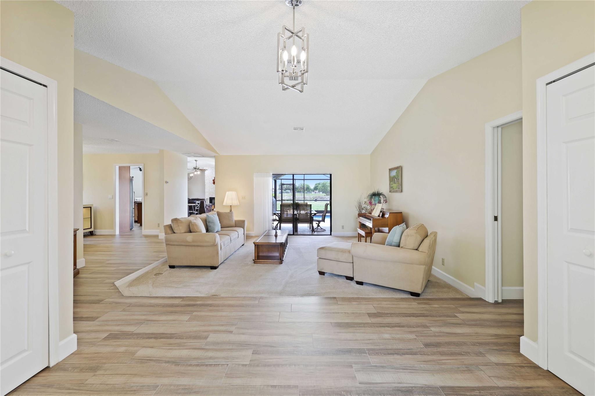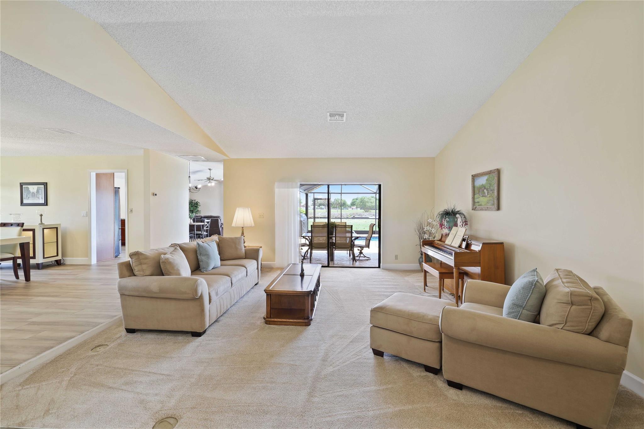 The only home in Coral Springs on the C14 canal! Fully updated featuring vaulted ceilings, wood-look tile floors throughout the living areas, & carpet in the bedrooms. Kitchen updated w/ cherry wood cabinets & newer appliances. All 3 bathrooms are completely remodeled! Master bathroom features separate tub, shower, dual sink vanity, & XL walk-in closet w/ built ins. Amazing views of the huge lot, screened in pool, & C14 canal from every main living area. Tons of room for the family or pets to roam in the oversized back yard w/ no rear neighbors. Private boat dock can be upgraded with boat lift for small boats if you'd like. Updated electrical panels, Water heater 2015. AC 2021. Homes like this don't last long, schedule your showing today!