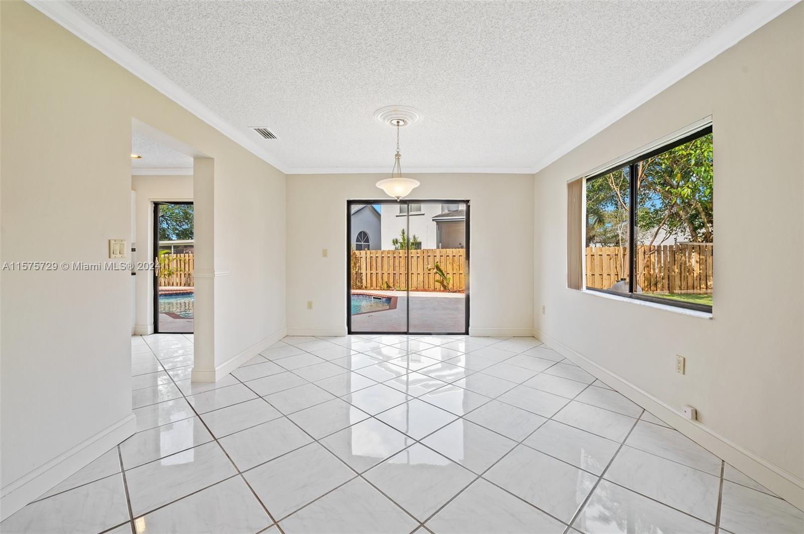 Wonderful family life in Pembroke Pines. Put your personal style into this lovely 2 story 4 bedroom 3 bath home located in the heart of the city. Enjoy a quiet evening looking at the lake and taking a dip your own pool and spa. Cuddle sac, pie shape oversized lot with your own mango tree. Tile flooring downstairs carpet upstairs, this home has been freshly painted in neutral colors. Formal. dining and living room and huge kitchen with breakfast nook. Vaulted ceilings, crown molding and spacious bedrooms with lots of natural light. New AC downstairs, roof 2012. Welcome Home.