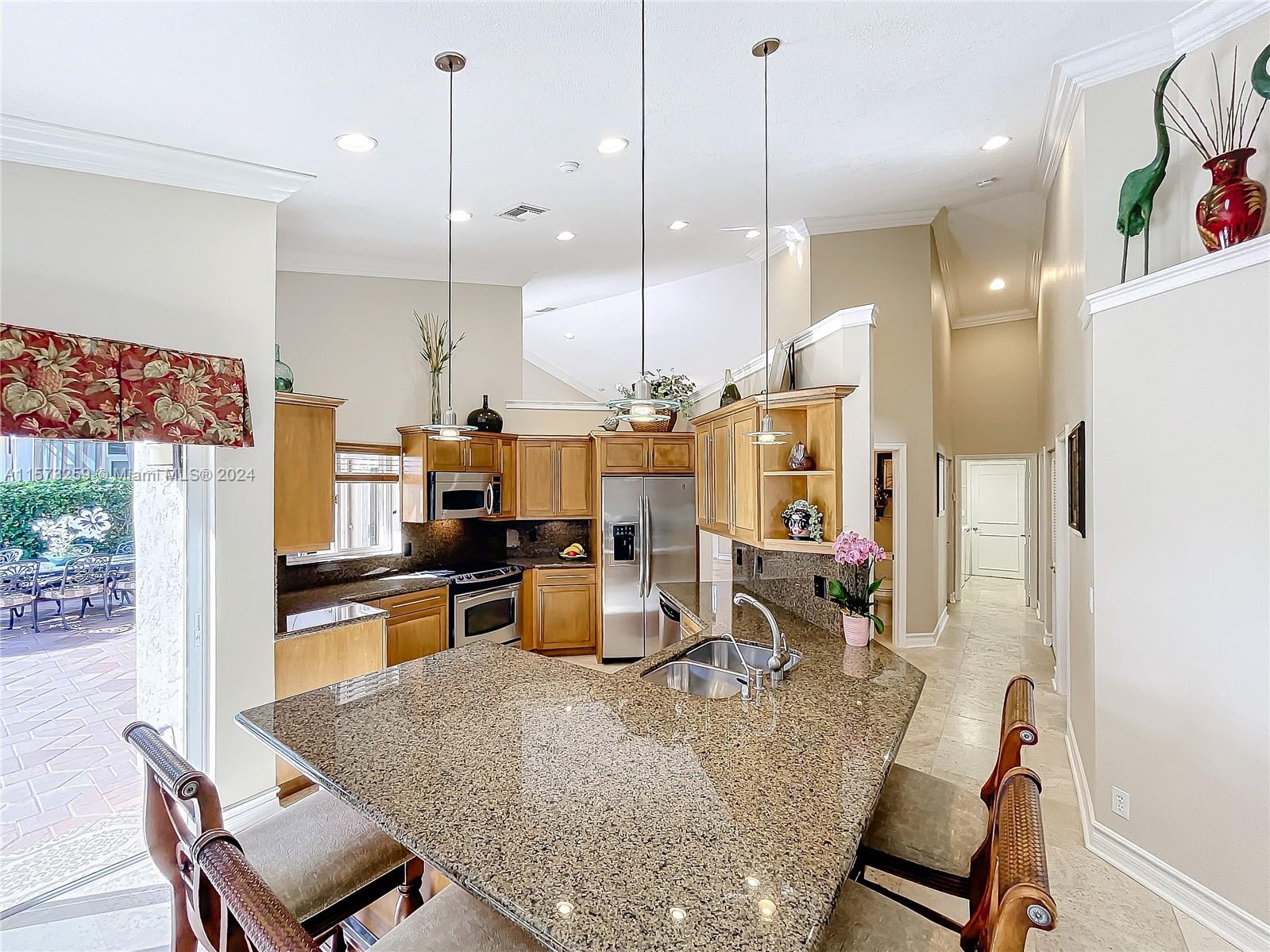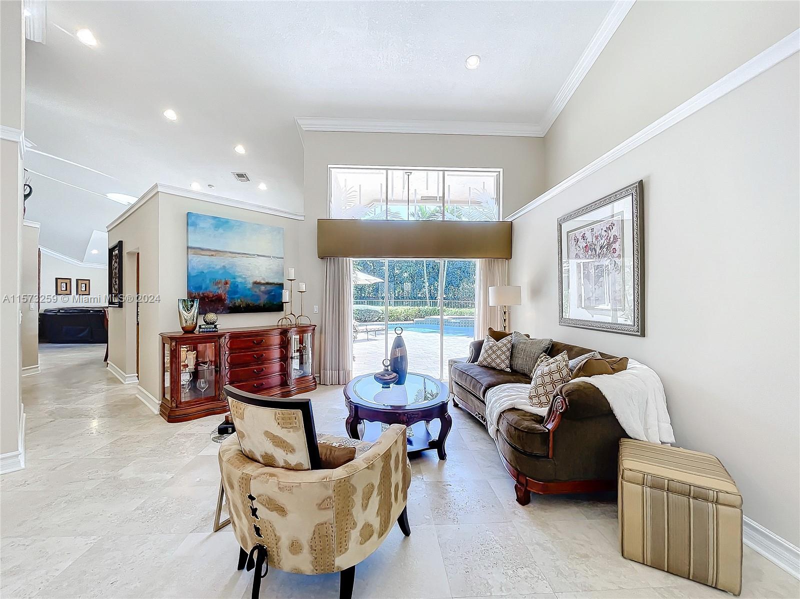Quality built by Delcrest Corp & METICULOUSLY MAINTAINED, this beautiful 2,225 sq ft ONE-STORY HOME sits on a gorgeous LAKEFRONT lot with a picturesque PRIVATE backyard (no neighbors behind). Resort-Style POOL & SPA (redone 2023), covered patio & expansive back patio area. Newer ROOF 2008, accordion shutters, new A/C 2022. All freshly painted exterior & interior. Desirable OPEN floor plan, dramatic volume ceilings, crown molding, big family room, formal dining, lovely marble flooring in all main areas. Contemporary kitchen boasts hardwood cabinets w/ pull-out organizers, stainless appliances, granite & ample size island.. Safe Guard-Gated boutique ORCHID ISLAND community w/ Tennis, Pickleball, Basketball, Tot-Lot. A+RATED SCHOOLS. See detailed Home Upgrades List in the MLS attachments.