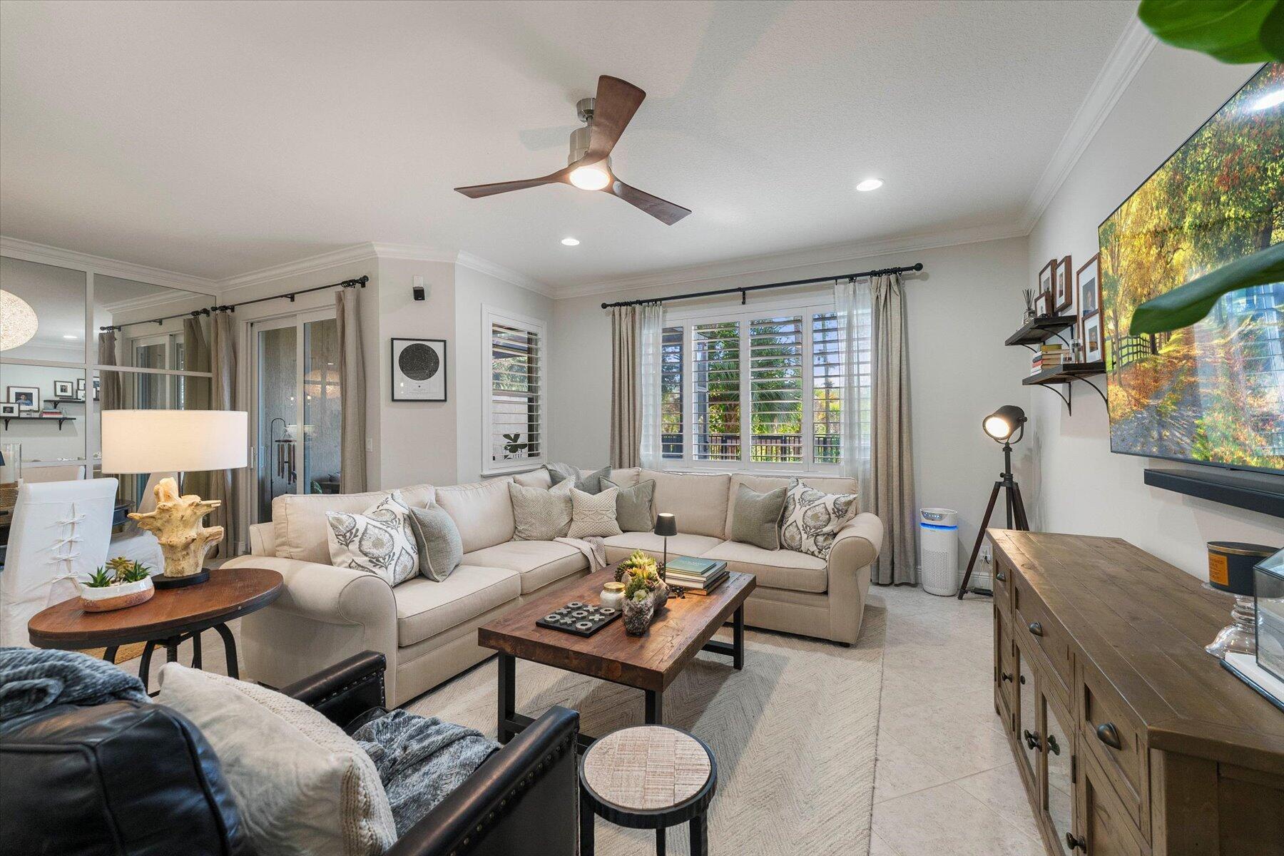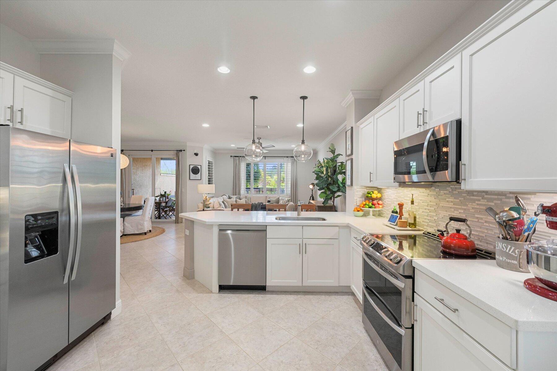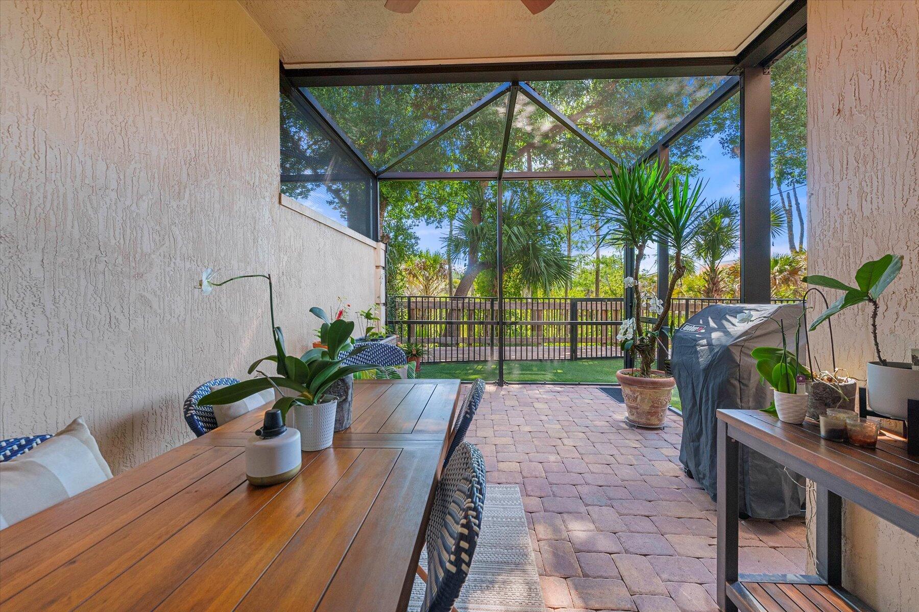 BEAUTIFUL and meticuously maintained townhome, on one of the nature preserve lots, in the quiet development of Oakton Preserve. This 3 bed, 2.5 bath townhome features 1.5 inch quartz countertops, LG and Maytag Stainless appliances, white maple cabinets in Kitchen, extra pantry space, Hurricane Impact windows and doors, Plantation Shutters throughout entire home, NEW June/2023 AC, newly turfed DREAM backyard space, privacy greenery on fully fenced backyard, preserve lookout (extra privacy with no neighbors behind you), covered screened patio space, LARGE master bedroom with tray ceiling, 2 walk-in closets, HUGE master bath with roman tub/separate shower and private water closet, 2 spacious spare bedrooms off of the loft area (loft is perfect for office space), pull down stairs to attic