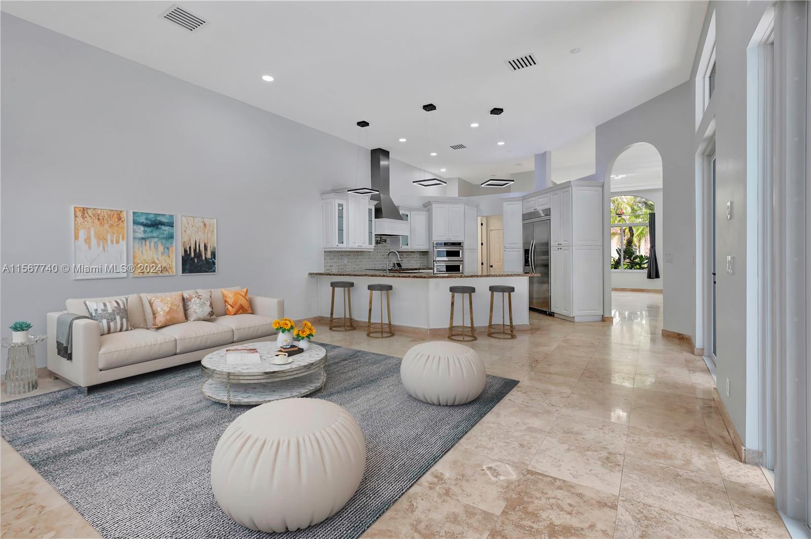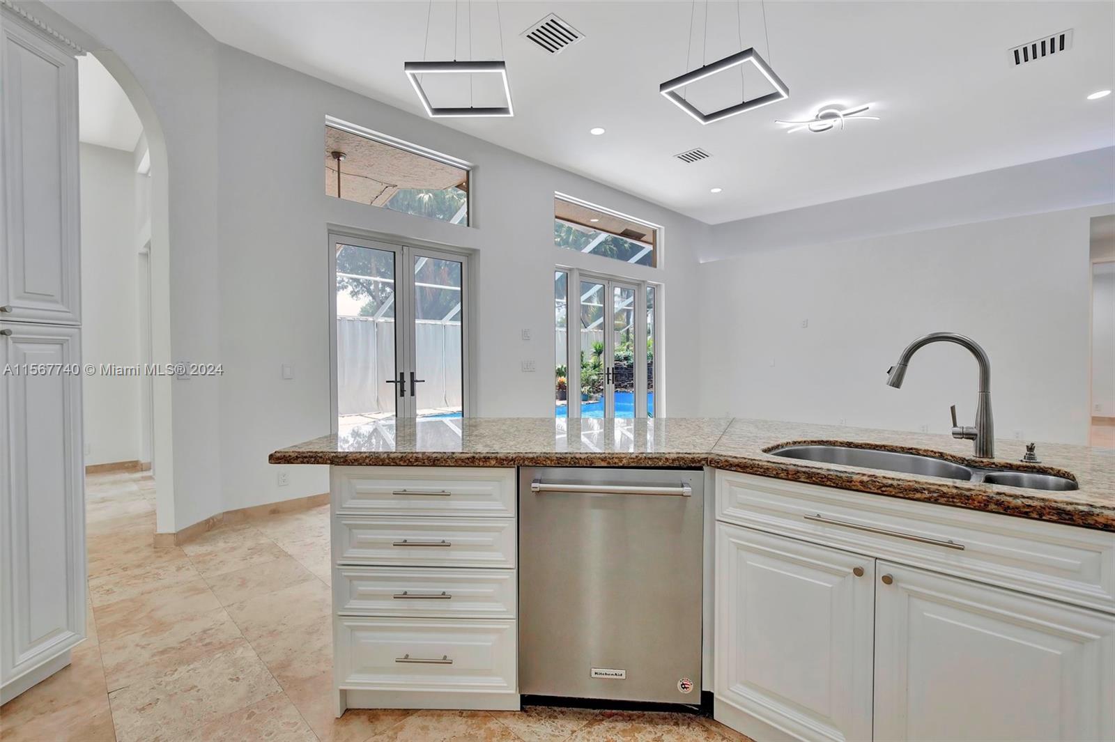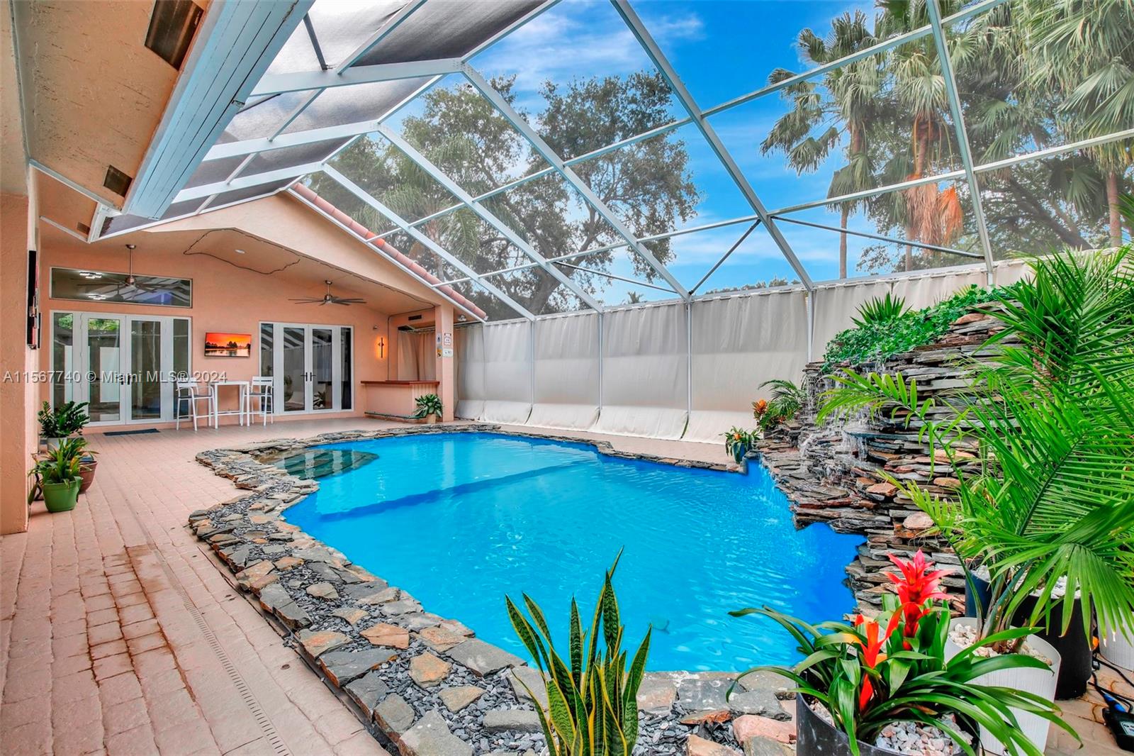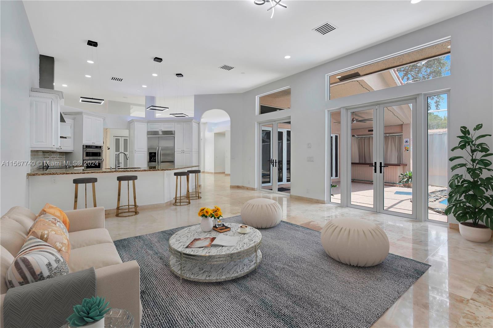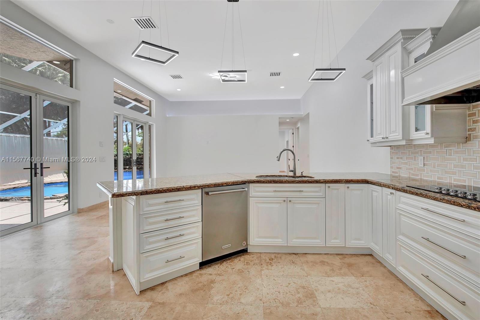 YOUR WAIT IS OVER.... FULLY RENOVATED, 5 Bed, 3 Bath, 3 Car Garage, CUSTOM BUILT, LUXURY ESTATE POOL HOME in Sought After WINFIELD ESTATES at DAVIE. Features an Inviting Floor Plan, Remodeled Open Kitchen, Contemporary White Raised Panel Cabinetry, Granite Countertops, SS Appliances, Commercial Refrigerator, Wall Oven, Glass Top Range, Exhaust Hood, Serving Bar, Spacious Master Suite, His & Hers Walk-in Closets, Spa Style Baths, Designer Vanities, Luxurious Shower, Jetted Jacuzzi Tub, Generous Guest Rooms, Smooth Ceilings, Modern Lighting, Elegant Travertine Marble Flooring Throughout ***NEW IMPACT WINDOWS & DOORS*** Expansive Screened-in Patio ***REFRESHING POOL with STUNNING WATERFALL FEATURE*** Enormous Circular Driveway, Builders Acre and Tropical Landscaping ***CITY WATER & SEWER***