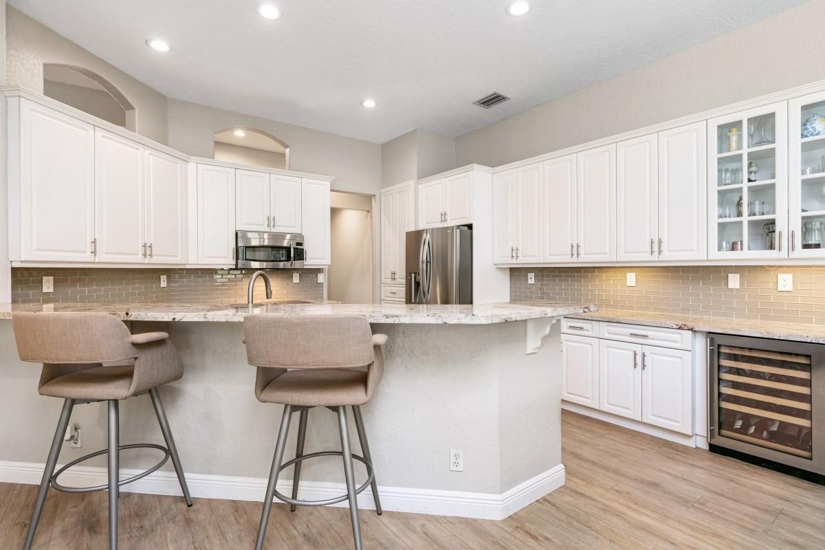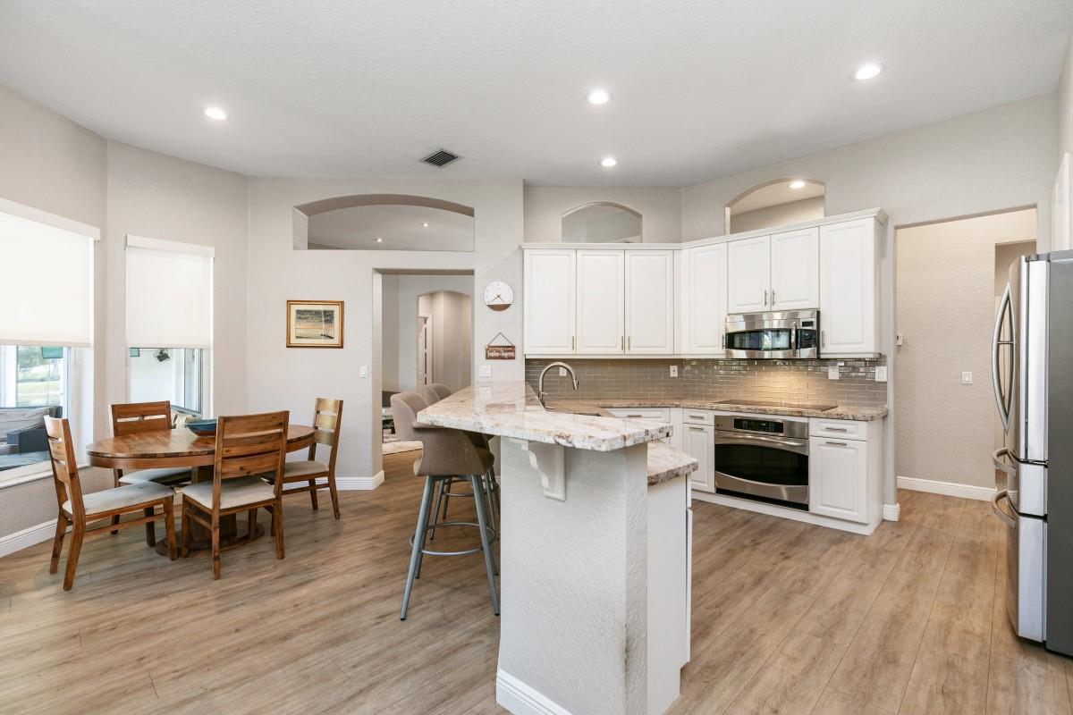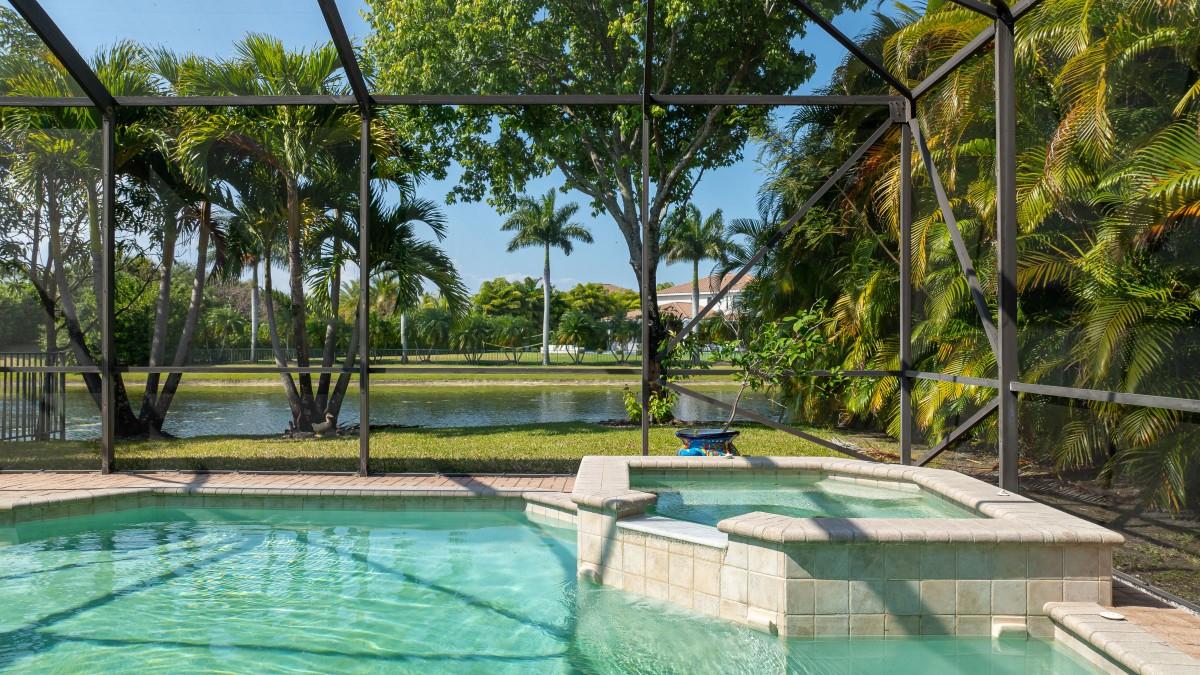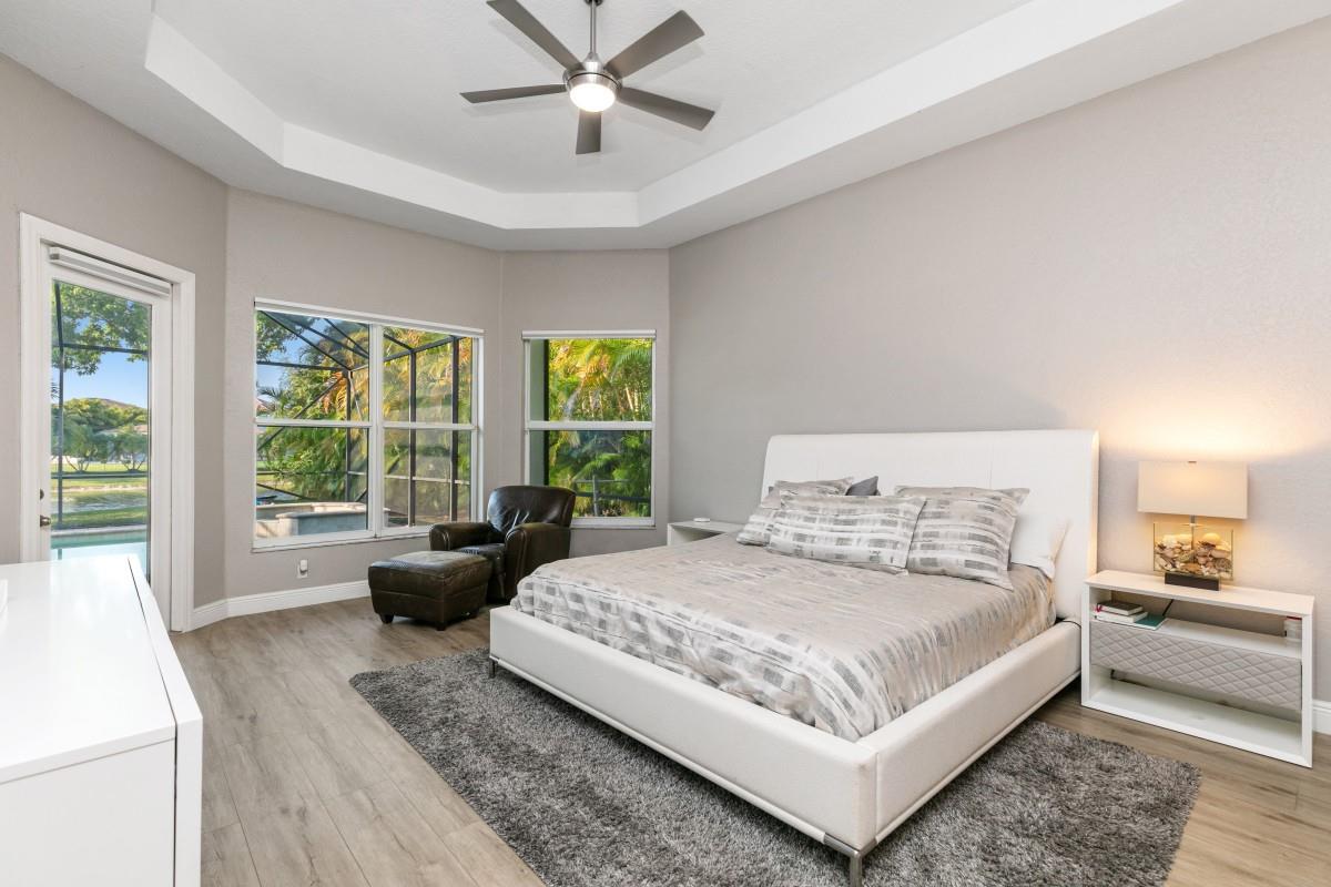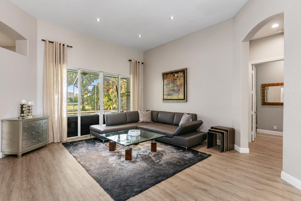 Stunning & totally remodeled home in Parkland with an array of exceptional features. This beautiful 5BR, 4BA open & airy triple split home sits on an oversized water lot in Fox Ridge. Move in ready, with neutral tones and beautiful details throughout. Continuous luxury vinyl flooring in all living areas with recently updated closets and window treatments. Freshly painted exterior; newer a/c, brand new roof, and gutters (2024). Updated white and bright kitchen with granite countertops, wine cooler, and tons of counter space & storage. All bathrooms are modern & updated with stylish fixtures & finishes. The primary bedroom adjoins a spa-like, tranquil bathroom featuring a standalone tub. Screened in pool with Jacuzzi tub overlooks a fenced yard with lush and beautifully lit landscaping.