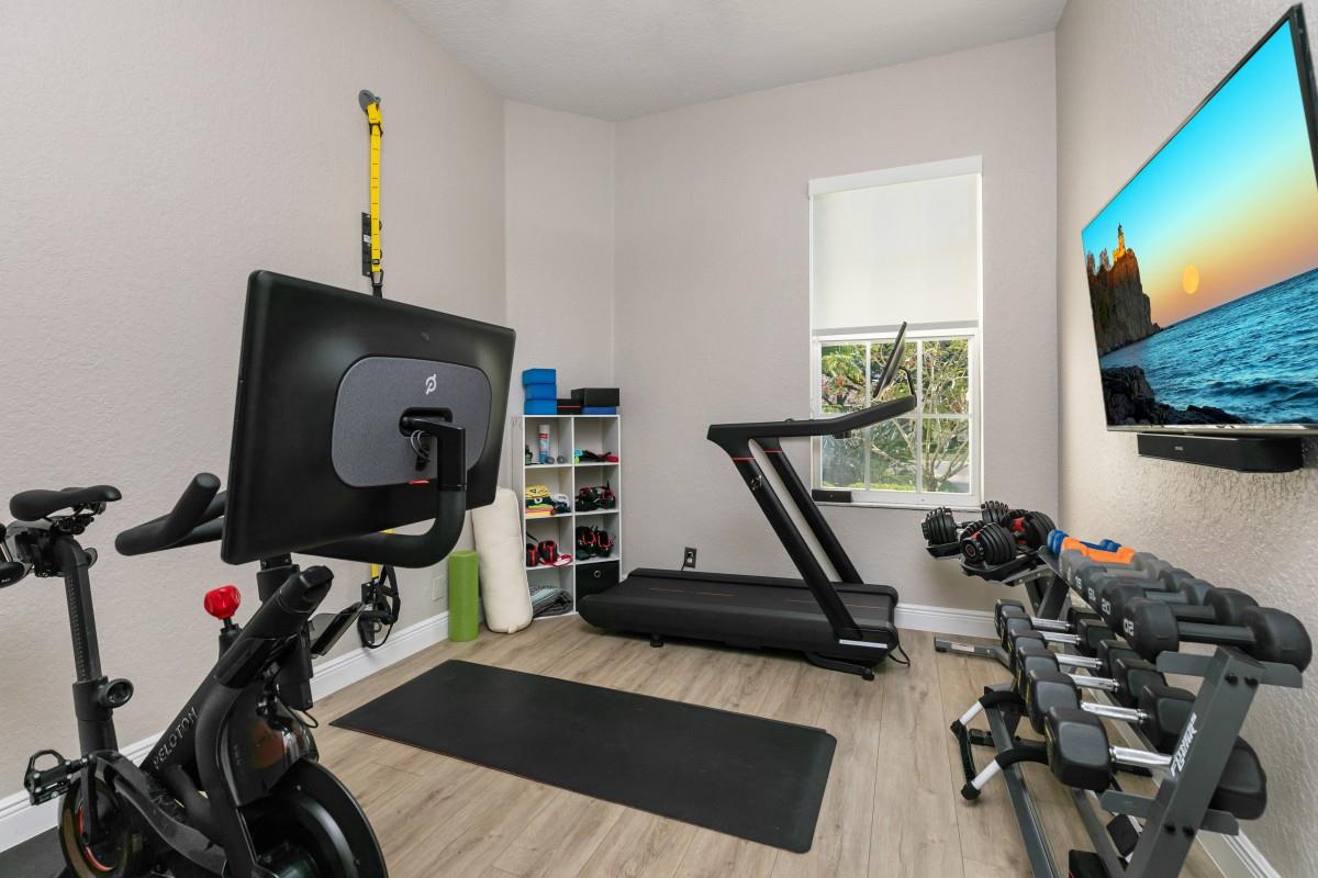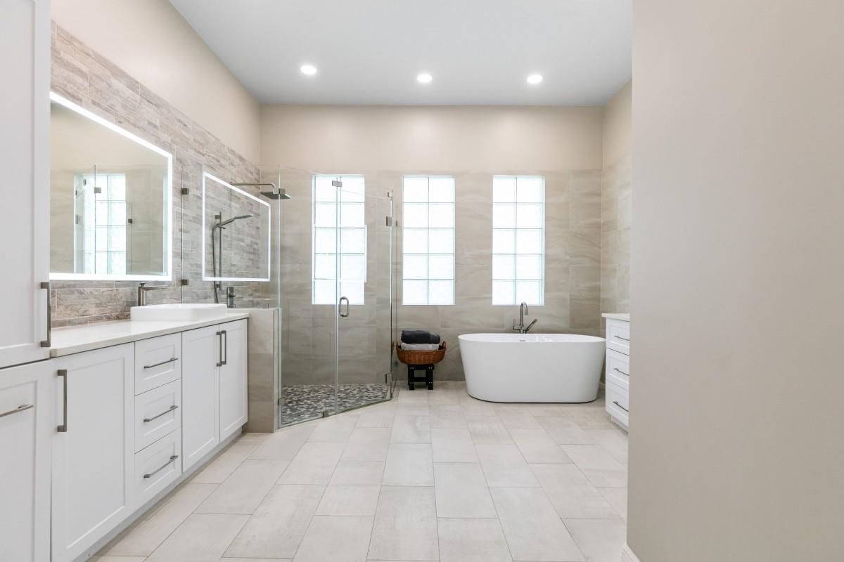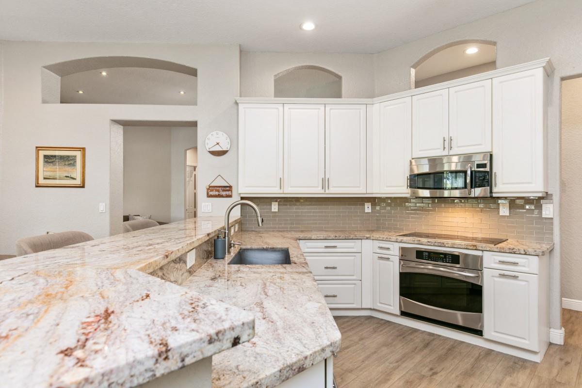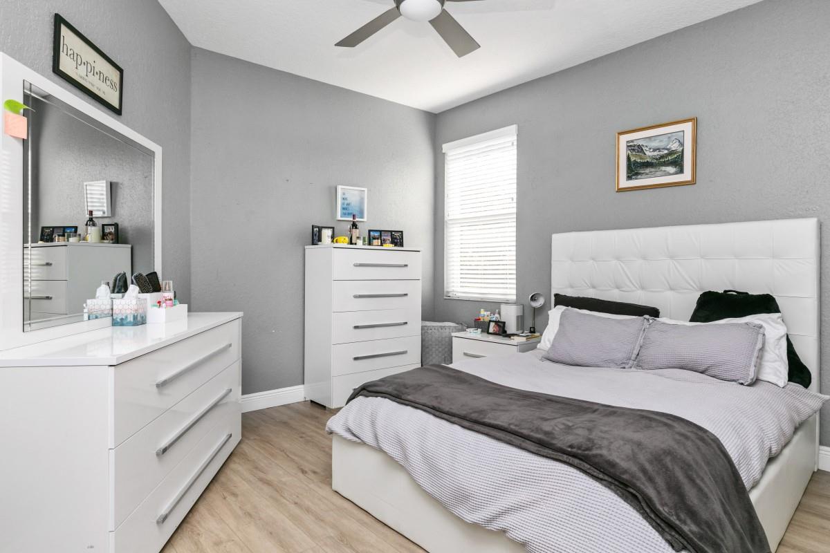 Stunning & totally remodeled home in Parkland with an array of exceptional features. This beautiful 5BR, 4BA open & airy triple split home sits on an oversized water lot in Fox Ridge. Move in ready, with neutral tones and beautiful details throughout. Continuous luxury vinyl flooring in all living areas with recently updated closets and window treatments. Freshly painted exterior; newer a/c, brand new roof, and gutters (2024). Updated white and bright kitchen with granite countertops, wine cooler, and tons of counter space & storage. All bathrooms are modern & updated with stylish fixtures & finishes. The primary bedroom adjoins a spa-like, tranquil bathroom featuring a standalone tub. Screened in pool with Jacuzzi tub overlooks a fenced yard with lush and beautifully lit landscaping.