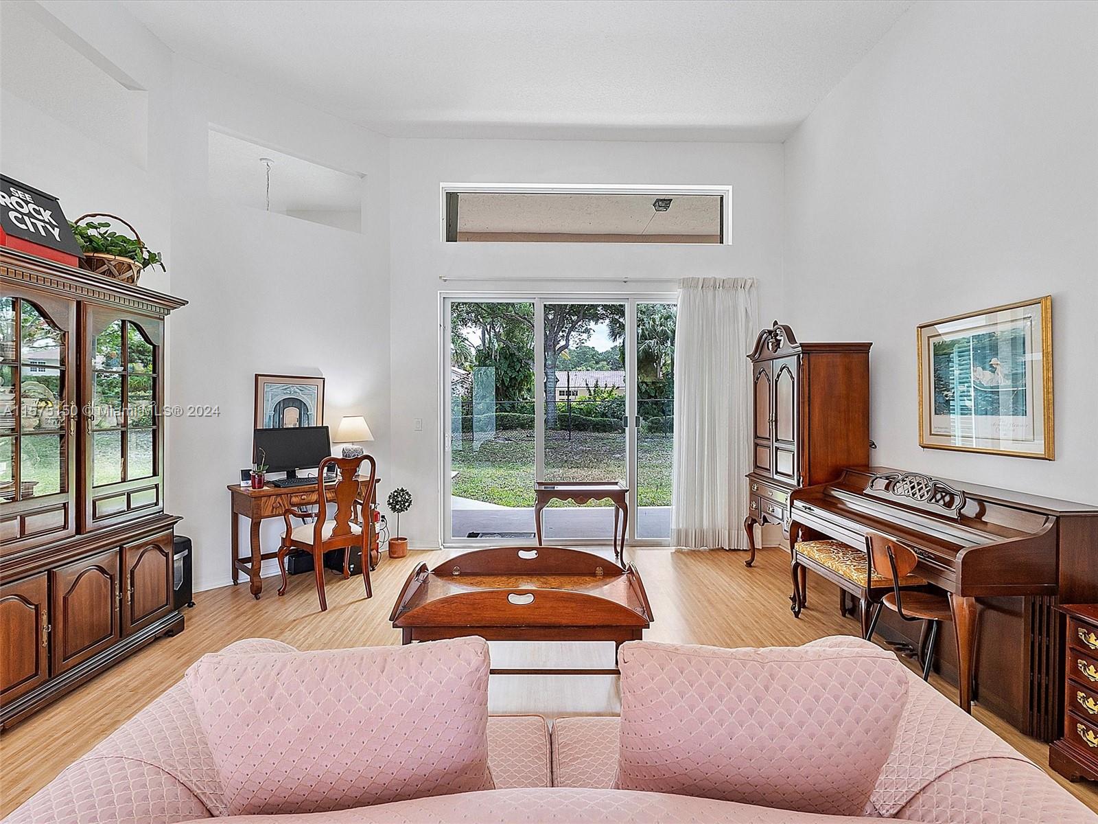 Lovely single story estate home in the guard-gated Carriage Pointe community in Coral Springs. As you enter you'll immediately notice the volume ceilings and large IMPACT windows that bring in lots of light. The home features a smart layout with 4 bedrooms + office, 3 full bathrooms, and separate living, dining, and family rooms. The open-concept kitchen is perfect for entertaining. Enjoy Sunday BBQs on the covered patio that overlooks the double-fenced backyard. Additional features include a 2016 barrel tile roof, 2-car garage, hybrid water heater, and circular paver driveway. Zoned to great schools and minutes from shopping, dining, and entertainment. This home offers the perfect blend of comfort, security, and convenience.