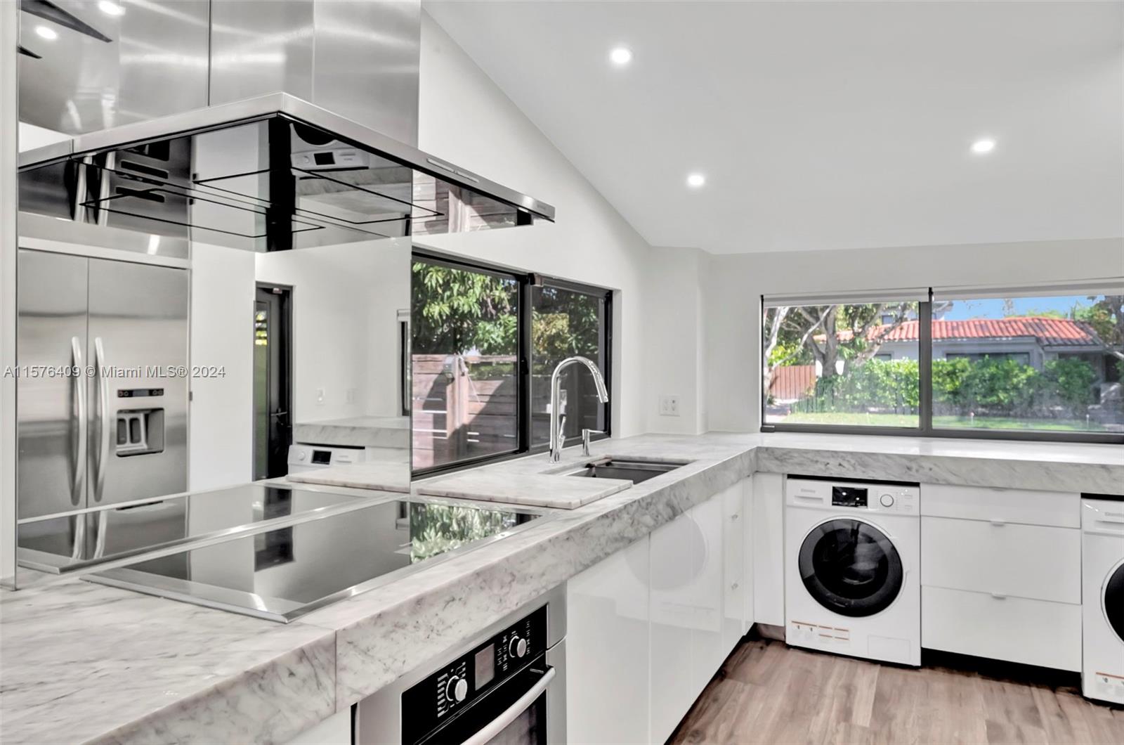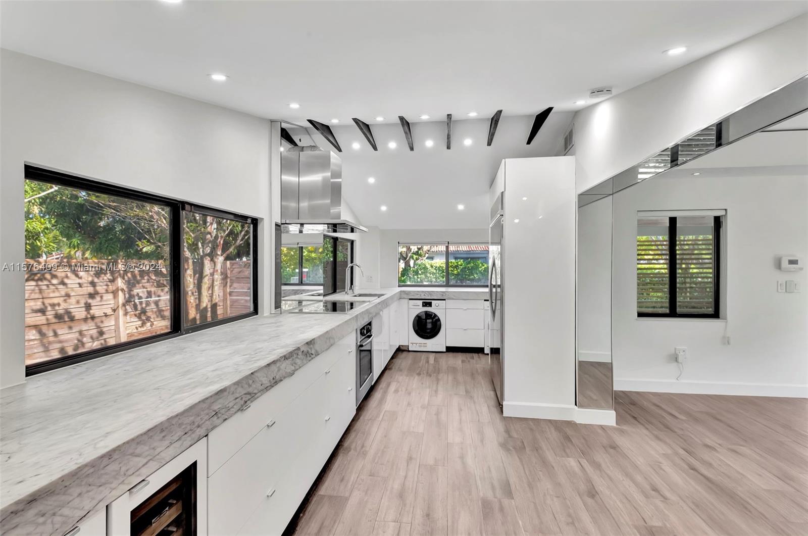 Trendy and elegant Home plus Guest House, Approx. 1910 sq foot total, are Nestled along the hammocks of Greynold's Park in North Miami Beach, both homes fully remodeled, Italian Carrara marble countertops, Hansgrohe Axor Starck fixtures, Thermador's 36-inch Masterpiece Freedom Induction Cooktops, Liebherr fridge, Bosch ovens, dishwashers, Wolf Stoves, Sub-Zero Wine Coolers. Bosch Washers/Dryers, LED Lighting inside and outside, NEW, Sedona Lynx BBQ grill. Tranquil days end to a busy city life.