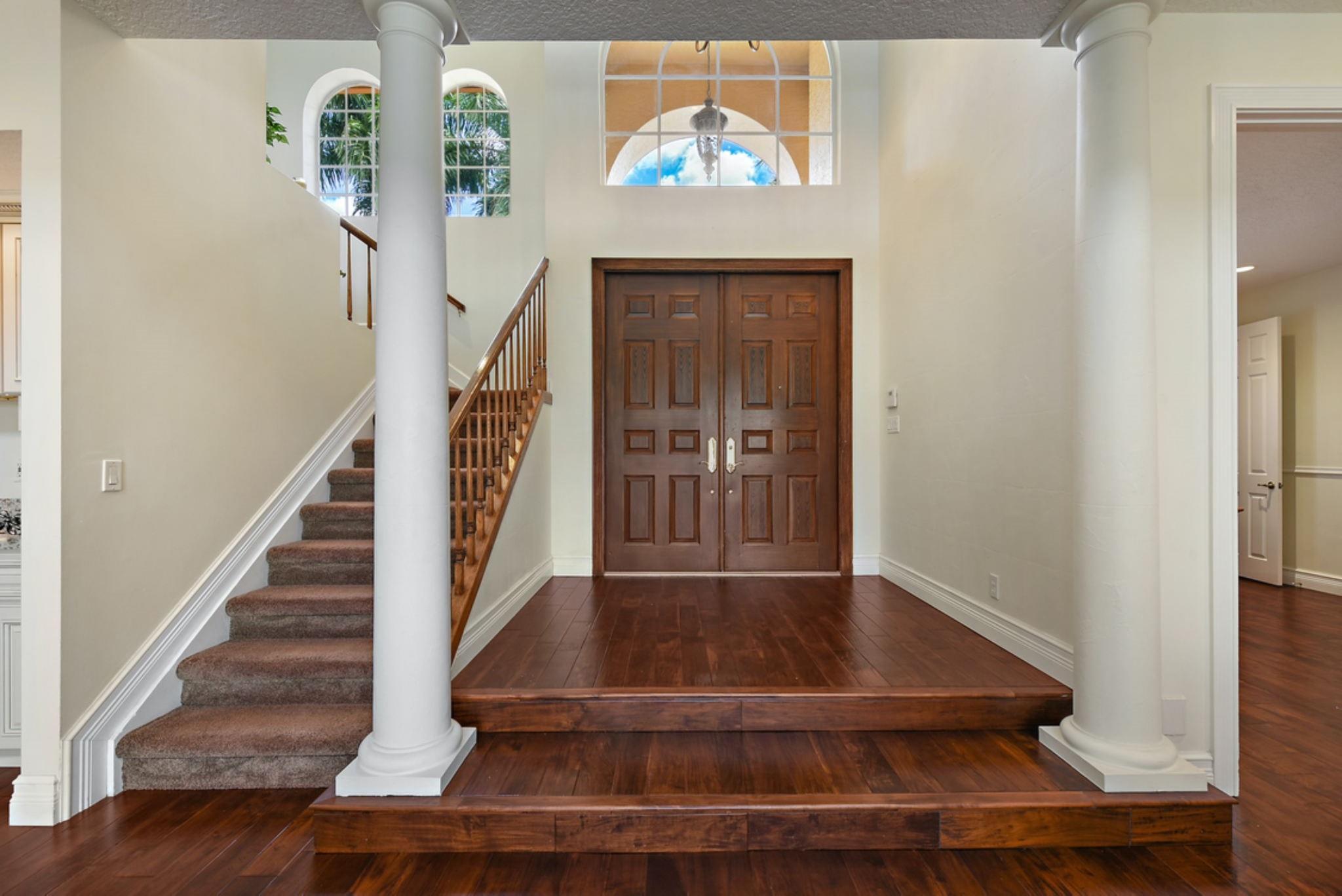 Beautiful Lake view 6BR/4Ba/2-1/2 Ba 2 Story pool home with spa in Boca Falls Estate Full screened very private backyard facing the lake Updated Kitchen with top of the line GE stainless appliances Double wall oven Granite counter tops Huge walk in pantry High end wood floors 1st floor All bedrooms have walk in California closets Whole house water filter with reverse osmosis in kitchen Fully alarmed 2 updated water heaters Neutral colors playground / heated clubhouse pool tennis courts basketball pickle ball Fitness center Manned guard gate with 24 hour rover security Top rated schools within walking distance Property has a roof certification that shows 7 years of useful life remaining for insurance purposes