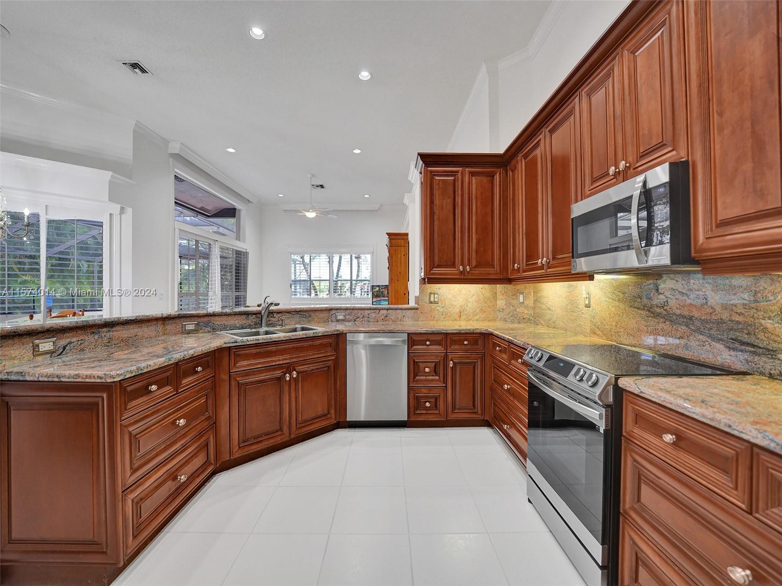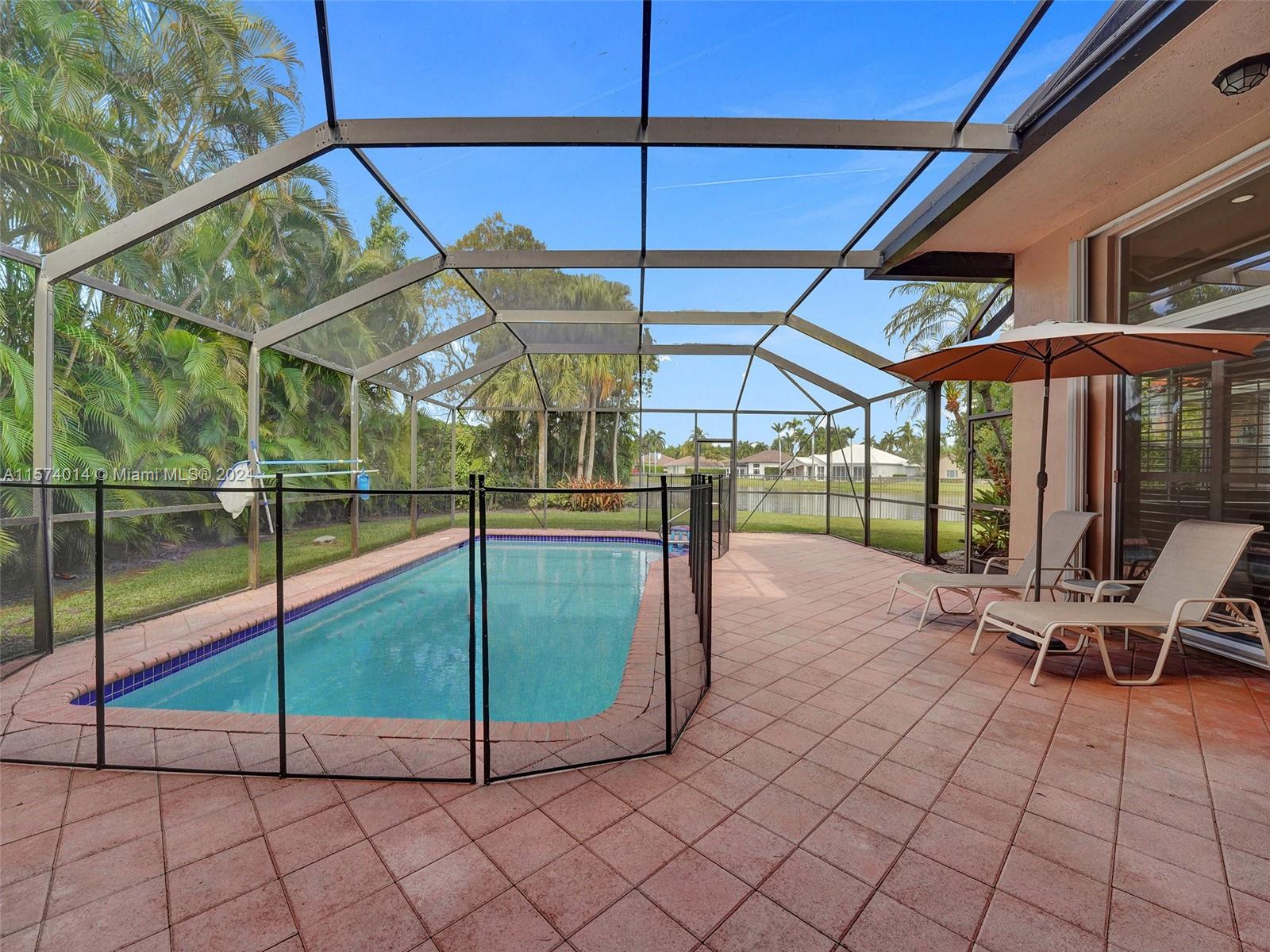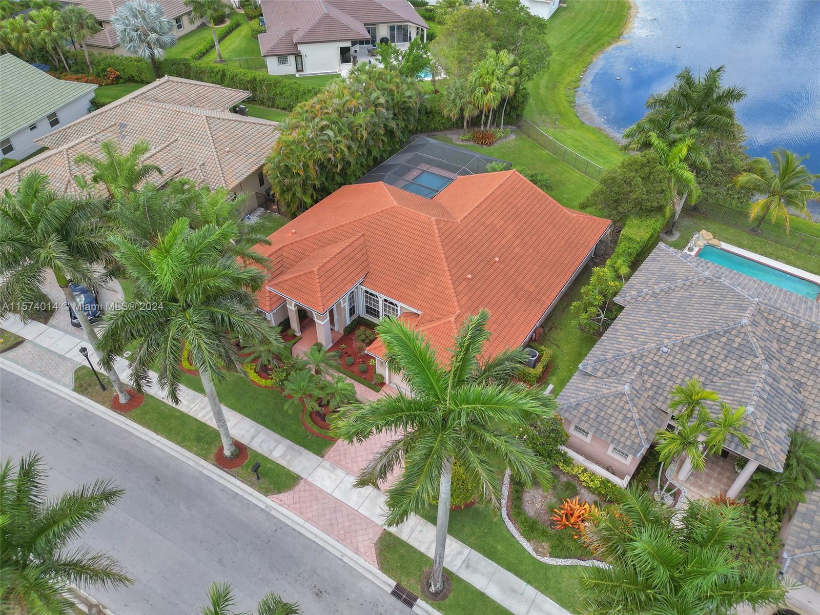 Discover elegance and comfort in Eagle Watch at Weston Hills CC featuring 4 beds, 3 baths, pool, waterfront, oversized lot, and new roof. Inside, the home is freshly painted, remodeled kitchen with granite countertops and 42” wood cabinets, along w/ SS appliances. Crown molding graces the living, dining, and family rooms, and wood-like plank flooring in all 4 beds. Updates continue in bathrooms w/ granite and onyx and steam shower in cabana bath. Enjoy a private, landscaped backyard with a screened-in pool and patio, yard space to fit your lifestyle, and stunning water views. Additional upgrades like a new AC unit, plantation shutters, and a newly installed garage door opener, this home combines style and functionality in a prestigious neighborhood. See attached for more info.