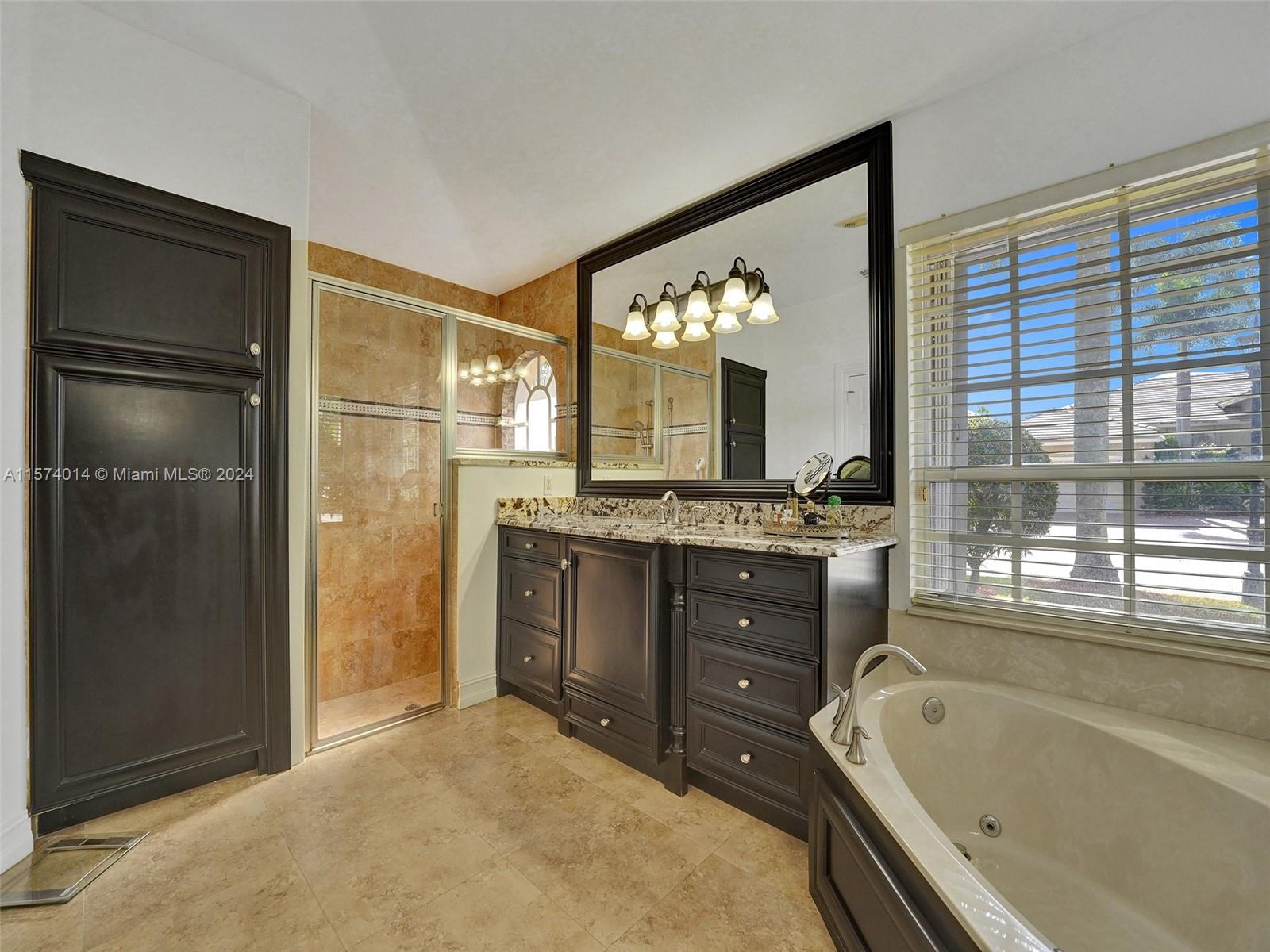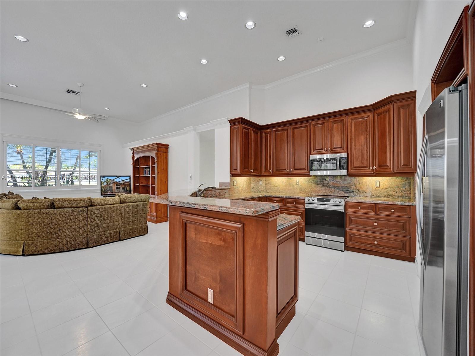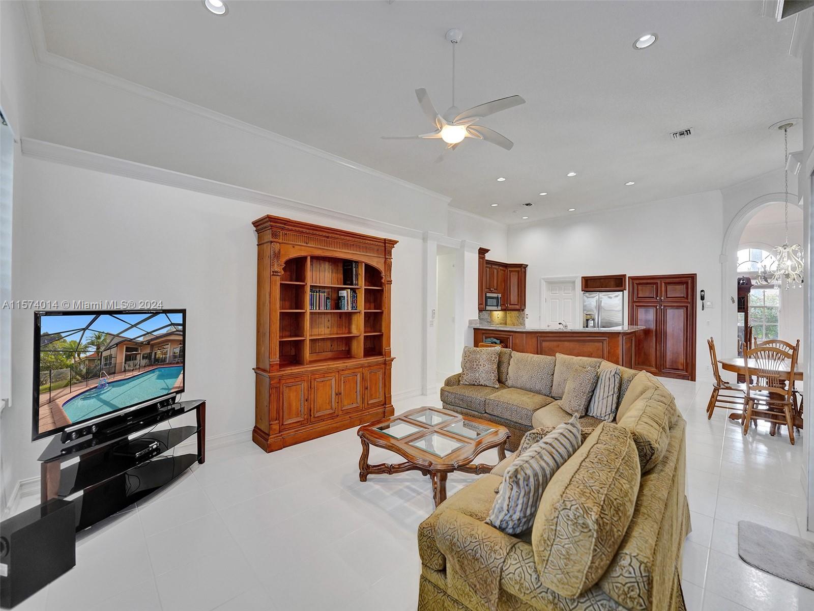 Discover elegance and comfort in Eagle Watch at Weston Hills CC featuring 4 beds, 3 baths, pool, waterfront, oversized lot, and new roof. Inside, the home is freshly painted, remodeled kitchen with granite countertops and 42” wood cabinets, along w/ SS appliances. Crown molding graces the living, dining, and family rooms, and wood-like plank flooring in all 4 beds. Updates continue in bathrooms w/ granite and onyx and steam shower in cabana bath. Enjoy a private, landscaped backyard with a screened-in pool and patio, yard space to fit your lifestyle, and stunning water views. Additional upgrades like a new AC unit, plantation shutters, and a newly installed garage door opener, this home combines style and functionality in a prestigious neighborhood. See attached for more info.