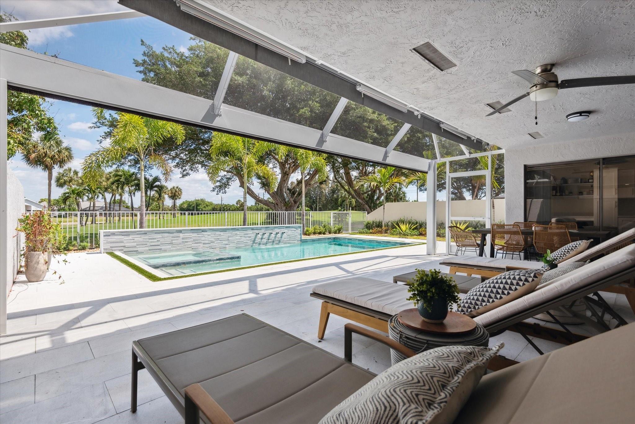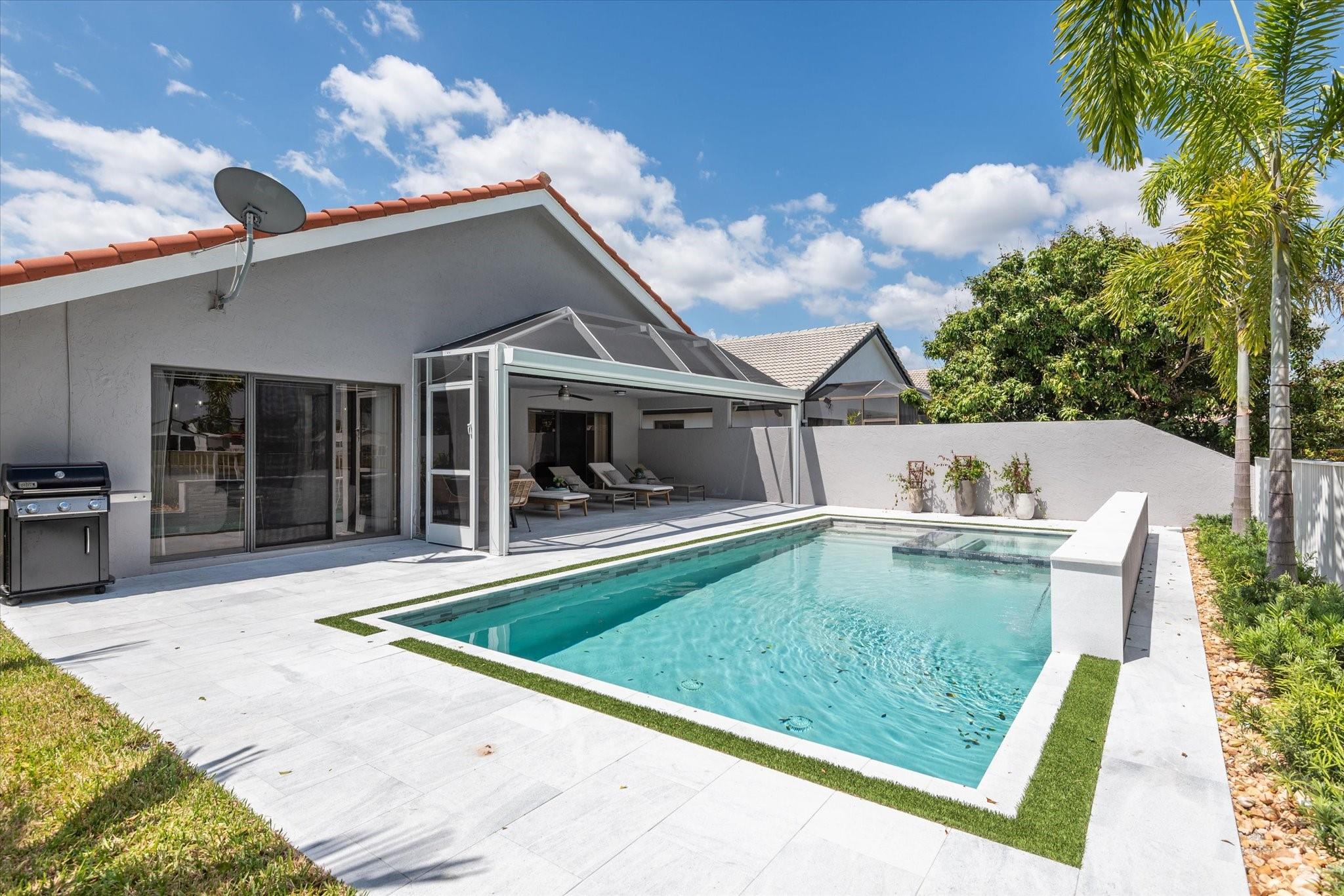 Nestled in the heart of Boca Woods Country Club, this renovated 3-bedroom, 2-bathroom home offers a perfect blend of elegance & tranquility. The heart of the home is the open kitchen creating a seamless flow between the living & dining areas. Featuring modern finishes, stainless steel appliances & island seating for 5. Step outside to your own private oasis, where an amazing outdoor patio pool area awaits with views of the tranquil lake and lush fairway . Whether you're enjoying a morning coffee or hosting a sunset gathering with friends, this outdoor space is perfect for enjoying the Florida sunshine. Country Club offers 2 golf courses, pickleball, tennis, fine & casual dining, fitness center, spa, game room & much more. Mandatory membership $ 95,000, see attached yearly fees & dues.