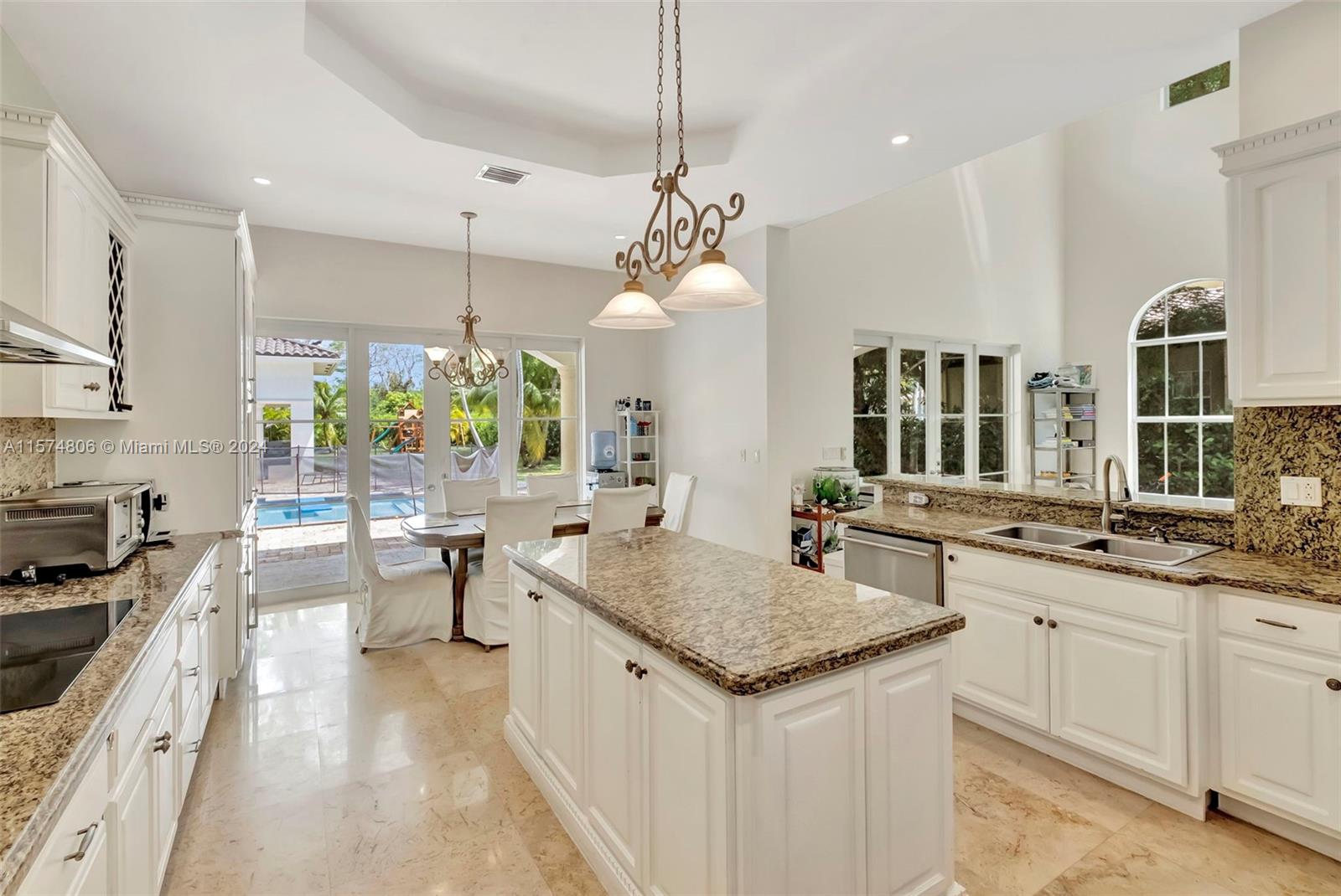 Two Story Mediterranean Estate in North Pinecrest situated on a deep tropical acre. Walled entry offering security and privacy. Distinguished entry with soaring ceiling and beautiful grand staircase. Elegant formal dining room, and formal living room with stone fireplace, beautiful marble and wood floor throughout, spacious eat in kitchen designed for a large family and entertainment. Up and down bonus family rooms plus office. Enjoy the tropical landscaping in the stunning backyard with pool and separate summer kitchen. Desired Pinecrest school location, walk to park, Pinecrest Gardens, Wayside. This home is a must see!
