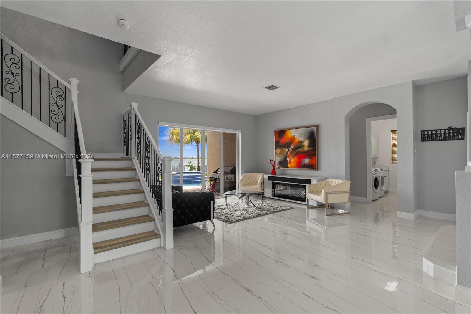 STUNNING SUNSET FALLS!! Come see this Majestic Beauty ready for a HUGE FAMILY! This home boasts 6 bedrooms PLUS A LOFT with 5 FULL BATHS , Endless LAKE VIEWS and Heated Saltwater POOL recently redone! BRAND NEW PLUMBING throughout the entire home, BRAND NEW GORGEOUS NEW FLOORS New Ac compressor Stunning light fixtures on first floor, and upgraded kitchen fit for a chef that opens to a HUGE family room and expansive views of the lake and pool. Downstairs has a bedroom and FULL bath for guests and extended family. Upstairs has 5 bedrooms and private baths. The Master bedroom is enormous with its own balcony with stunning views! The home has Accordion shutters for your convenience and protection! So much to see in this home! No neighbors in front for extra privacy.