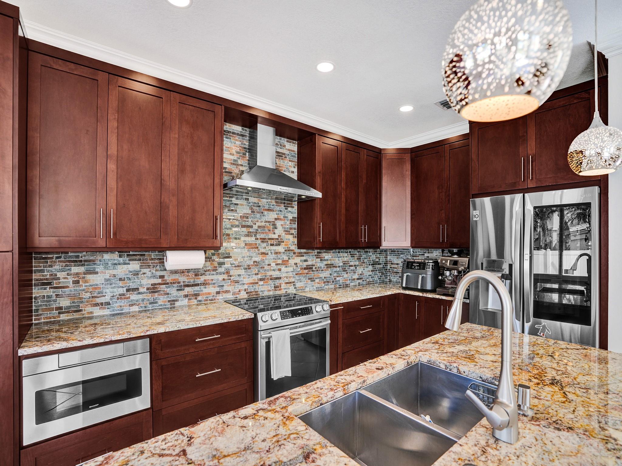 Welcome home @ the gated community of Canary Bay, Towngate. 3 Bedrooms & 2.5 bathrooms, spacious & comfortable living environment. Discover its vaulted ceilings, recessed lighting, renovated bathrooms & impact windows that fill the home with natural light. In the kitchen you'll find a cooking island, & additional dining space, perfect for entertaining. Upstairs, has a great open den & three nicely sized bedrooms, including the principal with a walk-in closet & new bath. Outside, the private backyard offers ample space for relaxation & play. This home has ss appliances, soft-close cabinetry, motorized window treatments, & more. Enjoy the convenience of living near I75, shopping malls, & community amenities including a pool, clubhouse, & gym. Roof checked 5/14 & given 8-10 years by roofer.