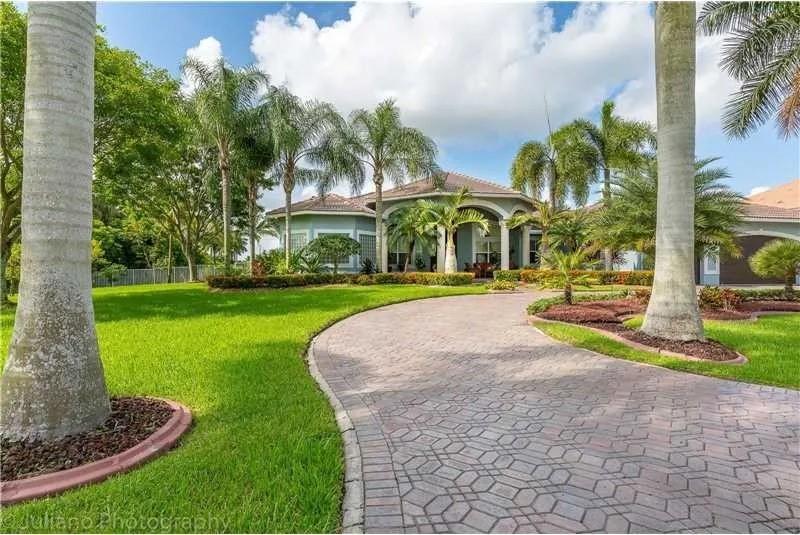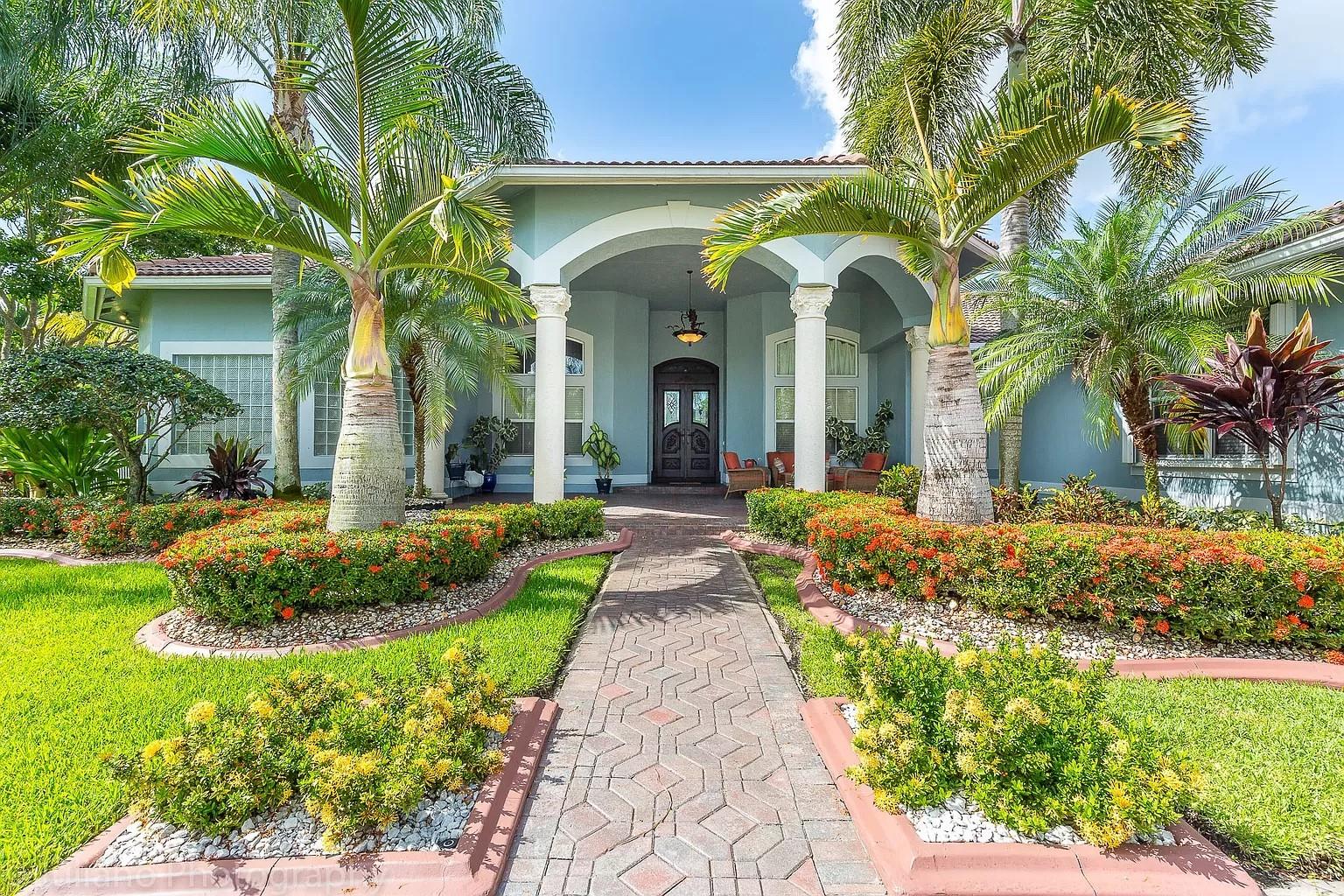 BOM- Welcome to luxury living in Davie's, Emerald Isles Estates. This spacious 4 Bed, 4 Bath home plus office on a builder's acre is a showcase of elegance. The interior boasts volume ceilings, architectural details, and wood crown molding. The Primary suite enjoys its own wing and features wood floors, double walk-in closets and large ensuite bathroom. Open floor plan features ceramic tile in common areas, formal dining, custom wet bar, gourmet kitchen w/granite countertop, custom wooden cabinetry and new SS appliances. Escape to your private pool oasis in the expansive backyard with covered patio, brick pavers, lush tropical landscaping, fruit trees & serene lake views for relaxation. A/C (2024), Water heater (2023), Roof (2022). Easy access to shops, restaurants, parks and FLL airport.