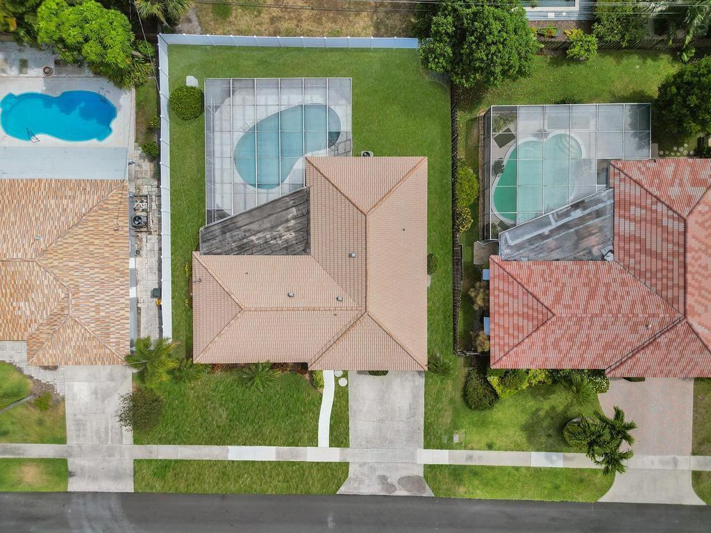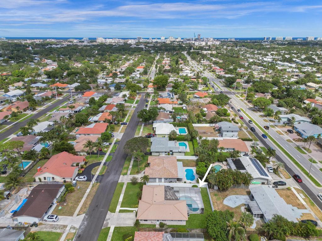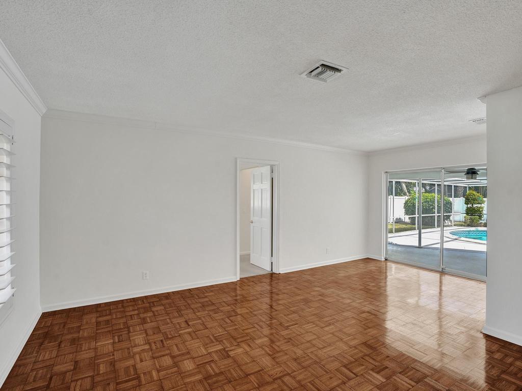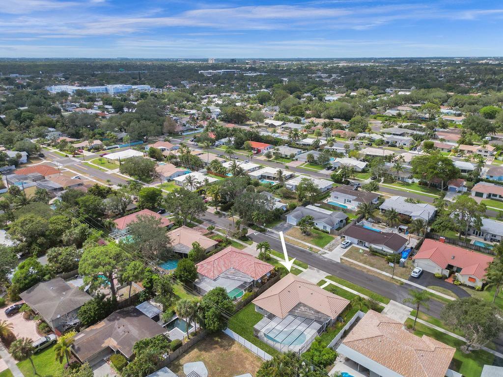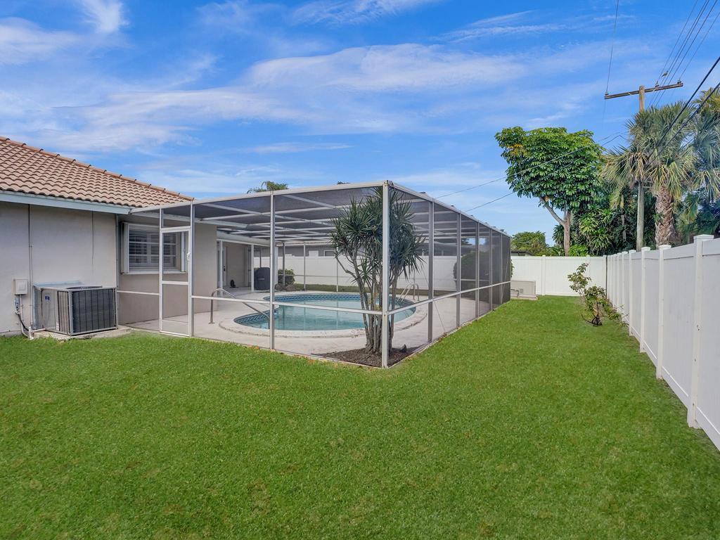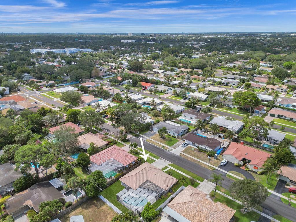RARE 4-bedroom with large bonus 5th room with closet and windows in the desirable Boca Square neighborhood! Walk to Addison Mizner! A ONE-owner home, this great property was custom built for the family (original plans are available). Parquet wood flooring. Split floorplan with a kitchen that opens to large pool and screened lanai. Plantation shutters. Natural gas line in backyard powers 20 kW standby generator, pool heater, and instant hot water heater which provides low energy bills. 2022 AC package unit. Pool resurfaced 2015; new pool pump. Full hurricane shutters. House was custom built to include 5th bedroom off of laundry/utility area; could easily become a 5/3 with little work. Located on a quiet street, minutes to A-rated schools, beaches, shopping and downtown Boca Raton.