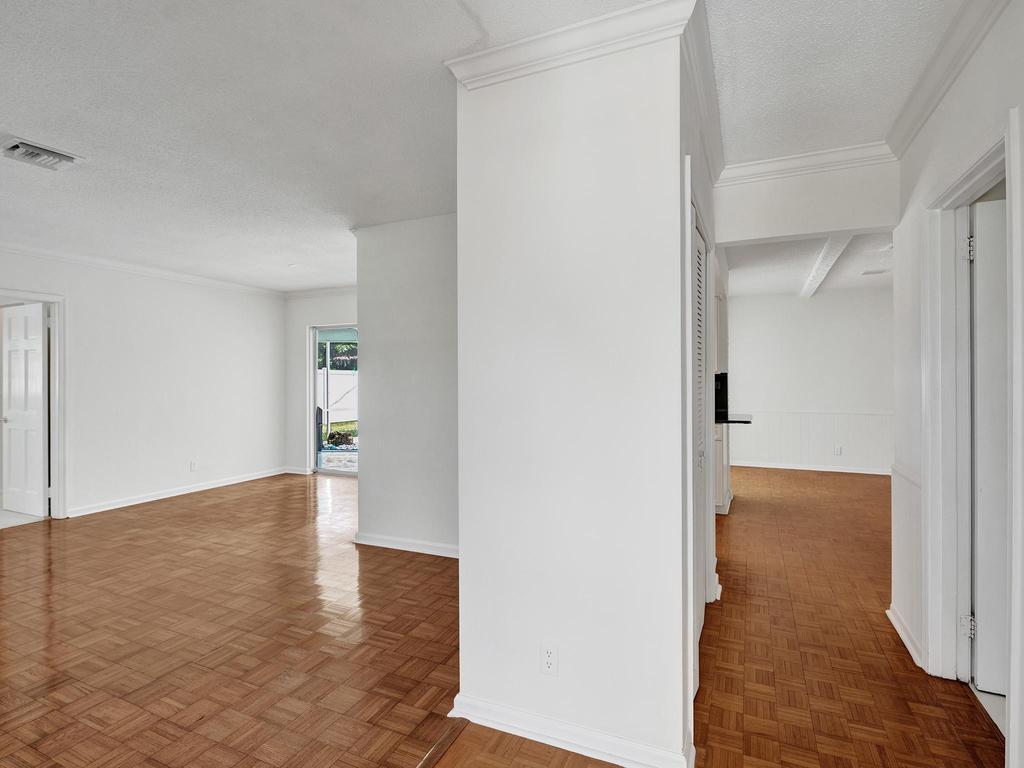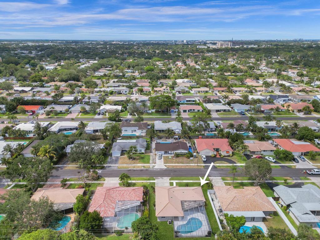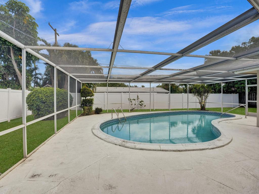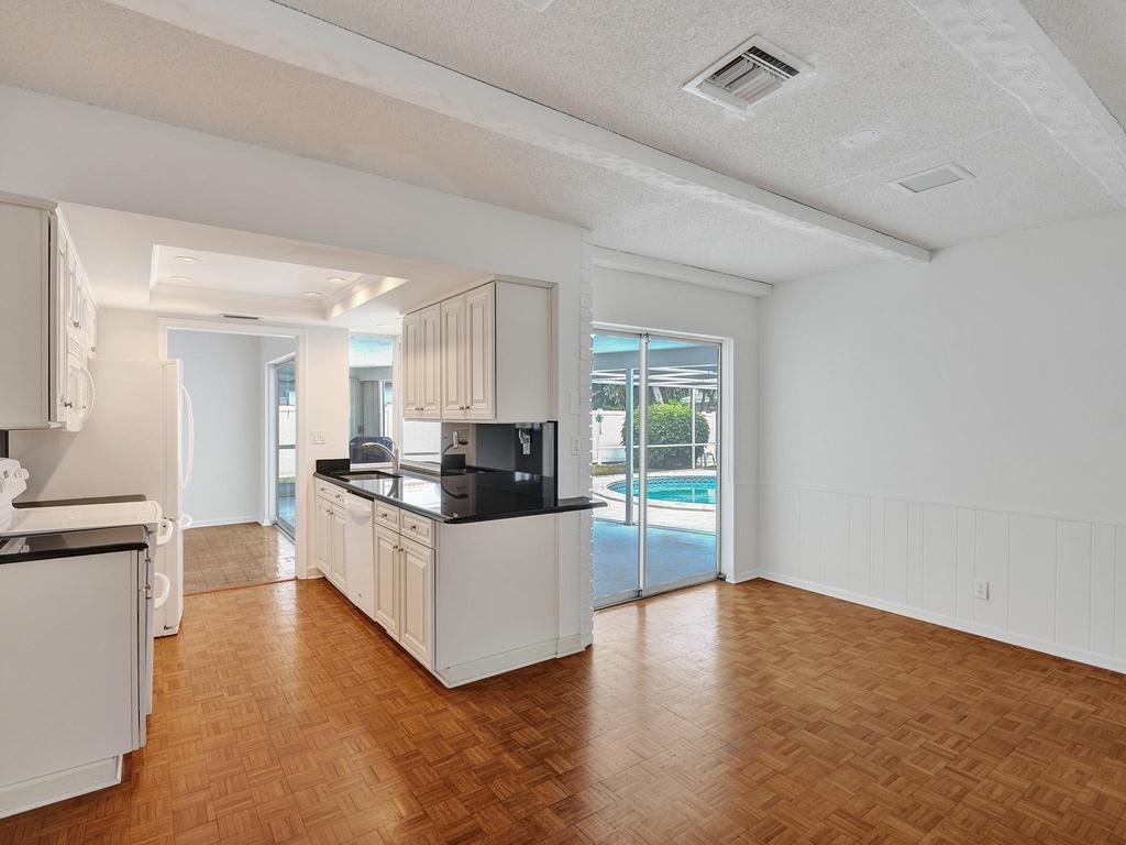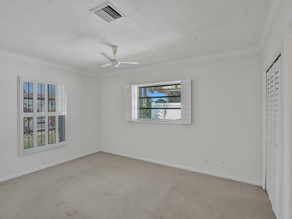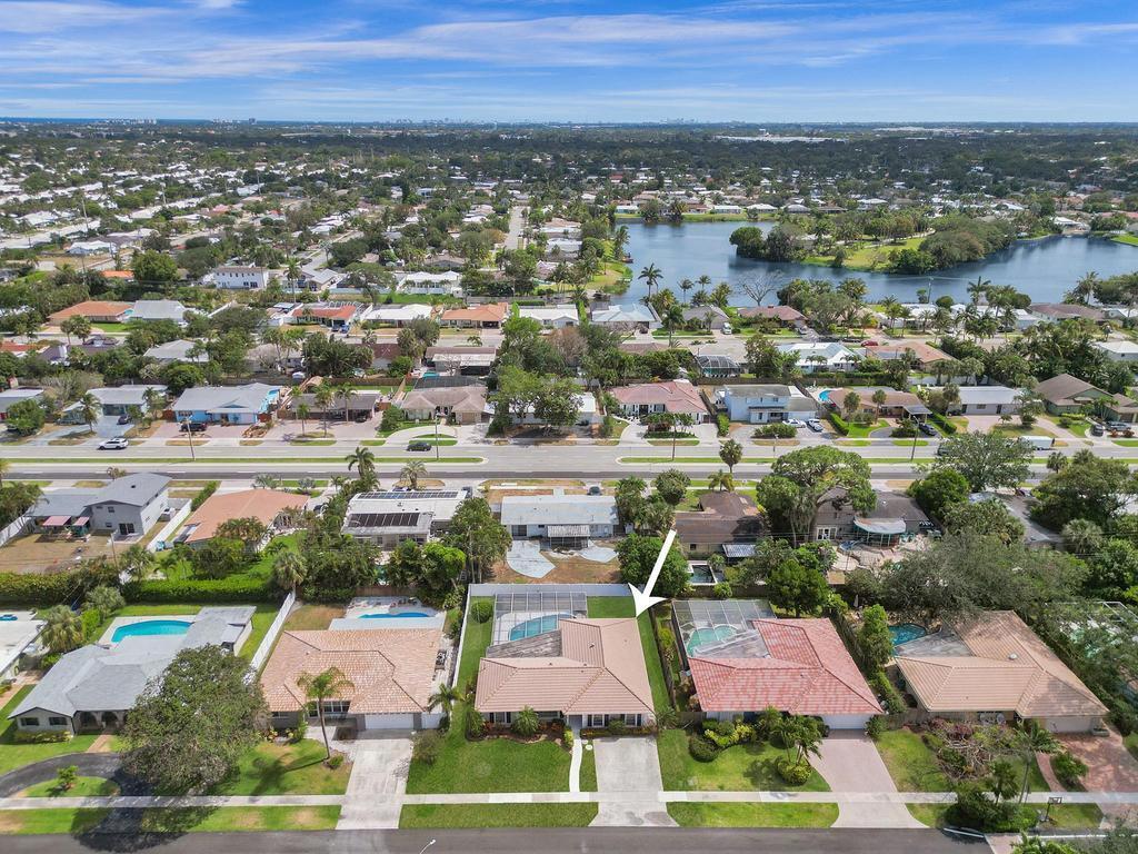 RARE 4-bedroom with large bonus 5th room with closet and windows in the desirable Boca Square neighborhood! Walk to Addison Mizner! A ONE-owner home, this great property was custom built for the family (original plans are available). Parquet wood flooring. Split floorplan with a kitchen that opens to large pool and screened lanai. Plantation shutters. Natural gas line in backyard powers 20 kW standby generator, pool heater, and instant hot water heater which provides low energy bills. 2022 AC package unit. Pool resurfaced 2015; new pool pump. Full hurricane shutters. House was custom built to include 5th bedroom off of laundry/utility area; could easily become a 5/3 with little work. Located on a quiet street, minutes to A-rated schools, beaches, shopping and downtown Boca Raton.