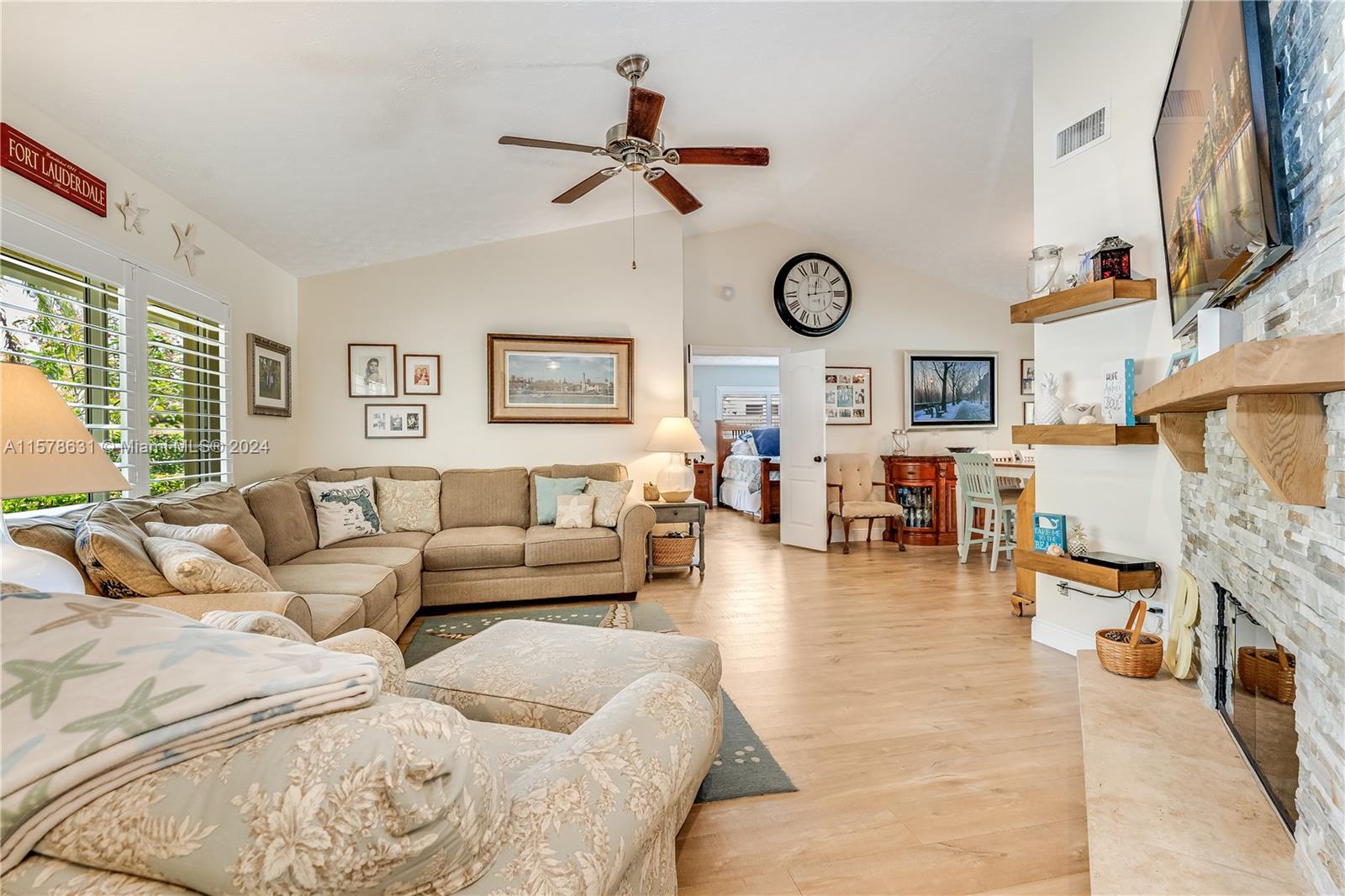 Rarely available in Davie Lake Estates ~ zoned for sought after Pioneer/Cooper City High. This beauty has over $290,000 in upgrades: custom hardwood kitchen with stainless package, 2023 roof, 2018, pool, 2015 impact windows & doors, beautiful vinyl flooring, custom builtins (all closets & garage) Stone wall on fireplace...the list goes ON & ON! Open floor plan with vaulted ceilings & gorgeous views from the many windows & doors. Split bedrooms. Step outside to a true South Florida paradise complete with covered screened patio, sparkling pool AND breathtaking water view. Sit on the dock and fish or enjoy the sunset. HOA only 250/year. Large fenced lot with plenty of room for play, pets & garden. Terrific location off with easy access to both public & private schools, shopping & highways.