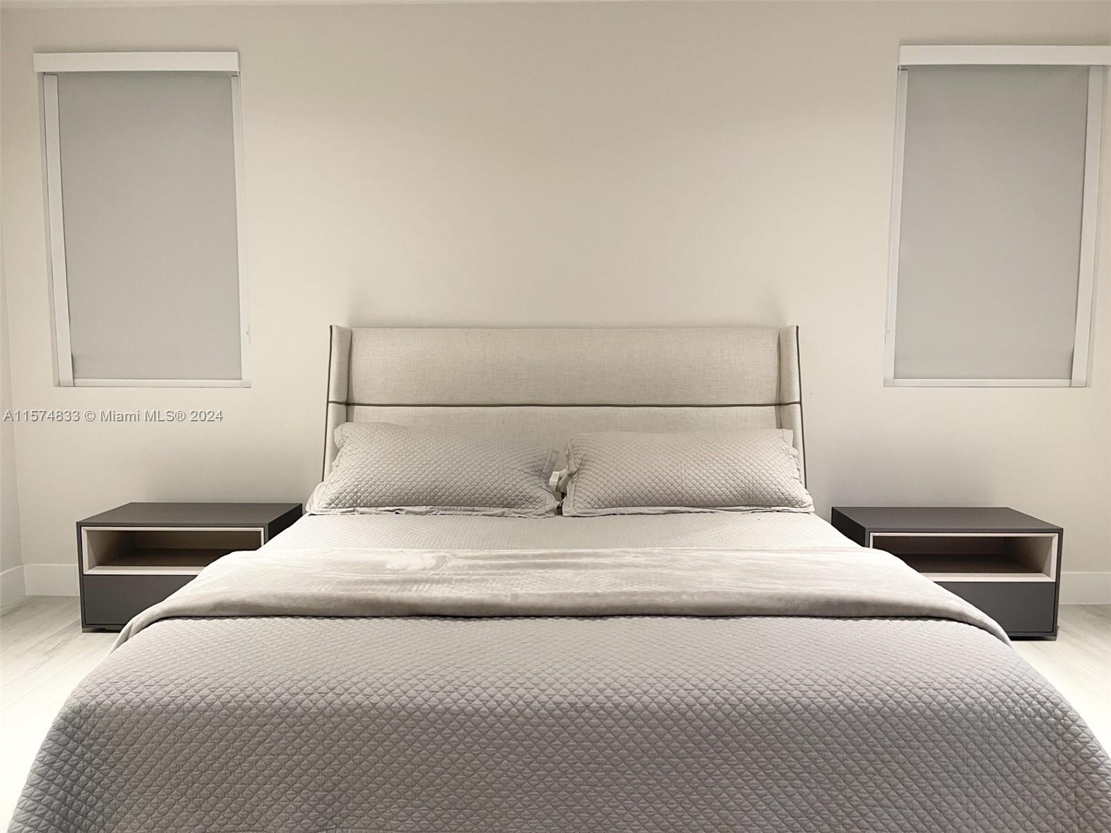 Impeccable Home in Modern 75 at Doral, Ready-to-move, Turnkey, Custom lighting throughout the property, and premium six-zone wireless audio system. Double-height wall finished in top-quality carpentry with an integrated TV wall panel and invisible door. Garage space for 3 cars and 7-in-space parking and driveway. Italian fabric curtains in the main living area with a double-height ceiling. Blinds on all house windows. All bedrooms feature wall panels and built-in Smart TVs. TOM Dixon pendant lamps in the dining room. Furniture from renowned Italian and American brands in all areas. Italian porcelain tile flooring throughout the house, Staircase with glass railings.