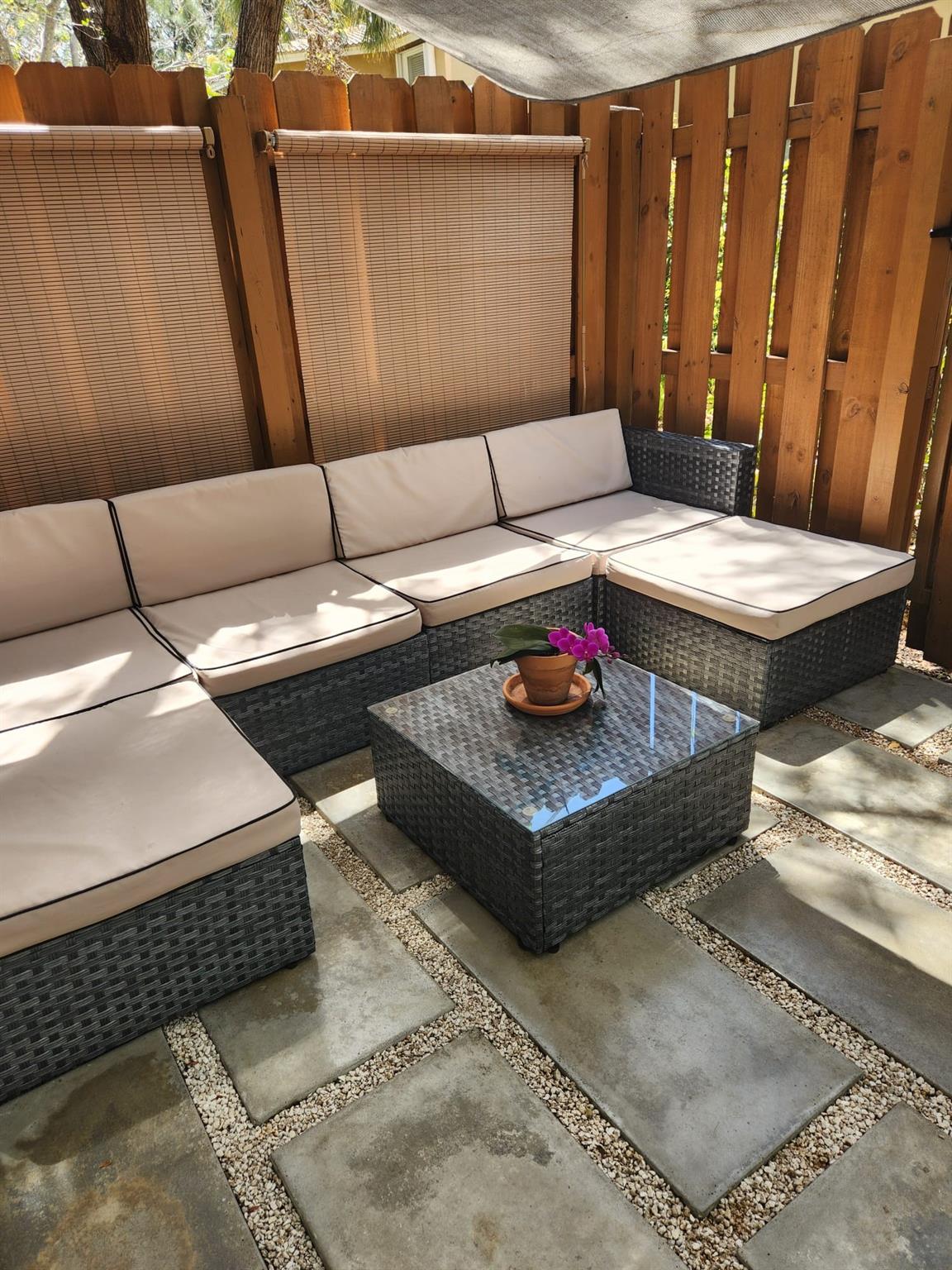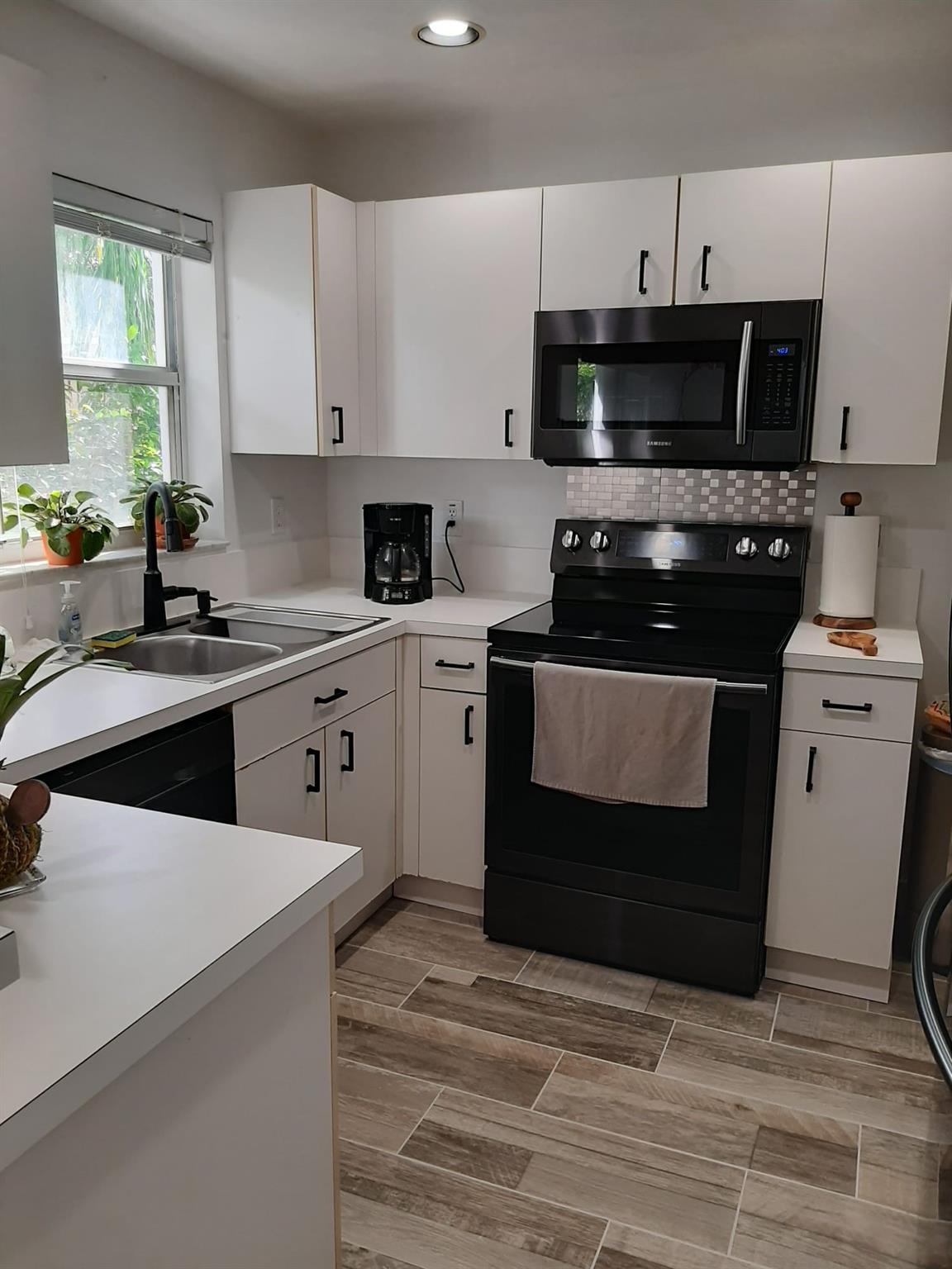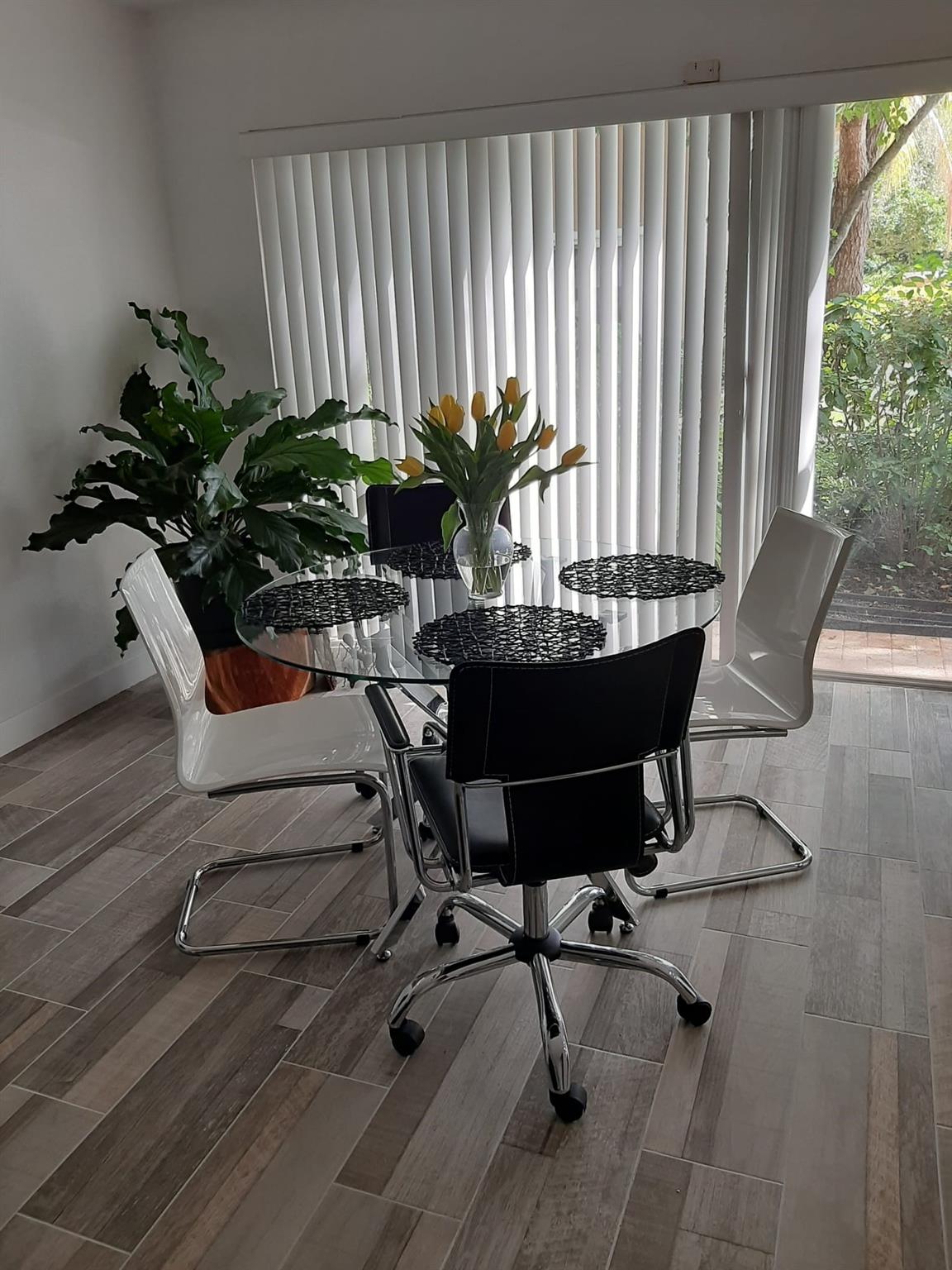 Beautiful, renovated corner unit, new ceramic tile first floor, wood stairs and laminated matching second floor. New A/C replaced in 2023. Widened driveway to fit two cars. Back patio fenced and cement tiled.