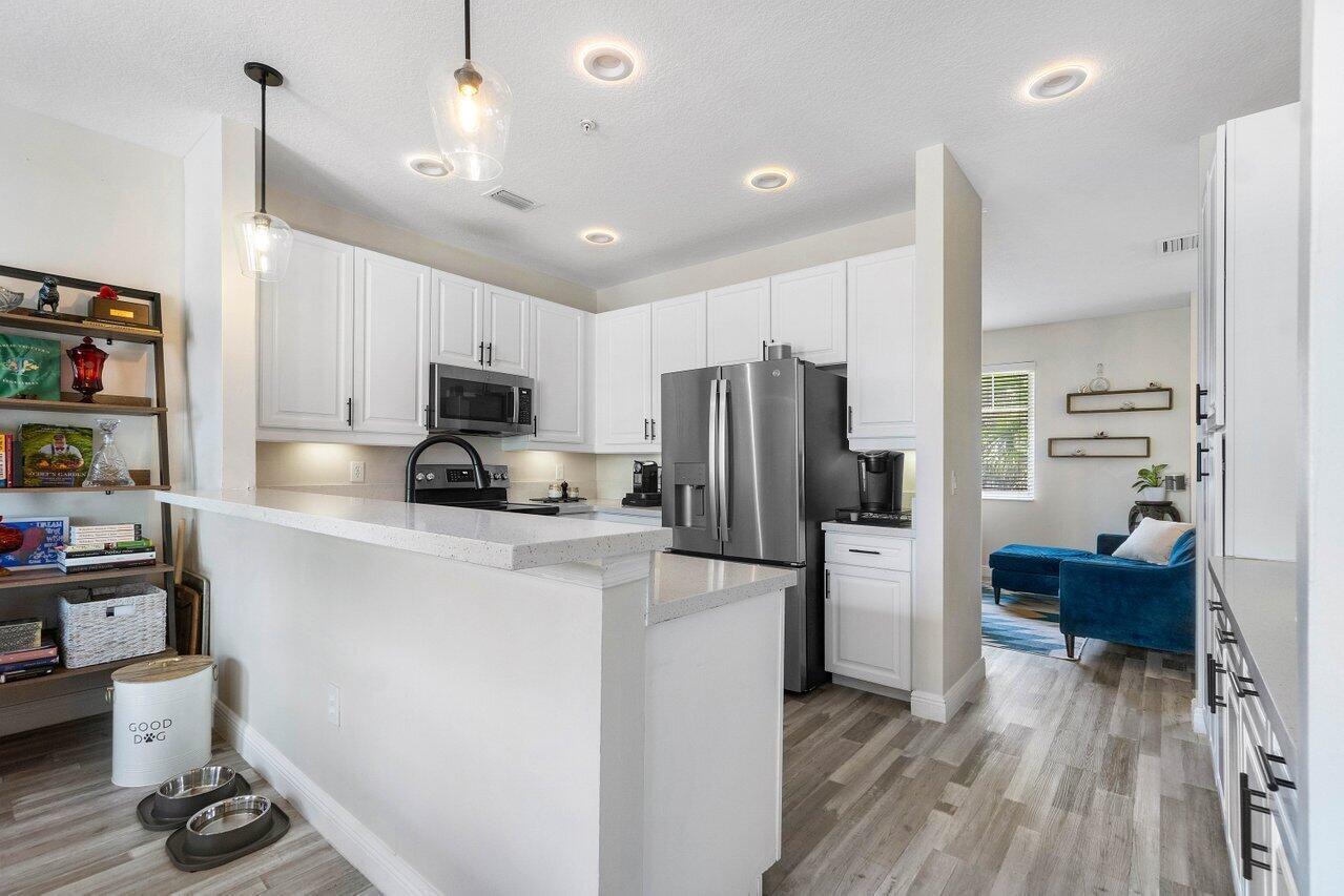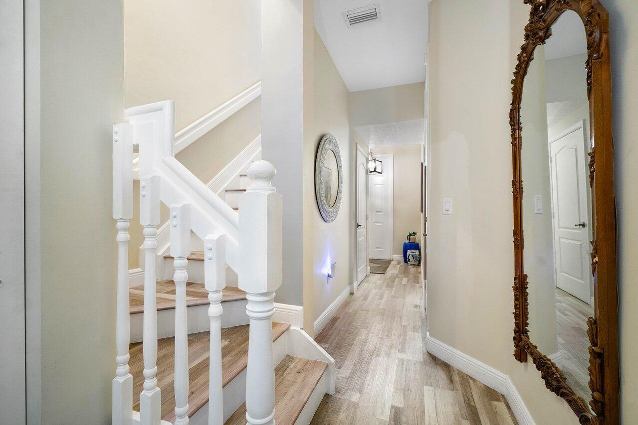 One-of-a-kind and largest unit - Tri-Level Townhome 3-bedroom 3.5 bath 2 car garage middle unit located in one of the most desirable communities in East Boca Raton, 1.25 miles to the beach and 3.1 miles to Mizner Park, downtown Boca Raton. Walking distance to FAU and LYNN University. Property features extra windows with lots of natural lighting newer gourmet kitchen with quartz countertops, Newer appliances and beautiful wood cabinetry, New AC , Beautiful newer flooring throughout. Owner who has kept this home in excellent condition with gorgeous lush landscaping all around! Community offers two heated pools and spa just recently renovated, Fitness center area with peloton bikes, 5 brand new gym equipments,