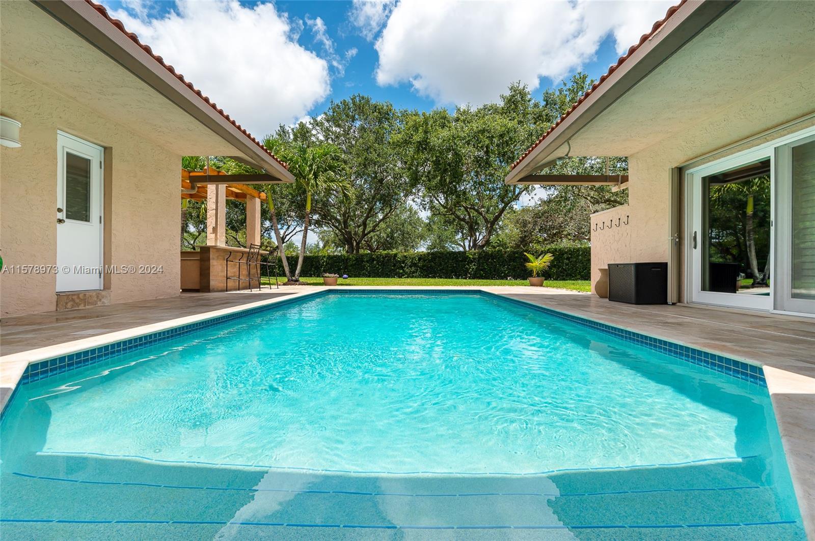 Price just reduced !! Gorgeous 4BR/2.5BA home nestled in Pine Ridge on a spacious 0.47 acre cul-de-sac lot. Enjoy 3058 sq. ft. of luxury living space. This gem boasts a split floor plan with oversized tile flooring, complemented by ceiling fans throughout. Revel in the ambiance of the living room's wood-burning fireplace with stacking stone to the ceiling & granite hearth. Entertain effortlessly w/a wine refrigerator, wet bar, and custom kitchen featuring stainless steel appliances, Corian Countertops solid surface sink, & breakfast bar. Retreat to the master en-suite with his and hers walk-in closets and a lavish bath with travertine shower. Large travertine patio, sparkling large heated pool, and custom outdoor kitchen! Impact windows/doors, hurricane shutters, camera system, & $63 HOA