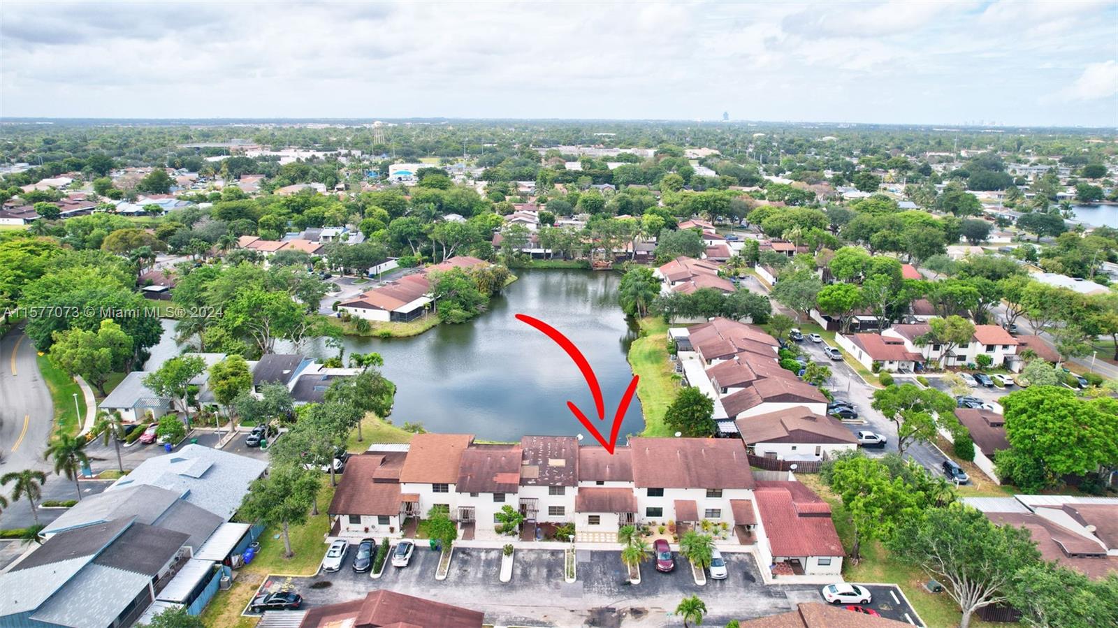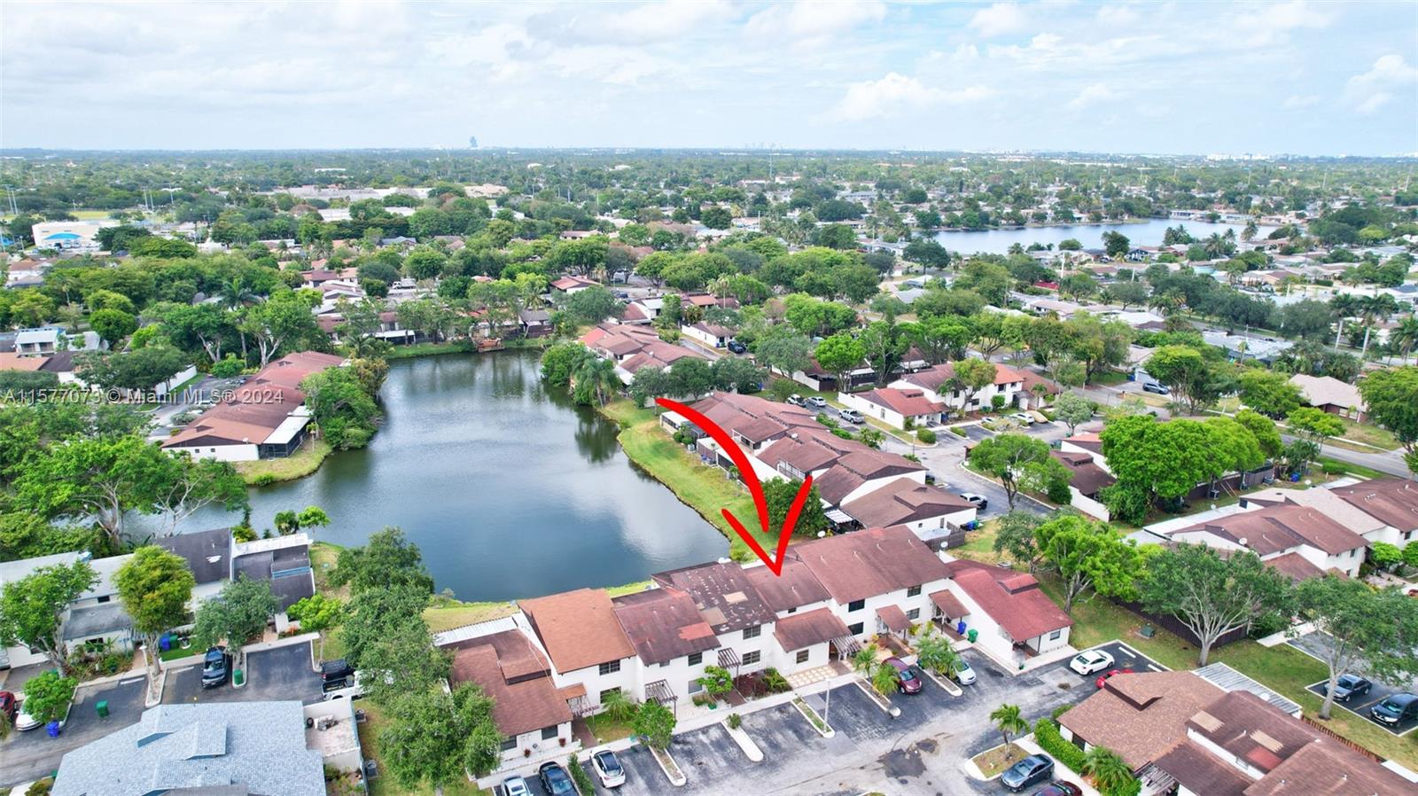Back on Market, family situation stopped the buyer from moving forward. Beautifully maintained 2 bedroom/2 bath townhouse located just minutes from the Hardrock Stadium. The secondary bedroom and bathroom are located on the first floor while the primary bedroom encumbers the entire second floor. Entertain or just enjoy your morning coffee on the large, enclosed patio that overlooks the lake. The kitchen is equipped with upgraded LG stainless steel appliances. 2 reserved parking spots are located directly in front of your unit.