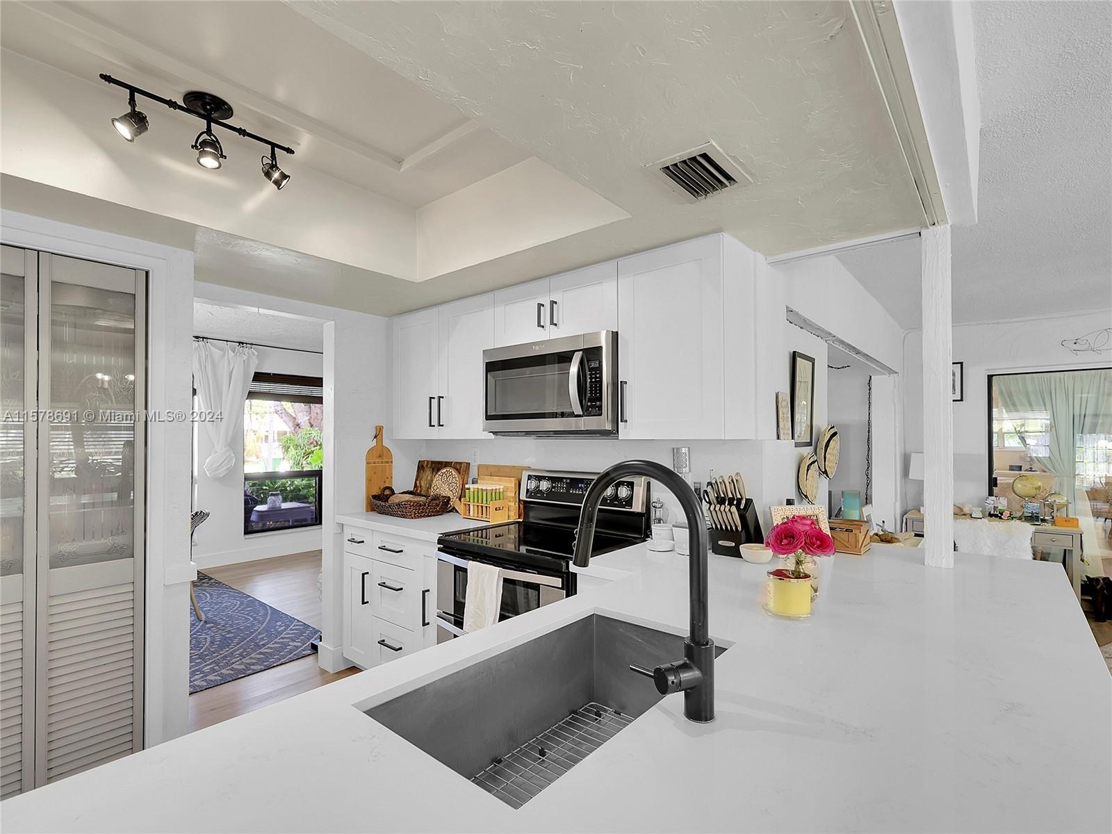 Spacious layout with large living room, dining room, and family room. Backyard is like an oasis with beautiful landscaping and relaxing water view. Separate laundry room and storage. . All bedrooms are a nice size. Metal Roof is 2020, AC 2018, Water heater 2024. White Shaker style cabinets with white quartz counters.