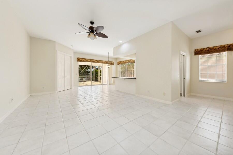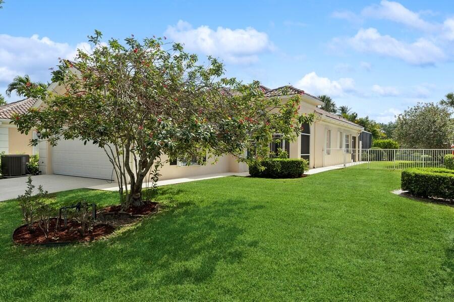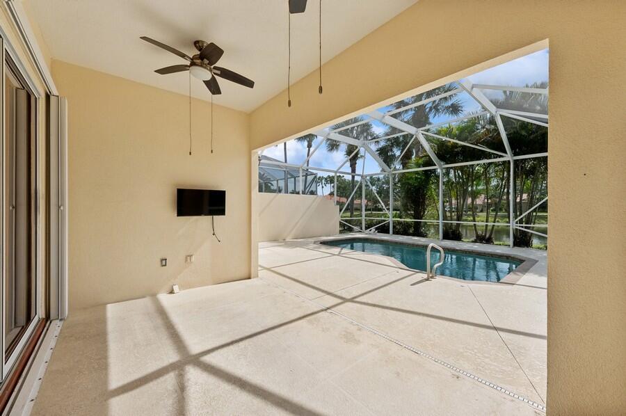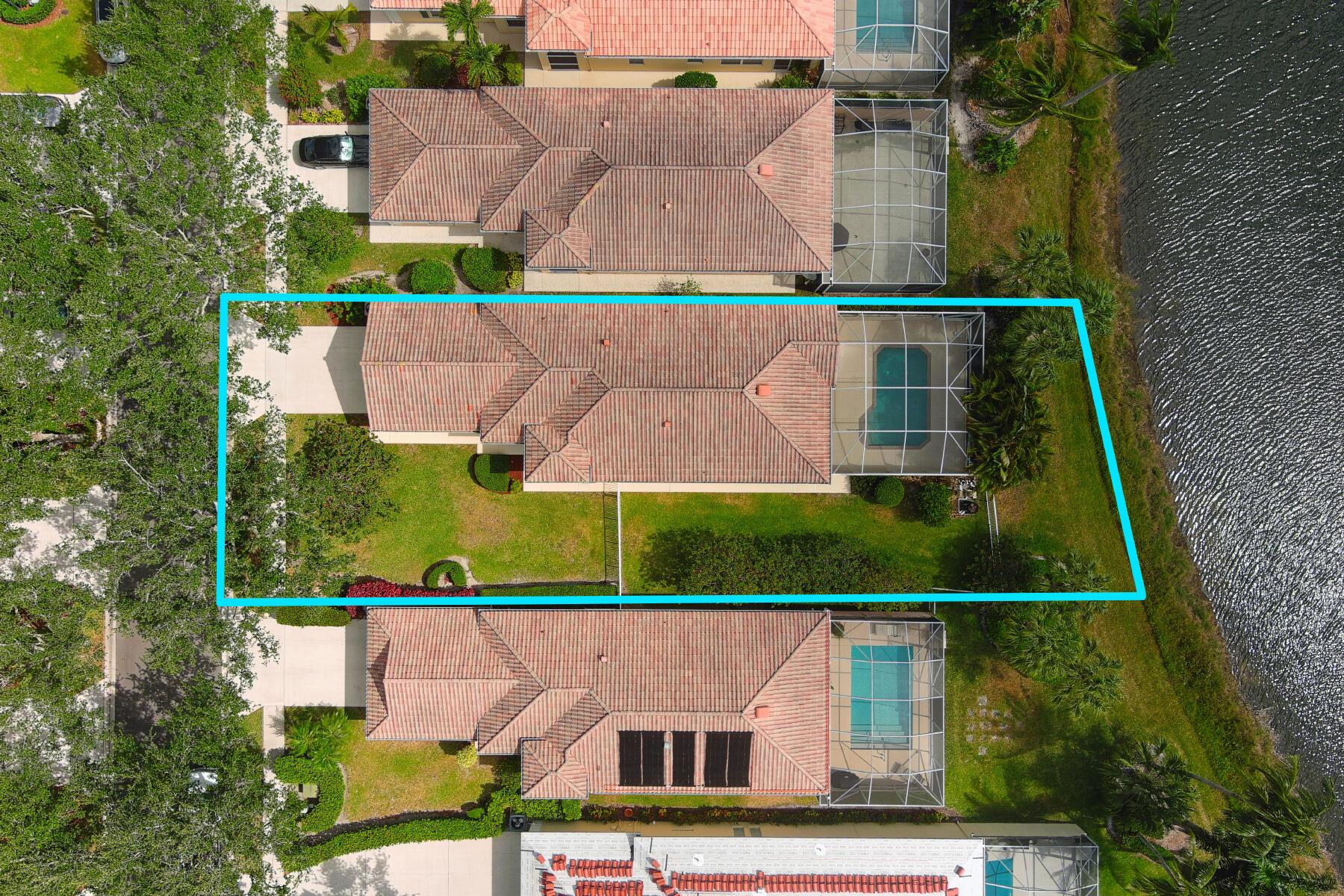 A Rare Opportunity, for One Lucky Buyer, to start with a Blank Canvas & Create a Home that can reflect their Own Personal Taste & Yet have the Foundation be this 3 Bedroom 2 Bath Glenwood Model with a Screened Cage having a Custom Heated Swimming Pool on an Extra Wide Fenced Lakefront Lot (close to 1.5 Times the Normal Size Lot)with Panoramic Views, On a Breathtaking Lakeside Parcel with Unobstructed Views of a Cul de Sac, Common Green Space that borders the Opposite Shoreline; directly behind the Lush Yard, Plus Views, of the Adjoining Lakes with Pedestrian Walkways & Bridges, that go on Forever! There isn't any other home In Riverwalk with these View! The Excitement begins with a Tropically Planted Extra Wide, Broad Lush Lawn leading to an Inviting Screened Entry with a Decorative