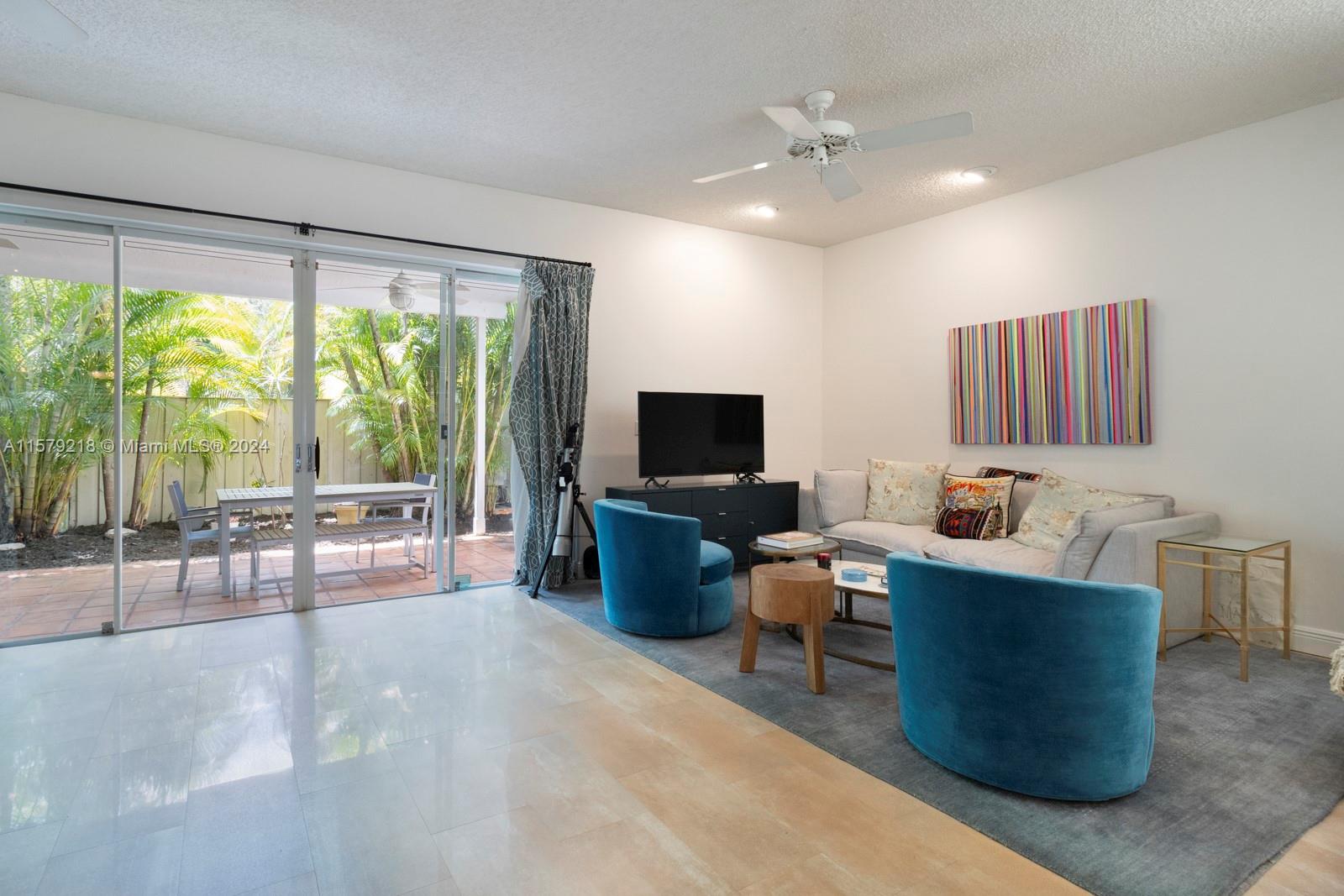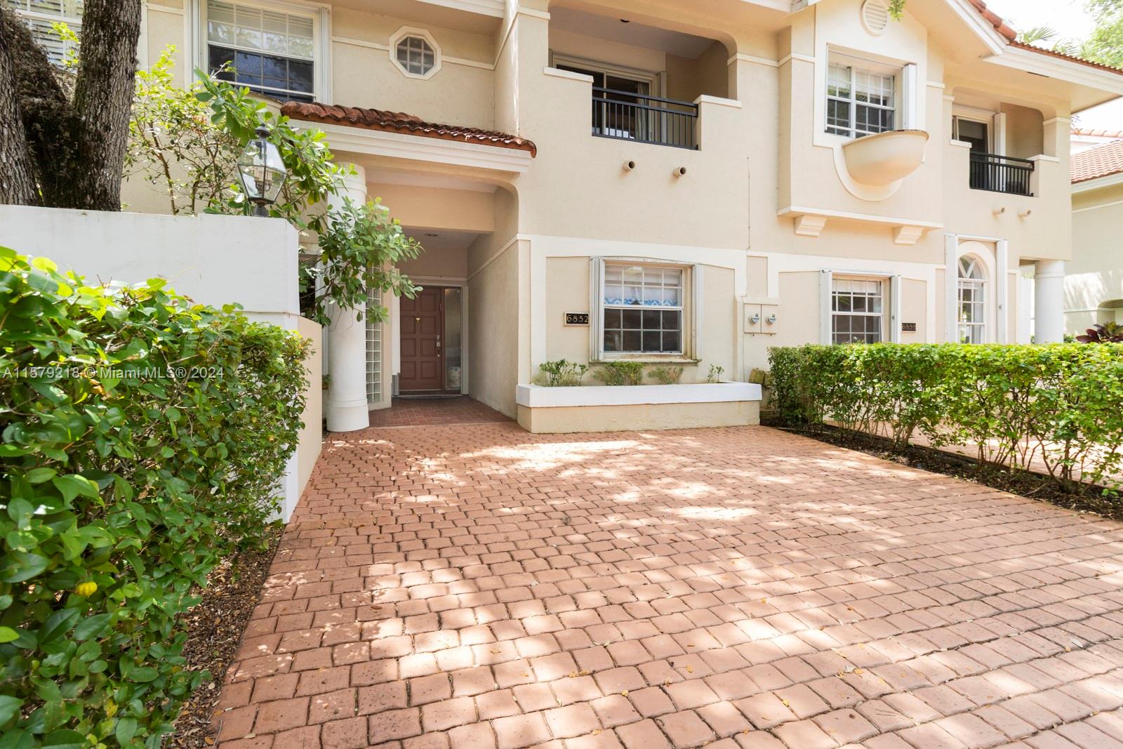 Rarely available unit with the desirable south facing patio/quiet side in Pinecrest's "Sutton Place," a community of only 28 town homes in Pinecrest school district and an easy walk to the Metrorail. 3 upstairs bedrooms, high ceilings, skylight, large updated eat-in kitchen, open living space, porcelain and carpet floors, lovely open and large private patio. Fully gated and secure community with a pool, tennis court, and guest parking.
