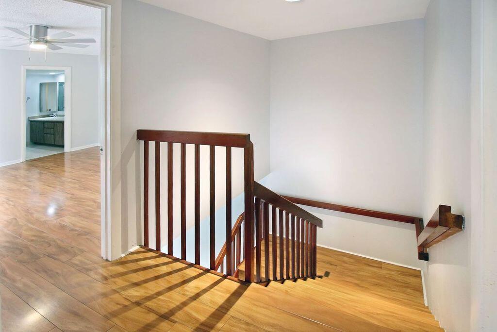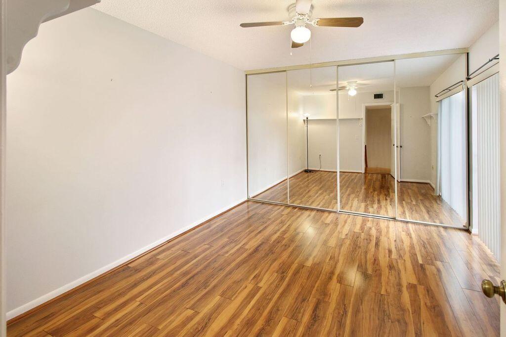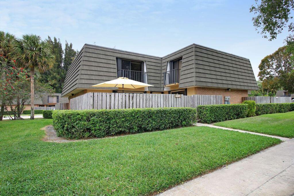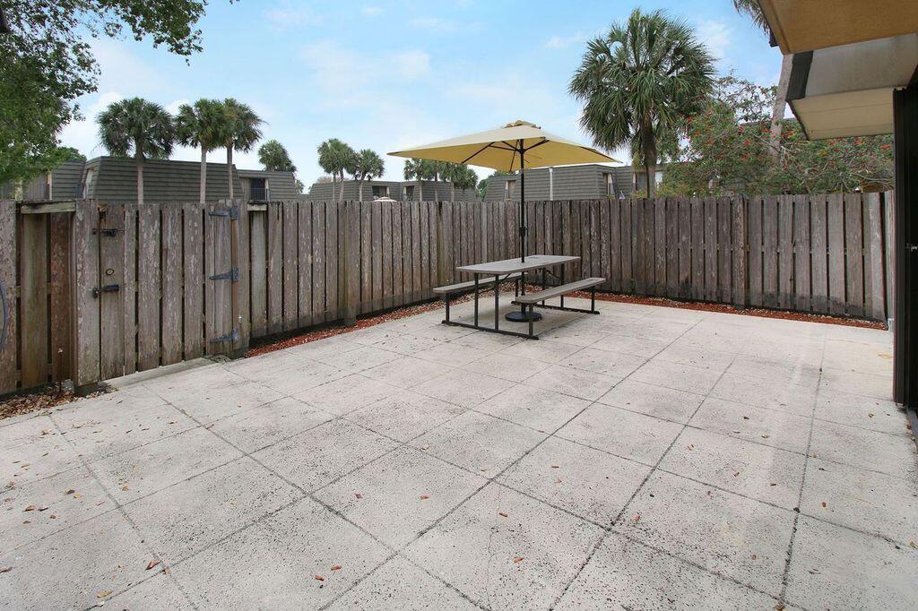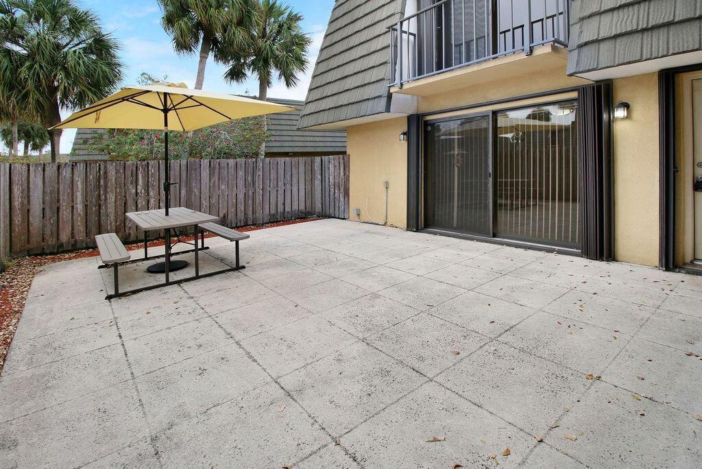 Desirable Sandalwood townhouse with large fenced front patio & spacious floorplan. In the well-known ''Villages'' area of West Palm, you are centrally located for commuting routes, beaches, shopping, dining & the booming/evolving downtown district. The floorplan has 2 master bedrooms upstairs with their own balconies and a spacious living/great room with sliders to the patio and kitchen overlooking a dining area with a 1st fl. 1/2 bath & laundry room & deep storage closet. Upgrades include a brand new high-end Lenox AC, accordian hurricane shutters, wood flooring on staircase and in bedrooms, new washer/dryer & microwave & ceiling fans and a recent model dishwasher. Water, basic cable & exterior bldg. insurance included in HOA fees. Community has a pool/tennis courts & playground.
