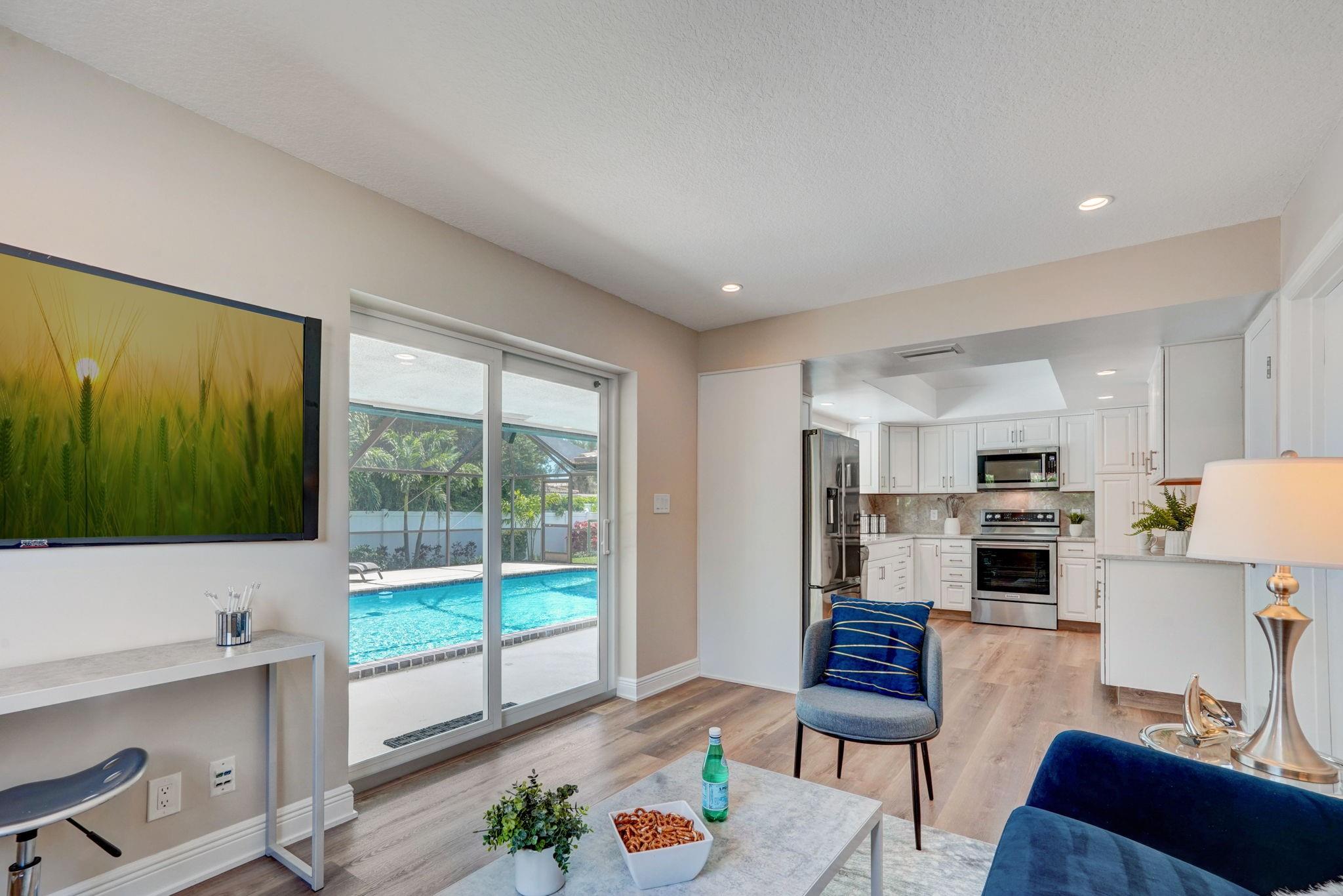 High Ridge cul-de-sac location. Safe & relaxed living. X Flood Zone! Home sits high. Wonderful floor plan w/updates T/O. Entertain effortlessly in your large living room, formal dining room, fully updated flooring, new kitchen(quartzite tops, New S.S appliances & solid wood cabinets). Enjoy your bonus TV room or office! Enhanced security with high grade JVR IMPACT windows & doors T/O. The primary suite offers sliders to the pool & walk-in closet of generous size. Full sized 2-car garage, new water heater. Outside, relax in your updated pool 2020, huge covered patio w/pass through to the kitchen w/bar seating. New PVC Fence, 10 yrs of roof life remains, 2015 Trane AC &, updated electric. All new infrastructure T/O the city, entertainment, white sand beaches, dining, water sports, etc.
