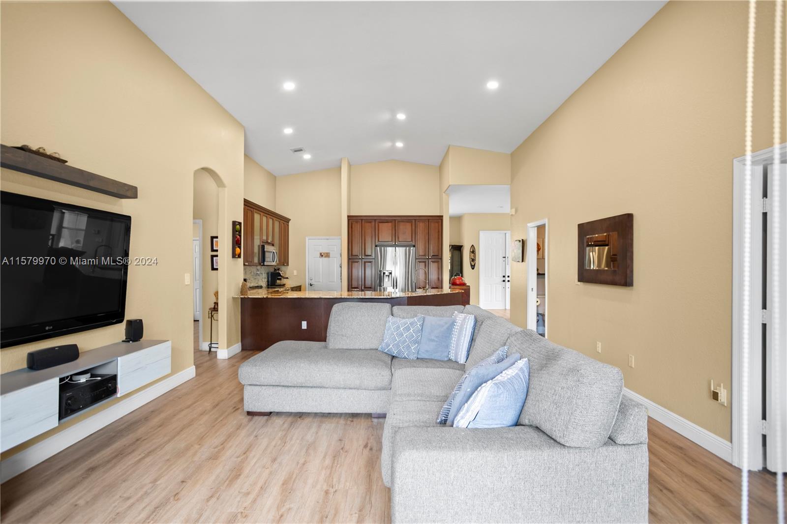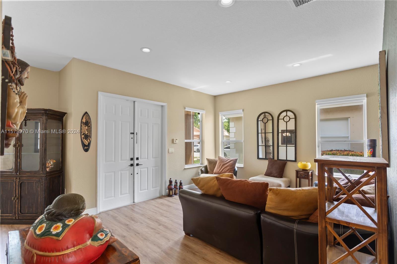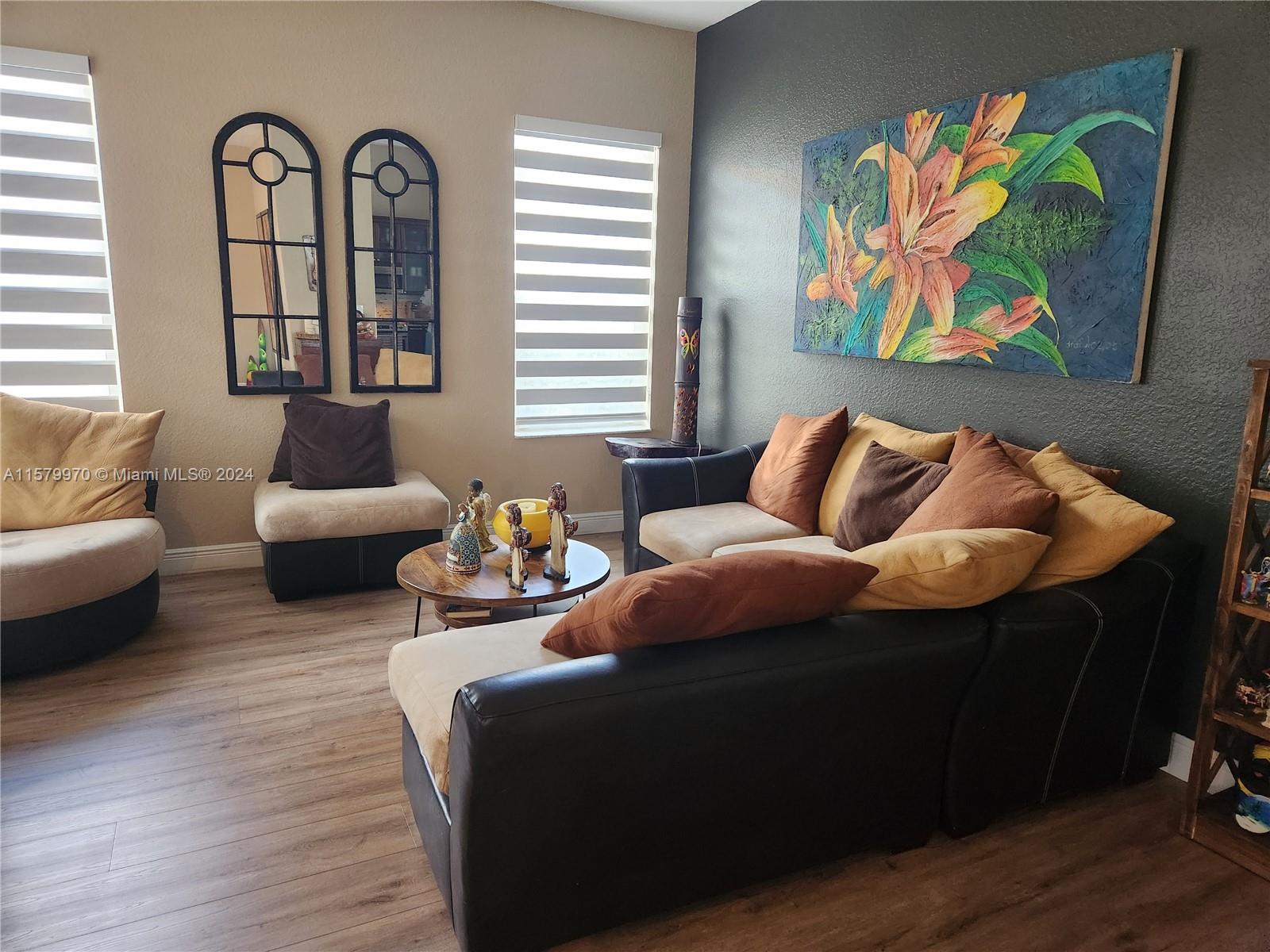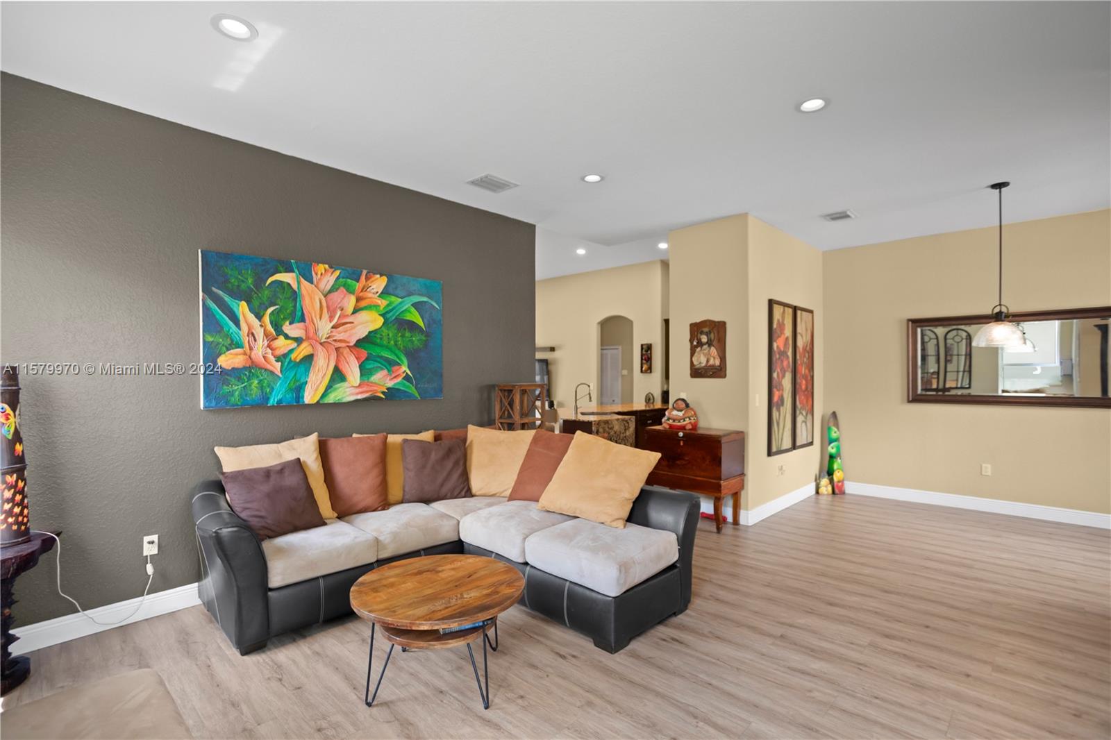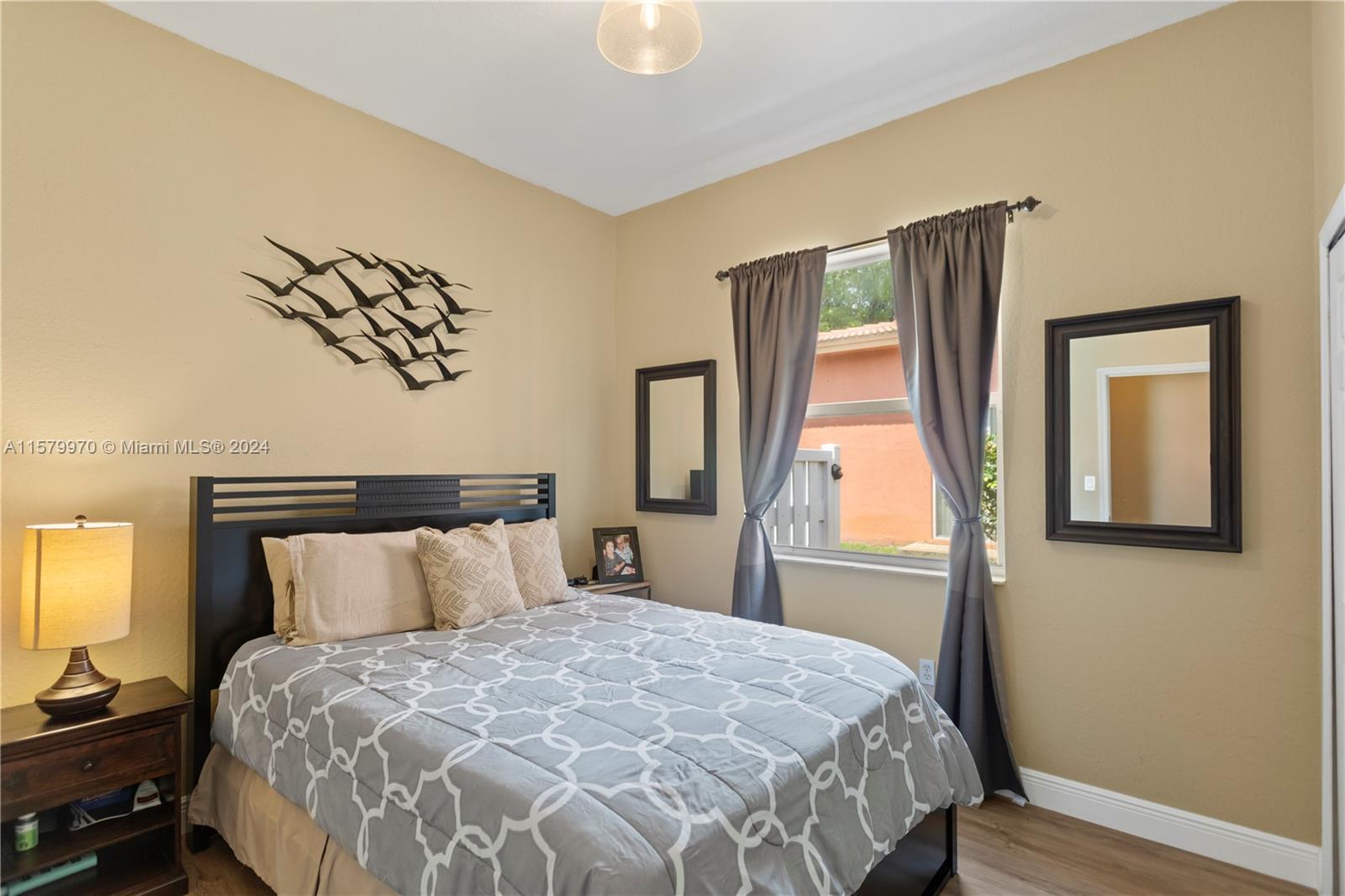 Just bring a toothbrush-move right into this 1 story home in gated community. Open, spacious & completely renovated. Beautiful flooring throughout, gourmet kitchen w/wood cabinets, cabinet pull outs, waterfall countertop & newer stainless appliances- formal living & dining rm & sep large fam room which is great for entertaining. Owners suite w/double closets w/built ins & beautifully upgraded en-suite bath complete w/double sinks, shower & soaking tub. Other home features tankless H2O heater, newer AC, zebra & blackout window treatments, & complete hurricane protection. Enjoy relaxing outside on oversized patio & fully fenced yard w/Avocado tree. Circular paver driveway for extra parking. Gated community, walk to elem school in community, close to shopping and major roads (I-75 & turnpike)