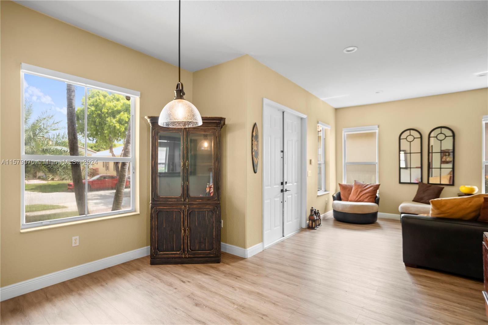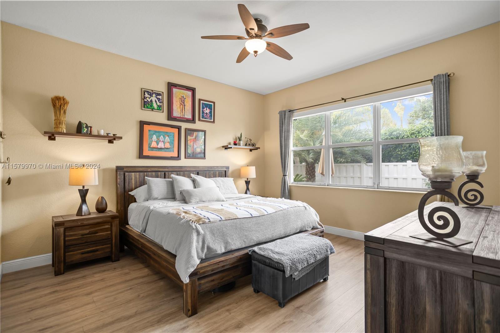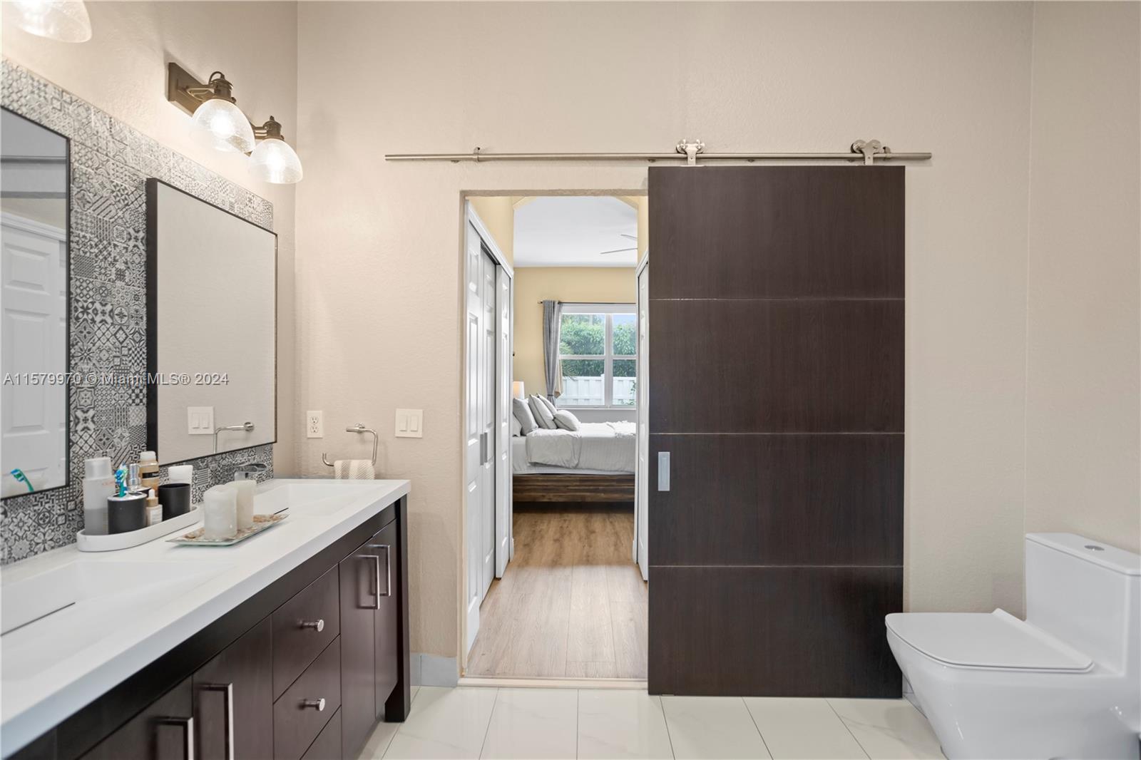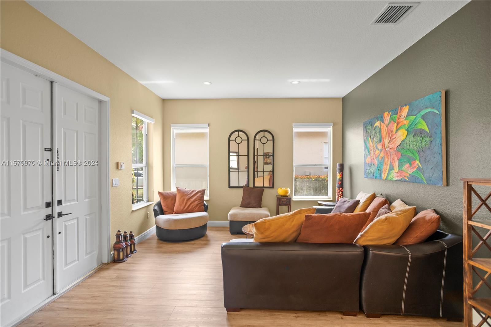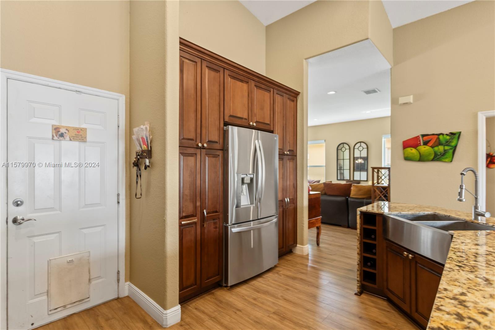 Just bring a toothbrush-move right into this 1 story home in gated community. Open, spacious & completely renovated. Beautiful flooring throughout, gourmet kitchen w/wood cabinets, cabinet pull outs, waterfall countertop & newer stainless appliances- formal living & dining rm & sep large fam room which is great for entertaining. Owners suite w/double closets w/built ins & beautifully upgraded en-suite bath complete w/double sinks, shower & soaking tub. Other home features tankless H2O heater, newer AC, zebra & blackout window treatments, & complete hurricane protection. Enjoy relaxing outside on oversized patio & fully fenced yard w/Avocado tree. Circular paver driveway for extra parking. Gated community, walk to elem school in community, close to shopping and major roads (I-75 & turnpike)