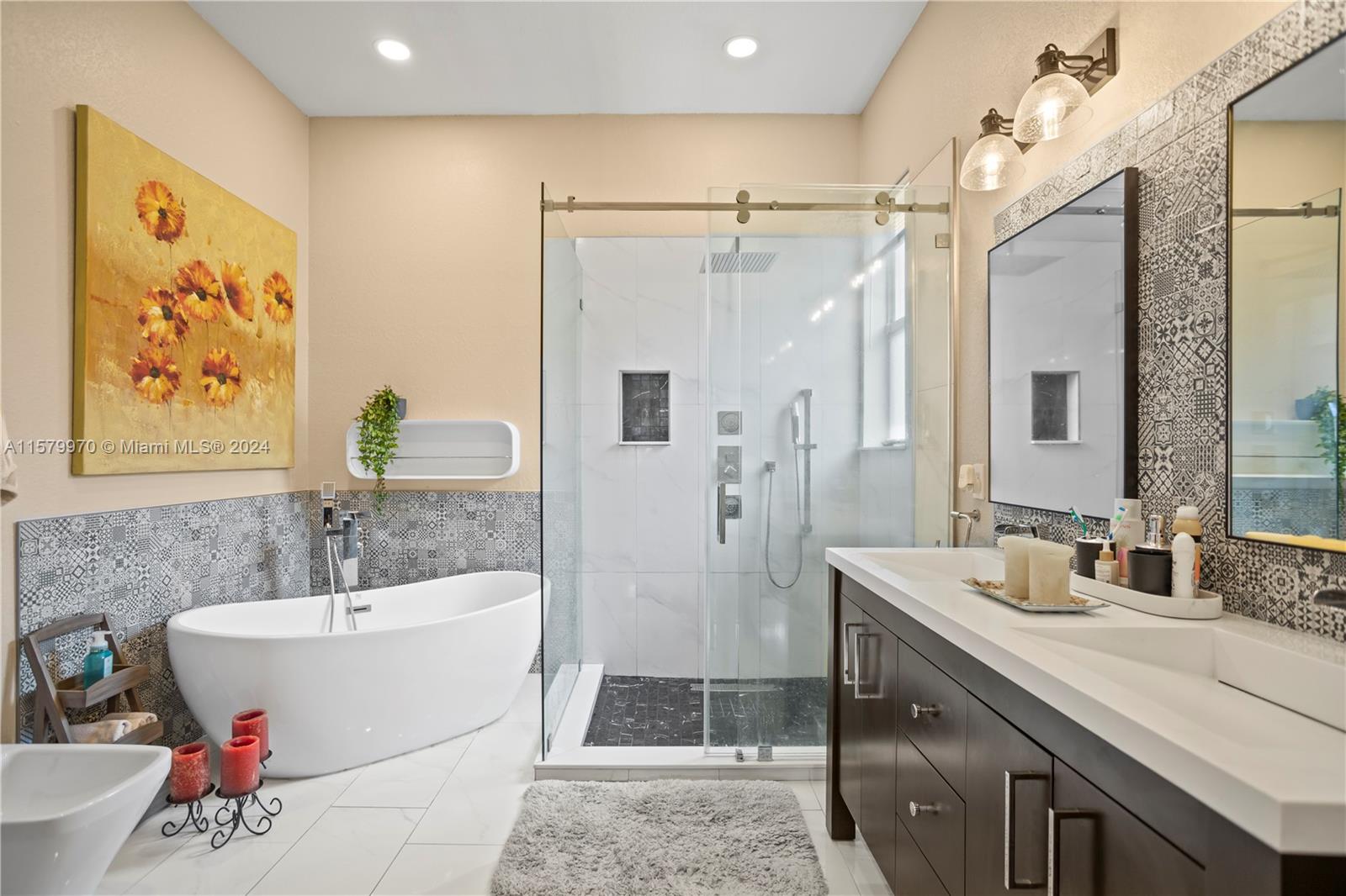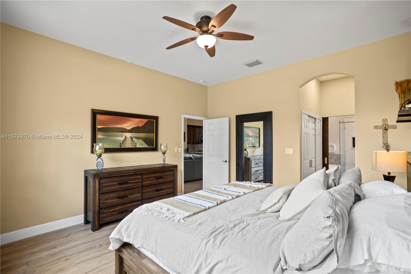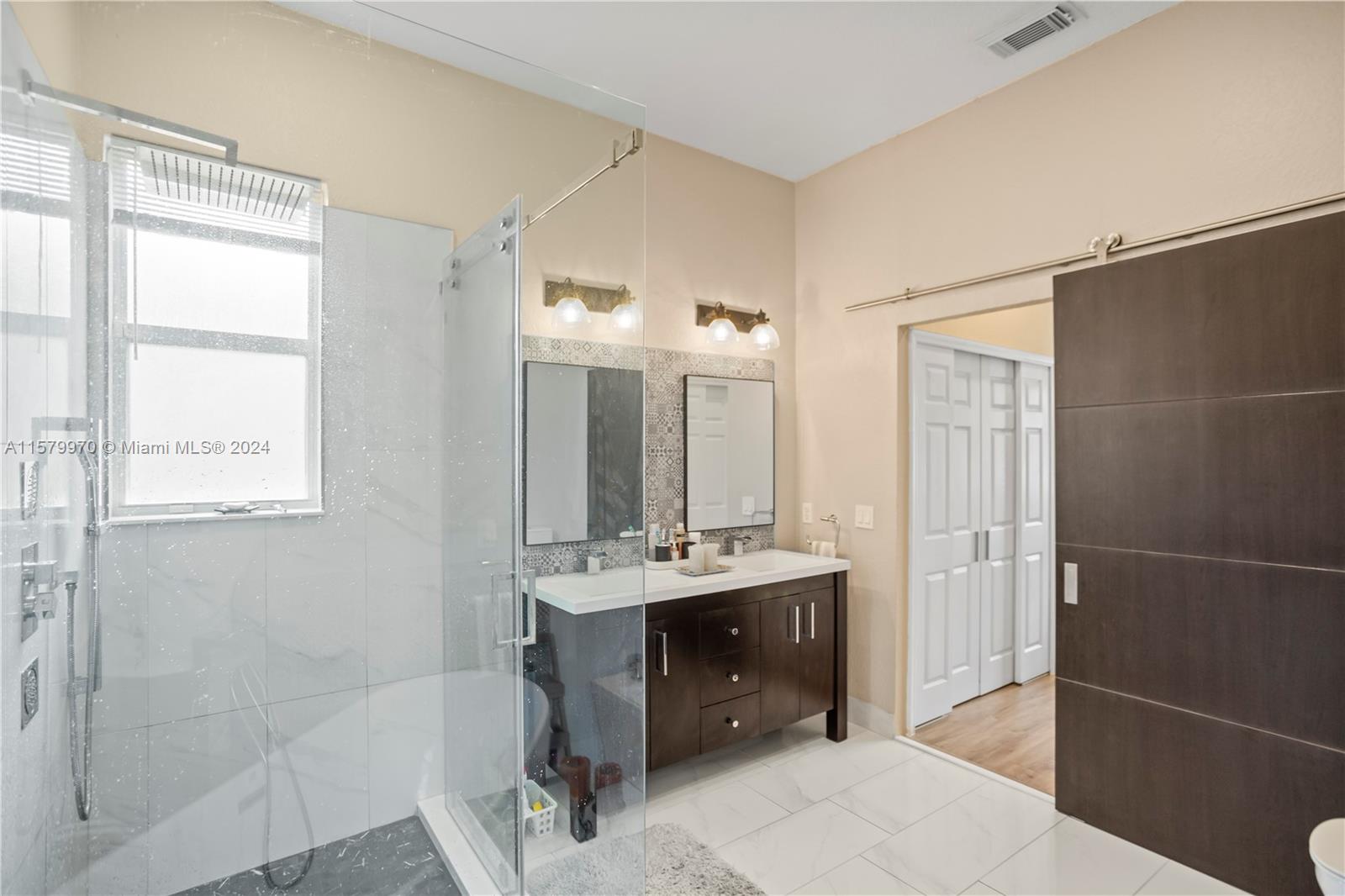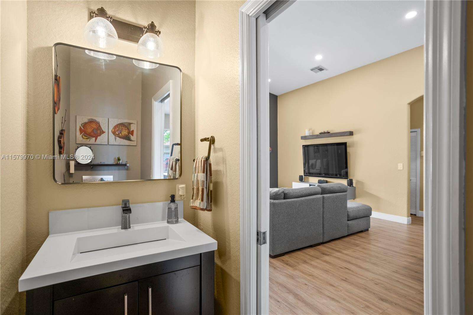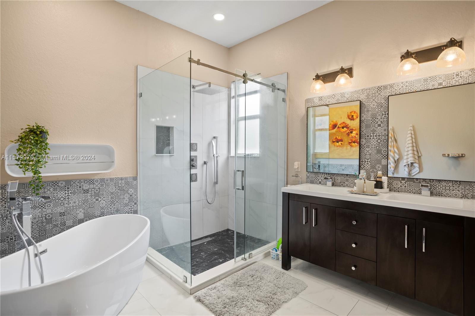 Just bring a toothbrush-move right into this 1 story home in gated community. Open, spacious & completely renovated. Beautiful flooring throughout, gourmet kitchen w/wood cabinets, cabinet pull outs, waterfall countertop & newer stainless appliances- formal living & dining rm & sep large fam room which is great for entertaining. Owners suite w/double closets w/built ins & beautifully upgraded en-suite bath complete w/double sinks, shower & soaking tub. Other home features tankless H2O heater, newer AC, zebra & blackout window treatments, & complete hurricane protection. Enjoy relaxing outside on oversized patio & fully fenced yard w/Avocado tree. Circular paver driveway for extra parking. Gated community, walk to elem school in community, close to shopping and major roads (I-75 & turnpike)