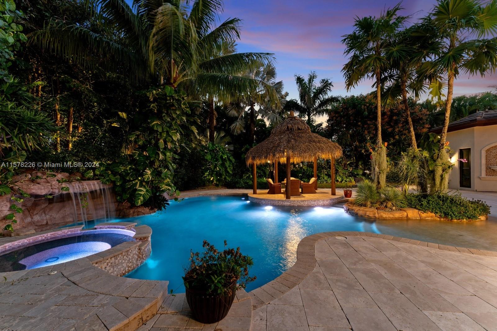 AWARD-WINNING ARCHITECTURE! CUSTOM RESORT-STYLE POOL**STUNNING GARDENS**BASKETBALL & VOLLEYBALL COURTS**DETACHED 2/2 GUEST HOUSE. This exquisite one-of-a-kind near-acre gated estate boasts exceptional finishes throughout. The open floor plan of the 6bed/6bath magnificent transitional main residence includes a library, 2 family rooms, wine pantry, wet bar adjacent to a spectacular game room, spacious home gym, fireplace, whole house generator, outdoor cameras, & integrated sound & network systems. Expertly landscaped grounds grace a resort pool with 2 waterfalls & expansive covered patio with fireplace & summer kitchen. This masterpiece is a private oasis of elegance & comfort awaiting a discerning new owner who demands only the best & appreciates the extraordinary! Buyer’s Broker Welcome