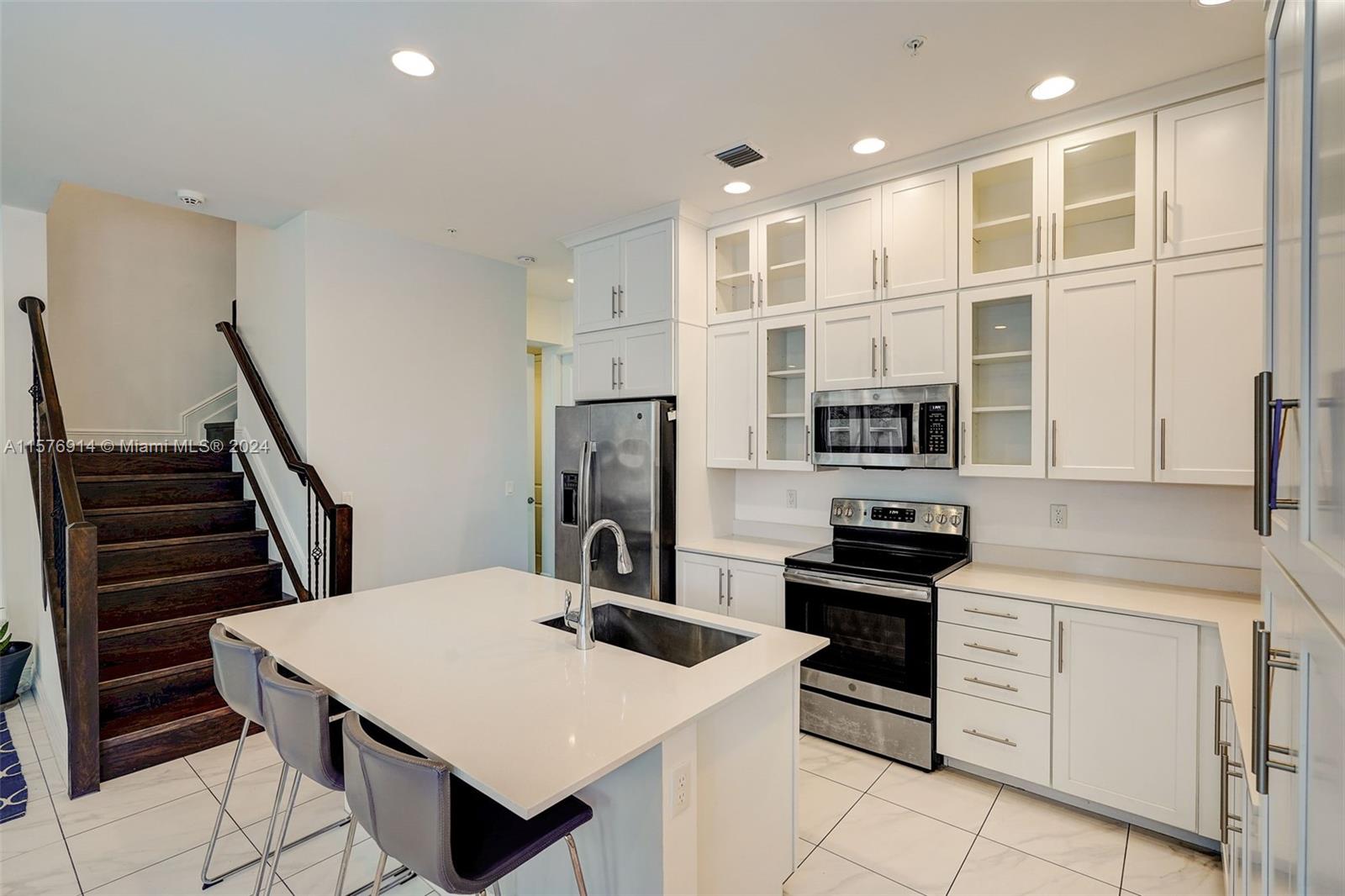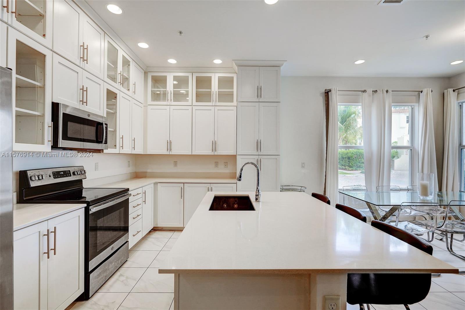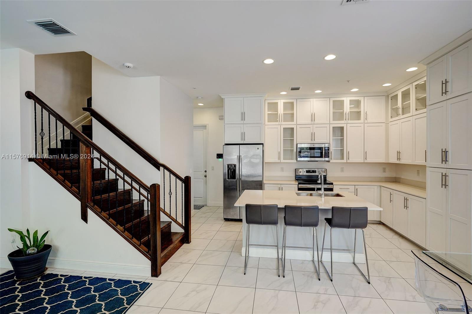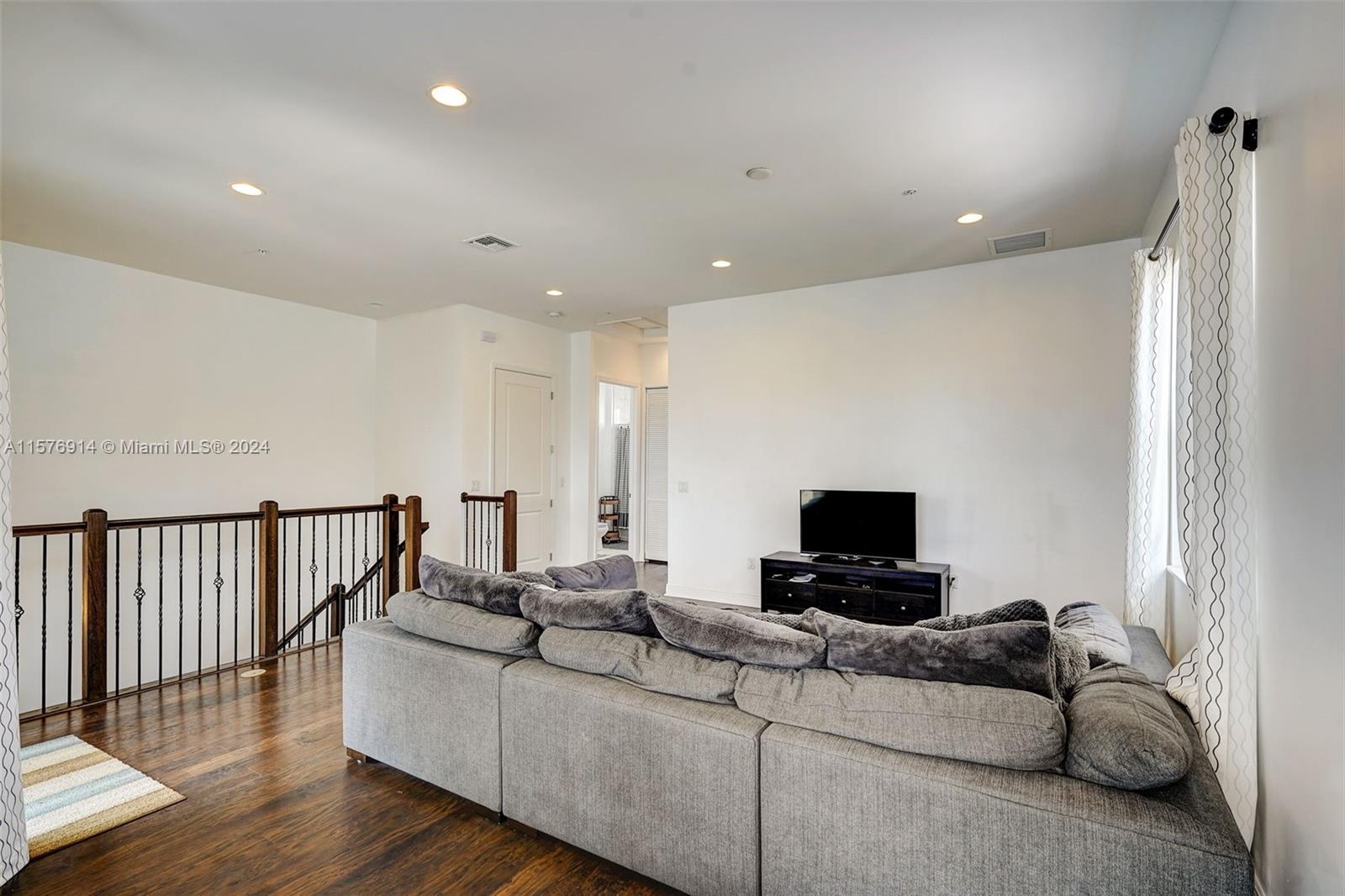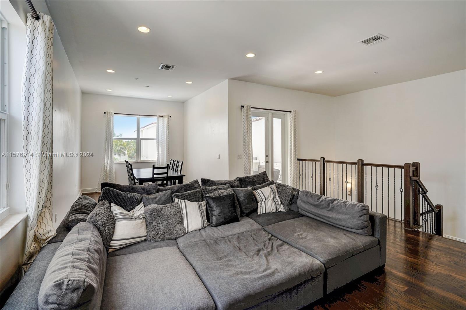 Stunning 3 story corner townhome in the gated community of Centra Falls West. Built in 2018, you will have peace of mind as it feels like brand new! The interior of this home features porcelain tile flooring, hardwood floors & upgraded stair railings. The gourmet kitchen is complete w/upgraded kitchen cabinetry, quartz countertops, decorative backsplash, ss appliances, and large eat in island. The second level of this you have the laundry room, 2 secondary bedrooms & large primary suite w/private balcony, walk-in closet. The 3rd level features another bedroom, second living room, and dining area, and a large terrace with summer kitchen perfect for entertaining. On each level there is a large closet for plenty of storage. Townhome is directly across from the community pool and gym.