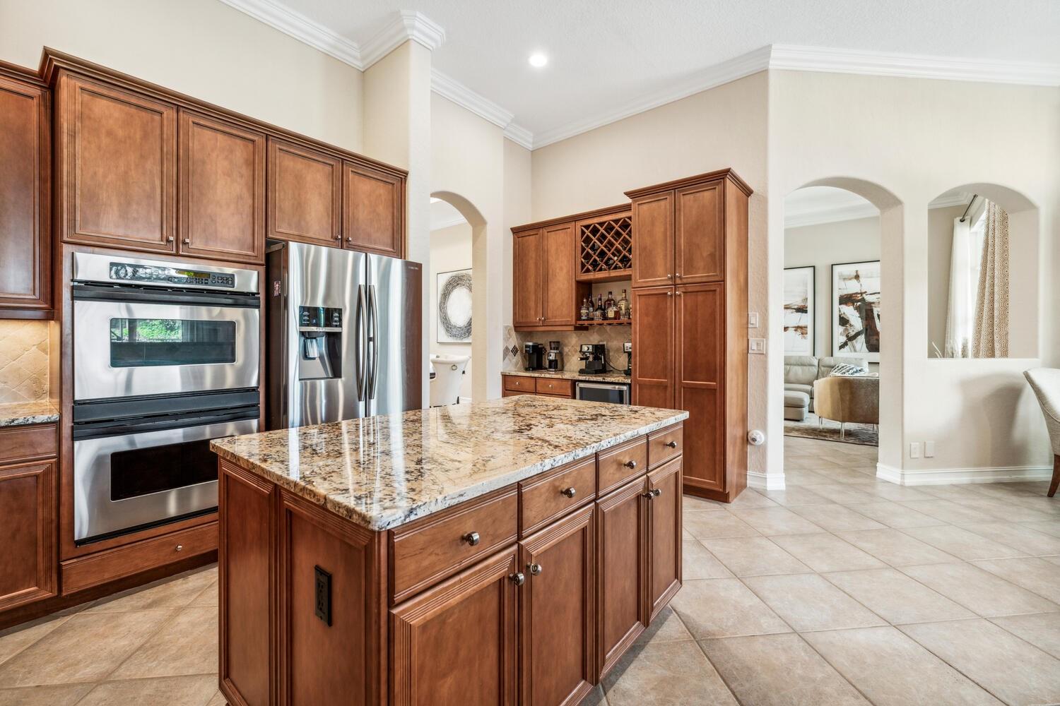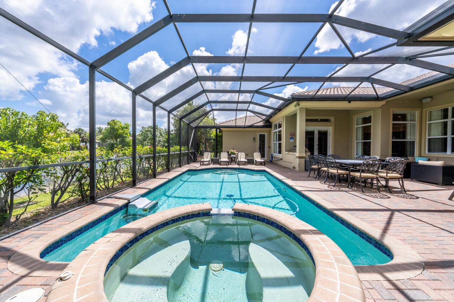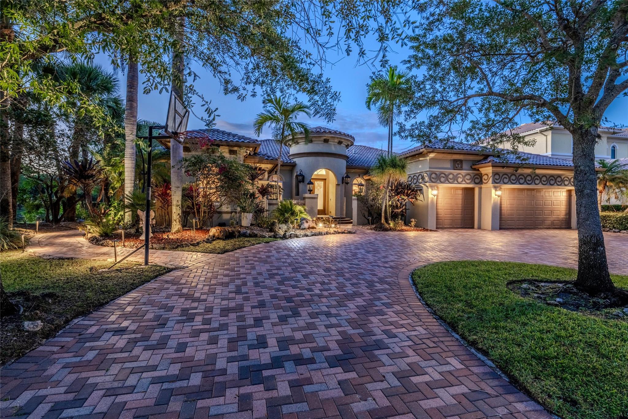 The circular driveway, exquisite elevation & beautiful landscaping only begin to define the outstanding features of this stunning home! Desirable features incl: triple split plan; impact windows & doors; volume ceilings w/crown molding; amazing chef's kitchen w/custom cabinets, pantry closet, natural gas cooktop (also gas hot H2O heater & outdoor grill), granite counters & breakfast bar, built-in s-steel appliances, & breakfast area overlooking water; five bedrooms+office+exercise room/nursery off beautiful MBR; MBA w/whirlpool tub, separate vanities & private bidet & commode; all California Closets; Central Vac (missing hose); GORGEOUS appointments--window treatments & light fixtures; beautiful, saltwater, heated, screen-enclosed pool w/Fastlane swim system; & breathtaking lake views!