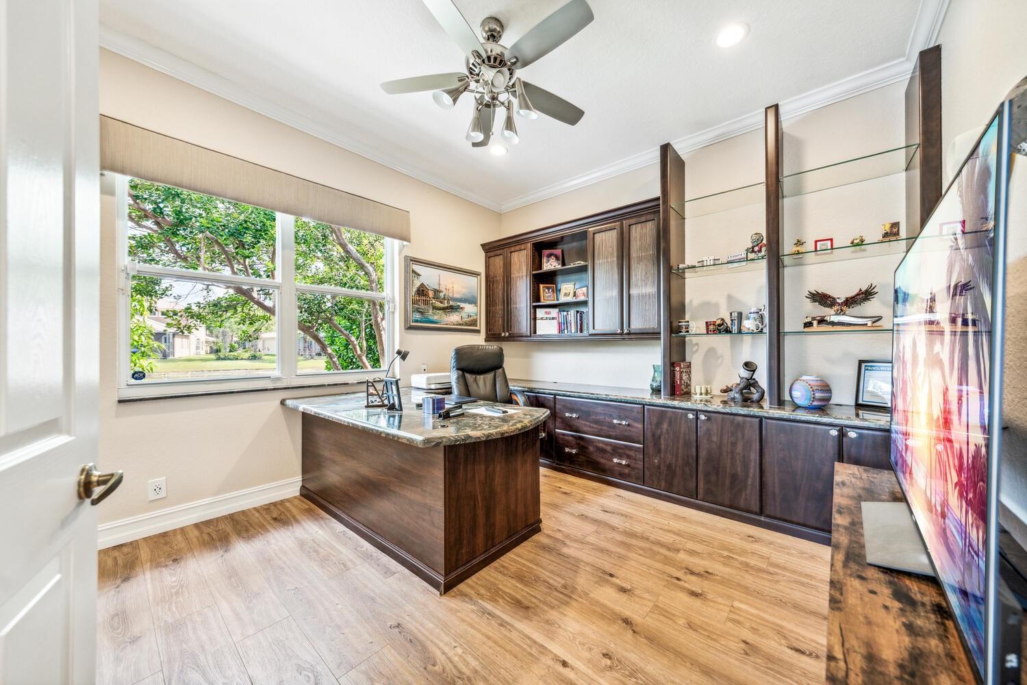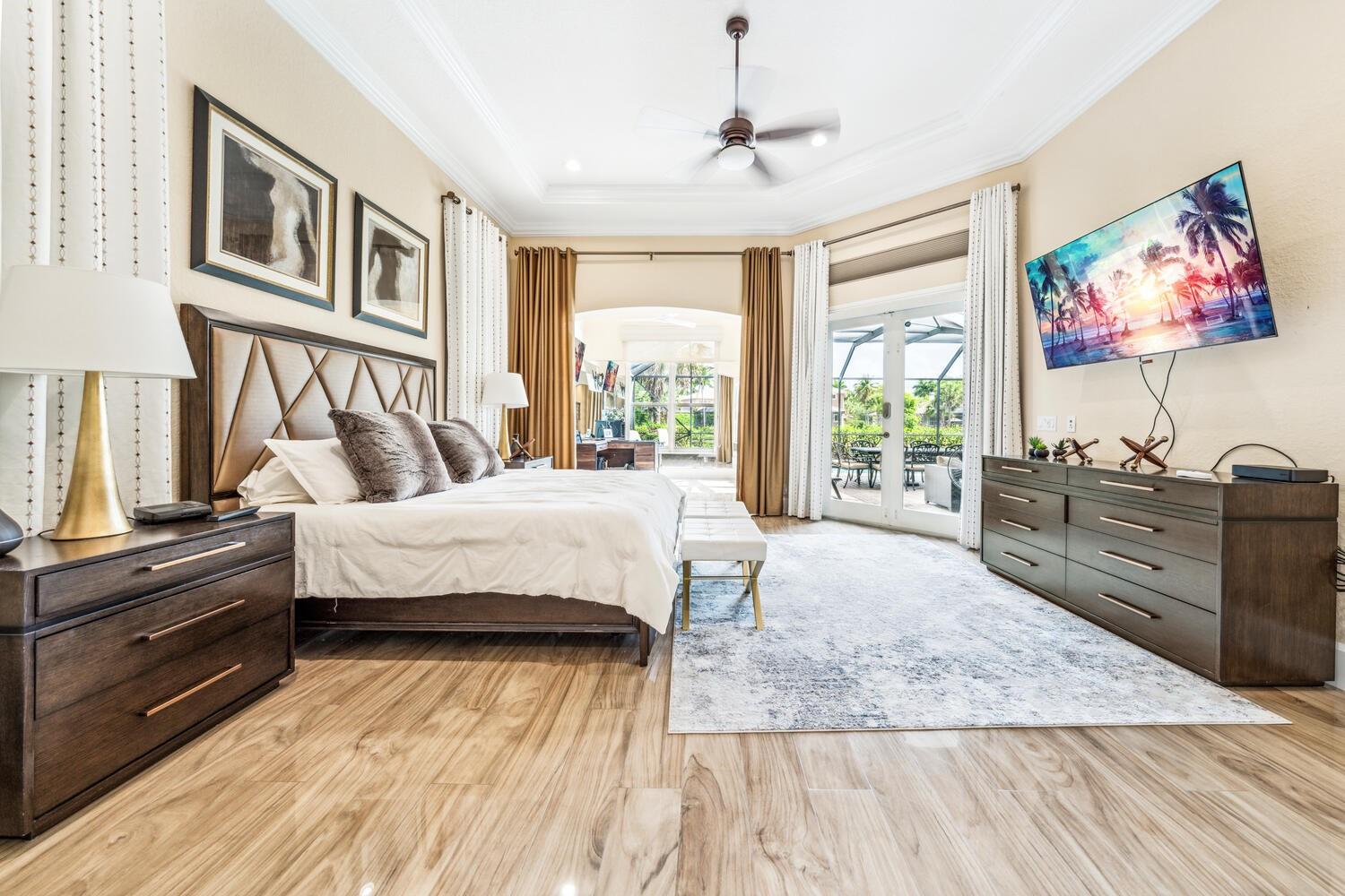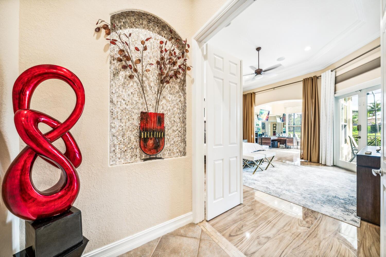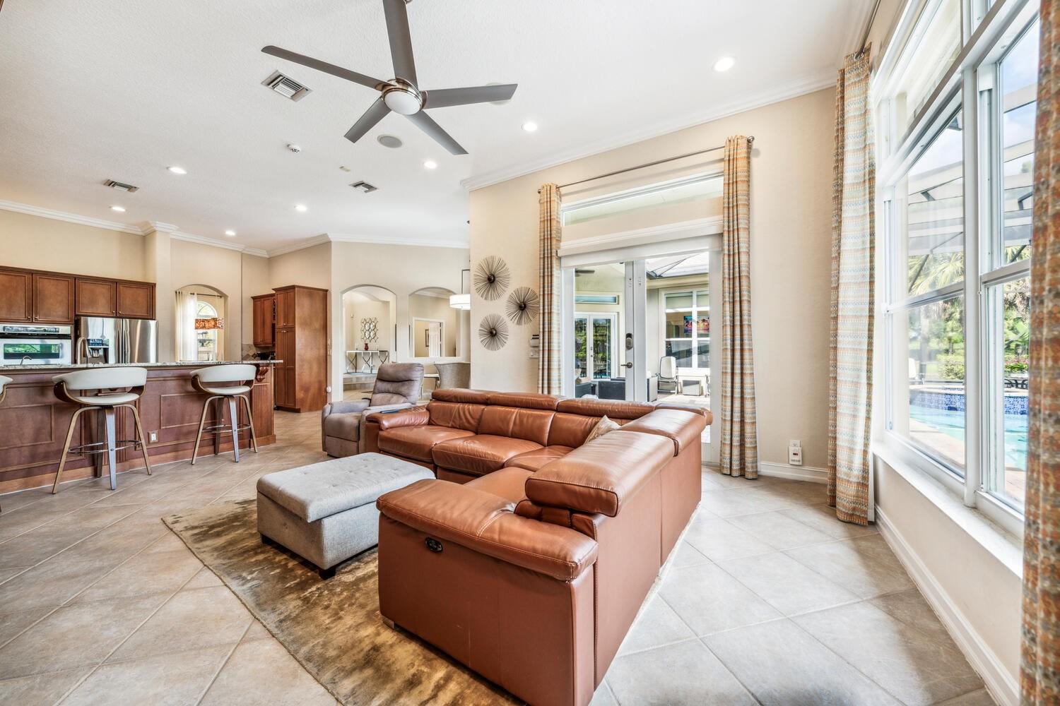 The circular driveway, exquisite elevation & beautiful landscaping only begin to define the outstanding features of this stunning home! Desirable features incl: triple split plan; impact windows & doors; volume ceilings w/crown molding; amazing chef's kitchen w/custom cabinets, pantry closet, natural gas cooktop (also gas hot H2O heater & outdoor grill), granite counters & breakfast bar, built-in s-steel appliances, & breakfast area overlooking water; five bedrooms+office+exercise room/nursery off beautiful MBR; MBA w/whirlpool tub, separate vanities & private bidet & commode; all California Closets; Central Vac (missing hose); GORGEOUS appointments--window treatments & light fixtures; beautiful, saltwater, heated, screen-enclosed pool w/Fastlane swim system; & breathtaking lake views!