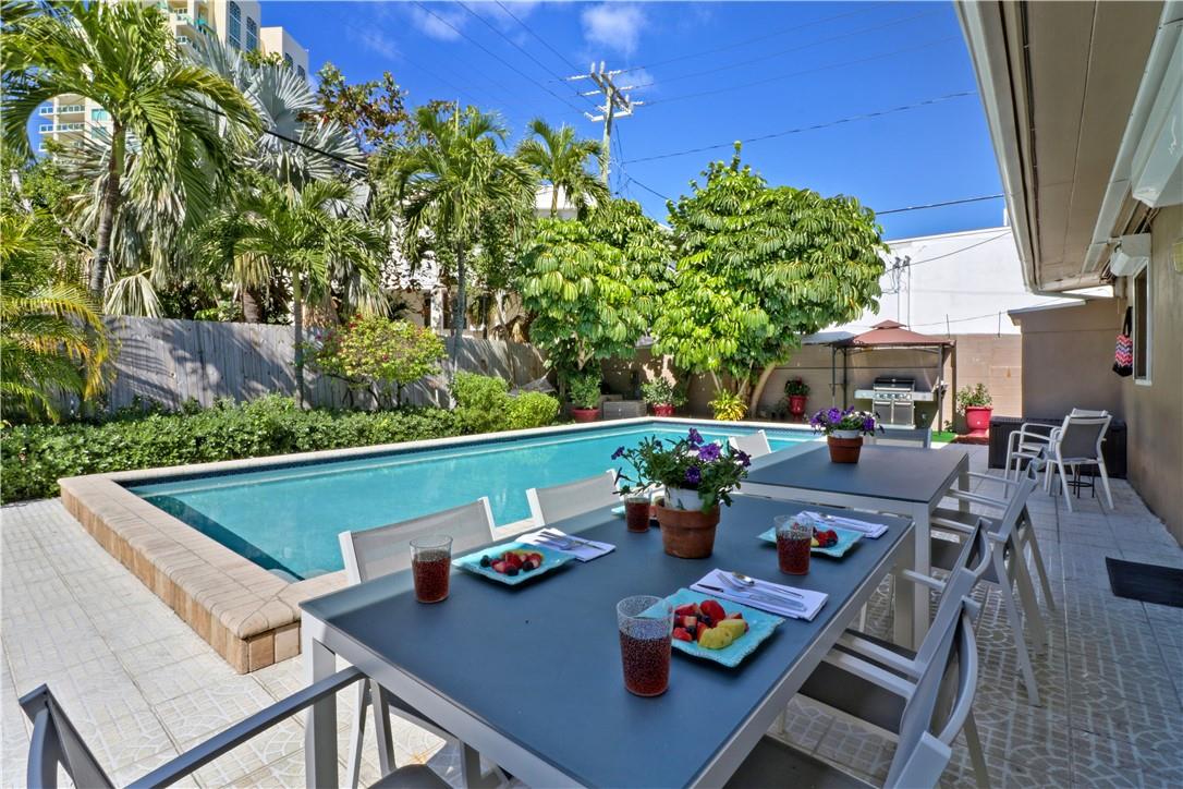 Accepting Back-Up Offers--True Ft Lauderdale Beach Home remodeled (including roof-2/2024). A 2 min walk to beach. Open area floor plan w/common areas & 3 of 4 bedrms w/pool view. Impact windows, Modern Shades, Lg Gazebo, Grill Area, whole house H2O filter & Heated, Saltwater Pool. Buyer's Inspect performed b4 bringing 2 mkt & all items fixed. Pristine Original FL Beach House (4 bed/3 ba) w/Substantial updates & remodel. Marinas 2 blks away; Walk to 35+ restaurants. Currently is a profitable Licensed ST (vaca) Rental. Pricing is not based on GRI or CAP Rates--priced as a single family home. Great 4 peeps looking 2 downsize, a Seasonal Home, Biz Travelers, or an Investment Prop. 10 Min from Ft. Lauderdale Airport; 10 min to Downtown Ft Ldl; 35-40 Mins to Miami or Boca. Confirm Measurements